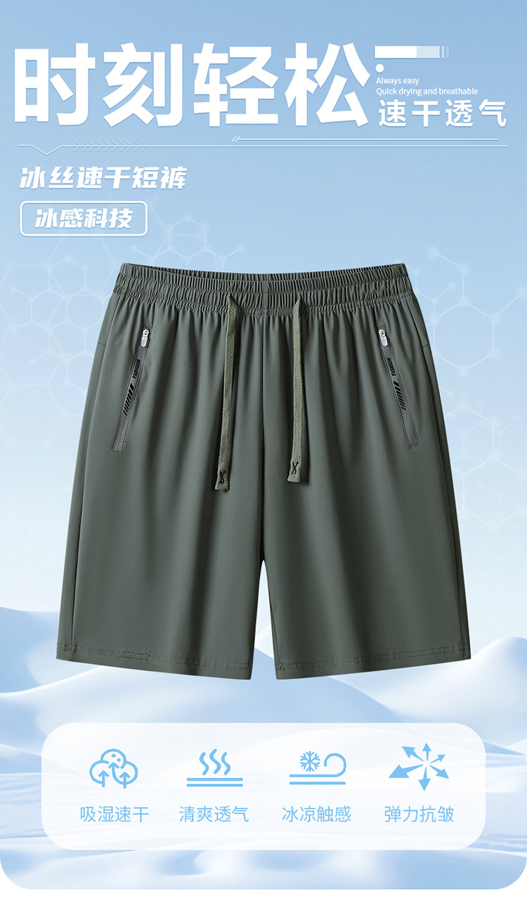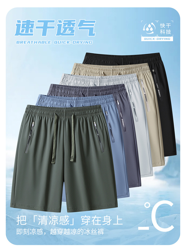 여름 아이스 실크 반바지 남자의 빠른 건조 스포츠 바지 얇은 캐주얼 외부 착용 느슨한 바지 스포츠 플러스 사이즈 바지