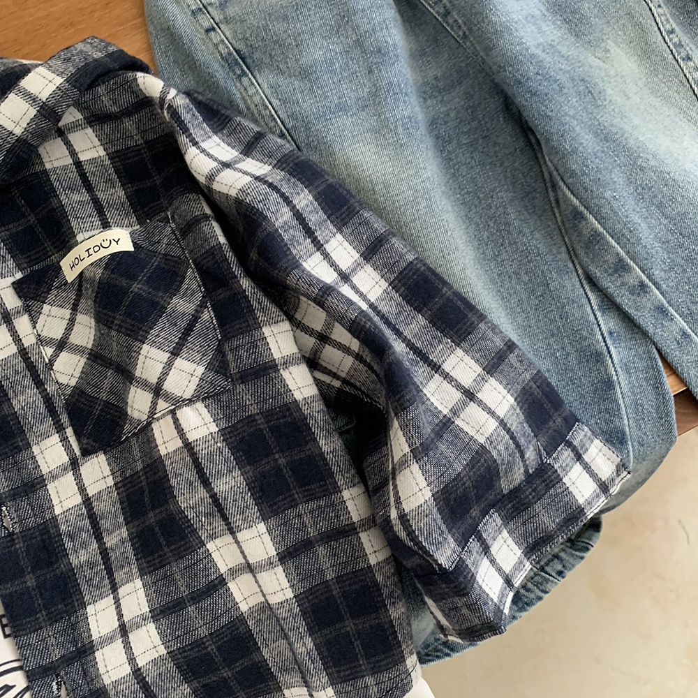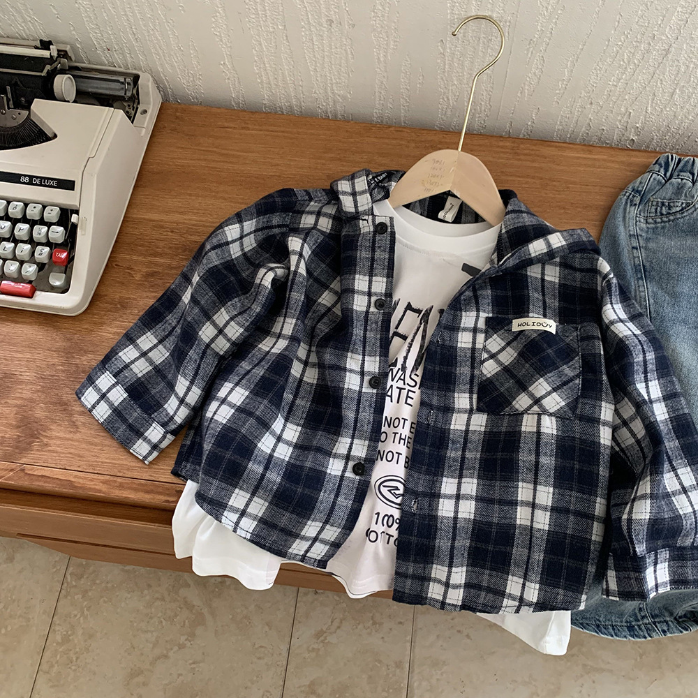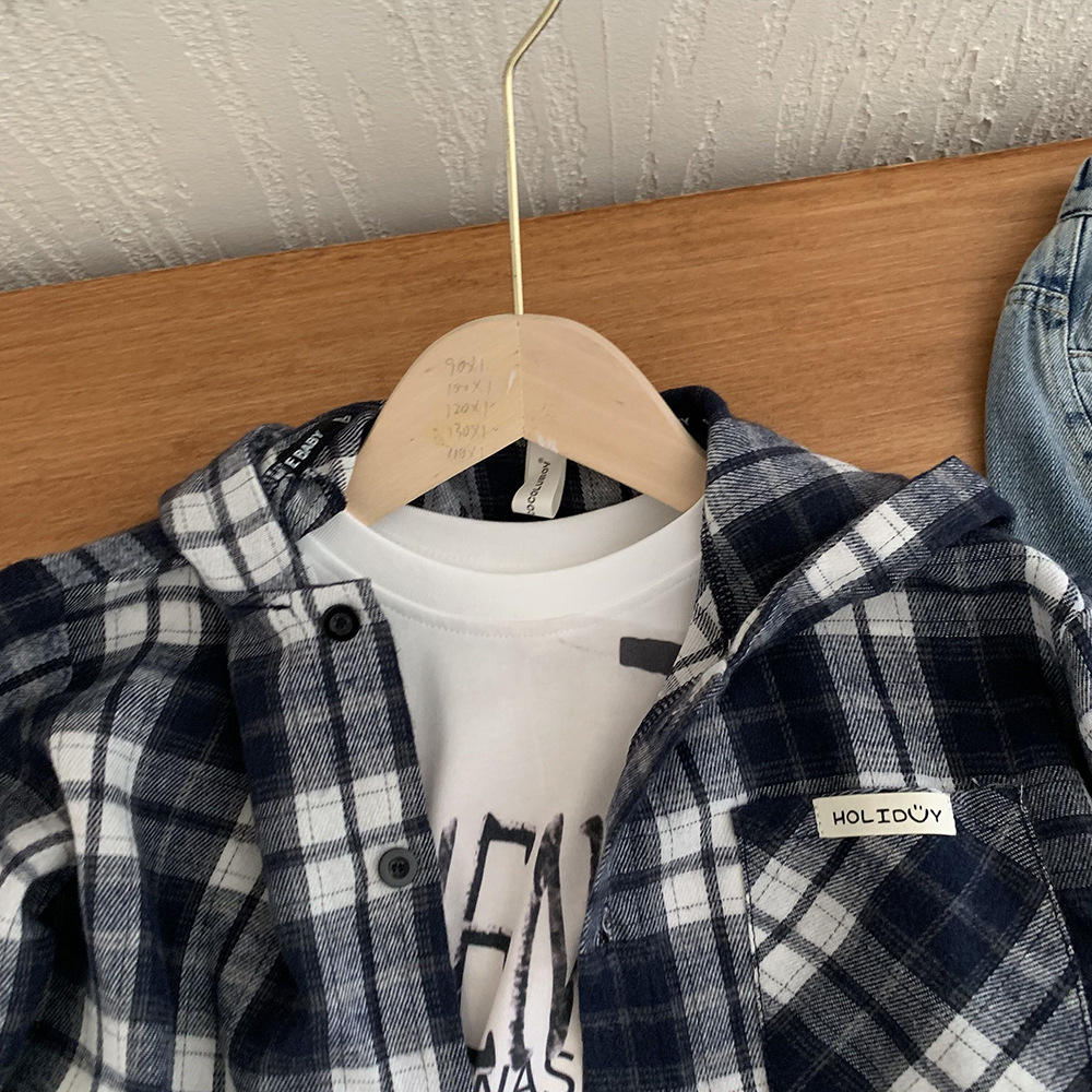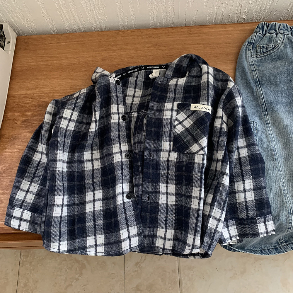 소년 봄, 가을 의류 아동 한국 스타일 유행 격자 무늬 셔츠 디자인 캐주얼 어린이 느슨한 셔츠 후드 자켓스토어 가기