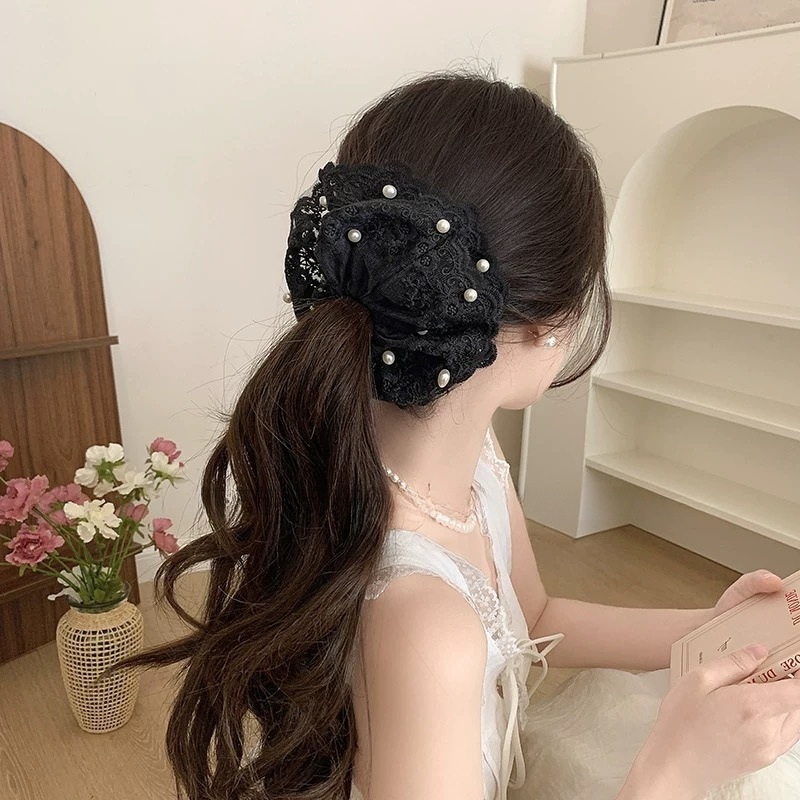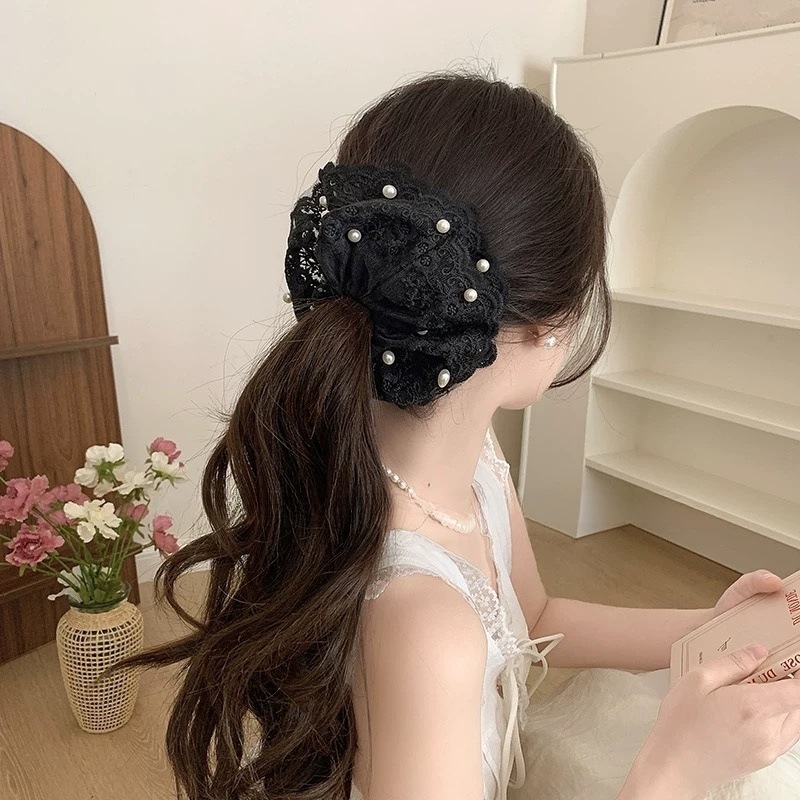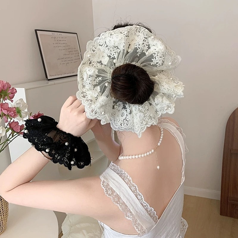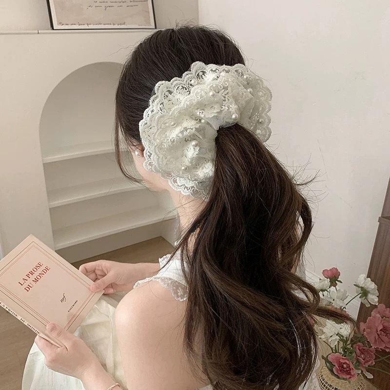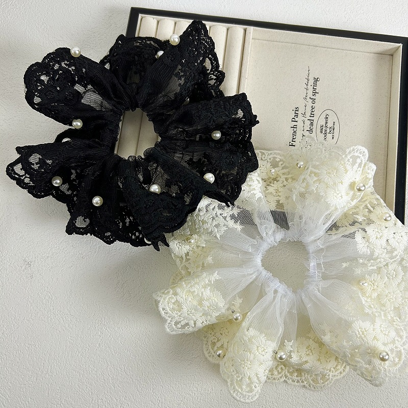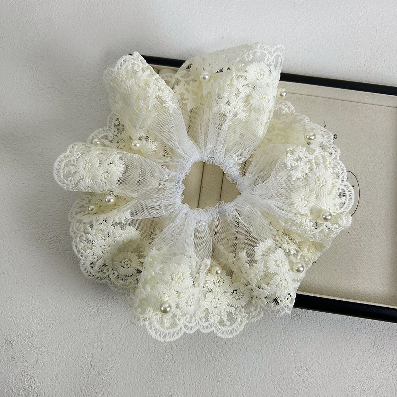 진주 레이스 대형 장내 헤어 링 화이트 슈퍼 페어리 자수 젠틀 레이스 낮은 페달 테일 헤어 로프 헤어 로프 헤어 헤어 헤어 헤어 헤어 플라워 여성