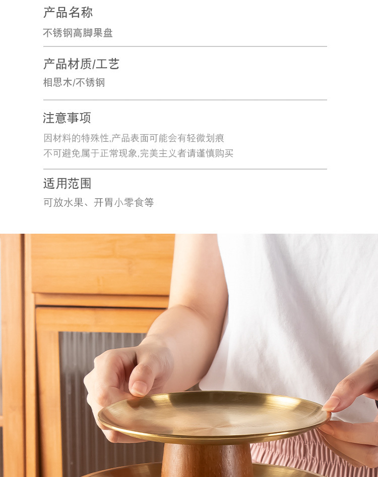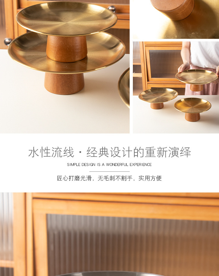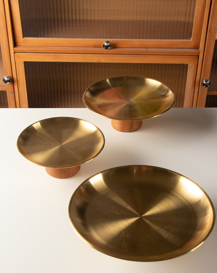 • 골드 스테인리스 접시 + 나무 베이스(중형)