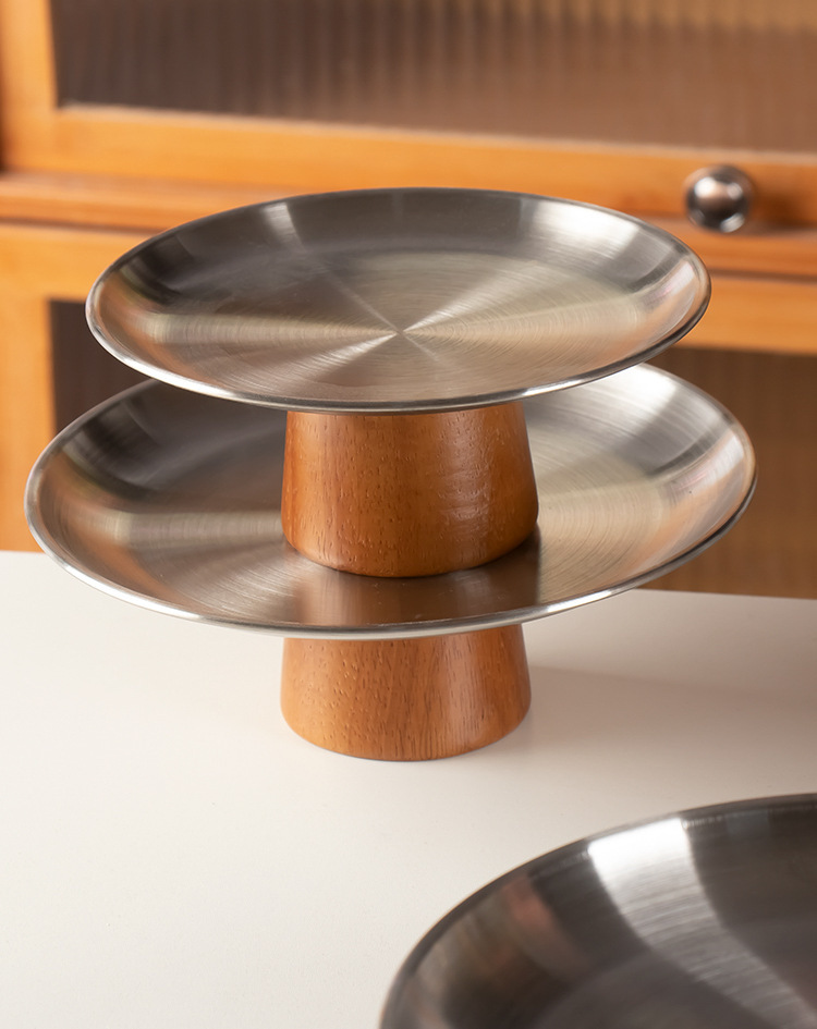 • 골드 스테인리스 접시 + 나무 베이스(대형)