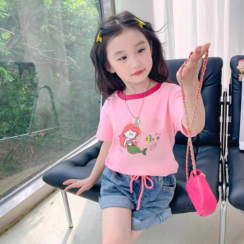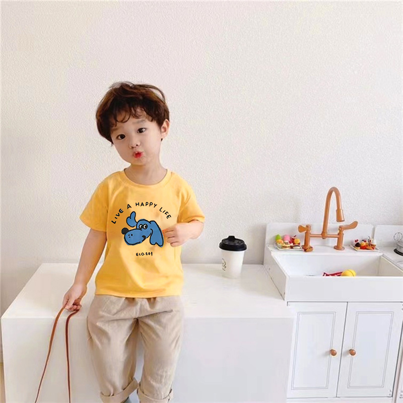 퓨어 코튼 반팔 티셔츠 아동복 중소형 소년 · 소녀 여름 새 스톨 한국식 만화 반소매 패션 탑
