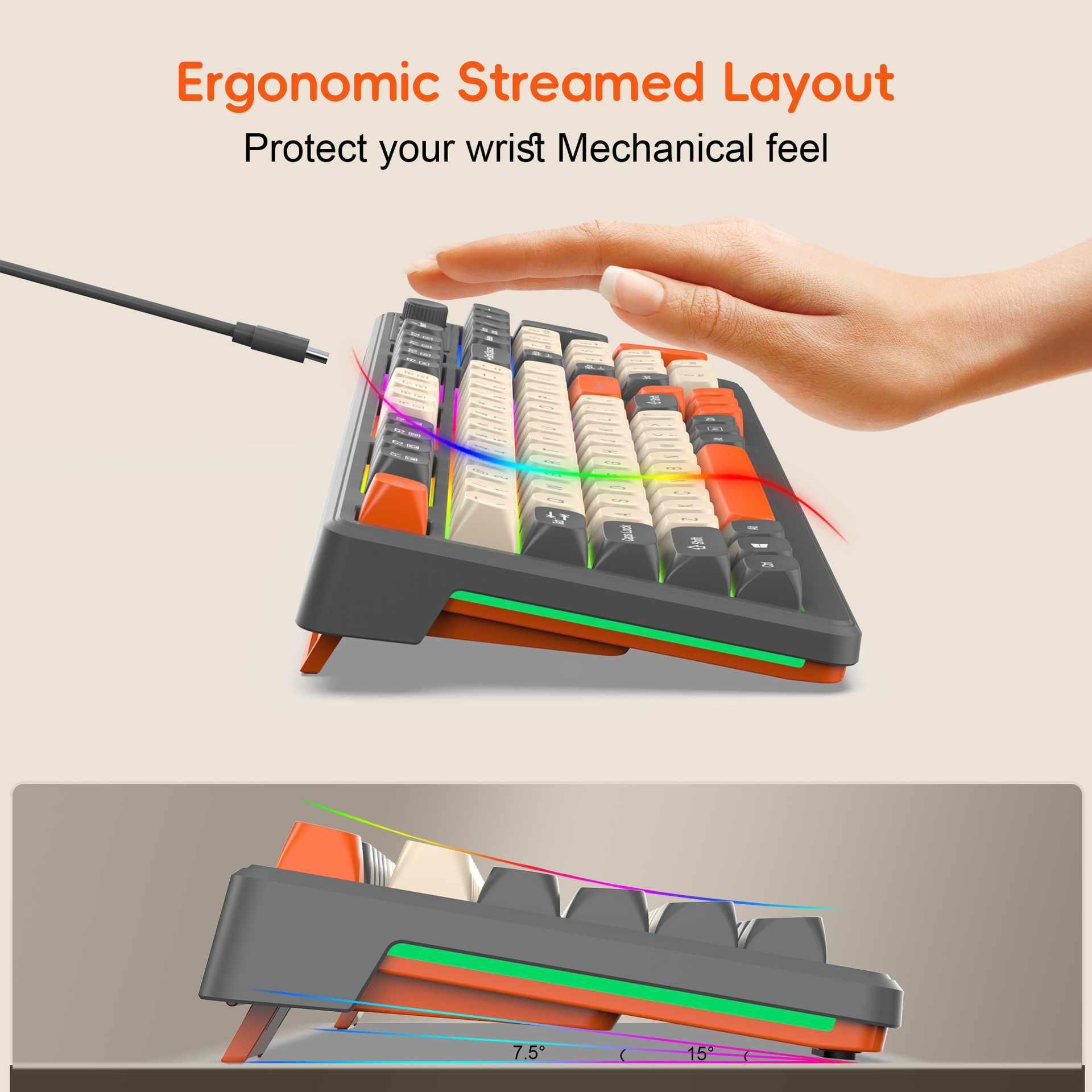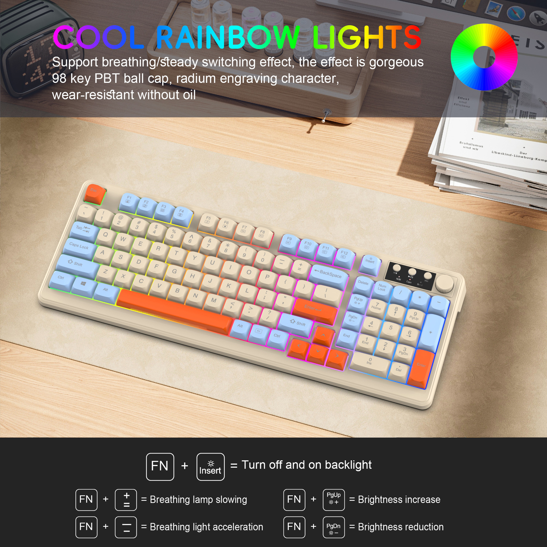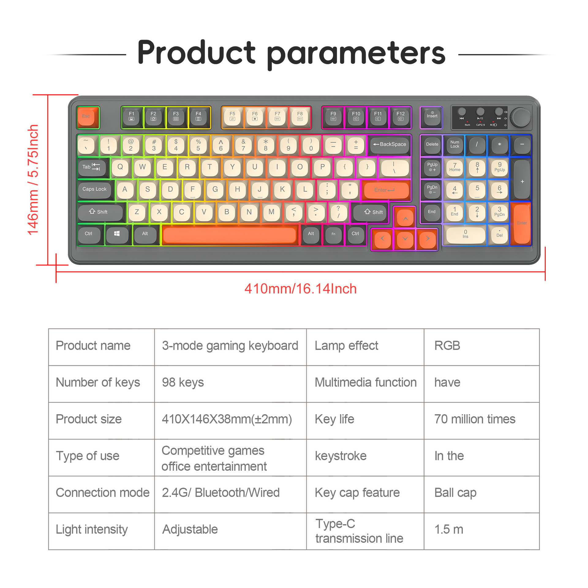 RGB 빛 높은 색상 값 3 모드 유선 무선 블루투스 키보드 게임 사무실 필름 음소거 키보드 기계적 느낌스토어 가기