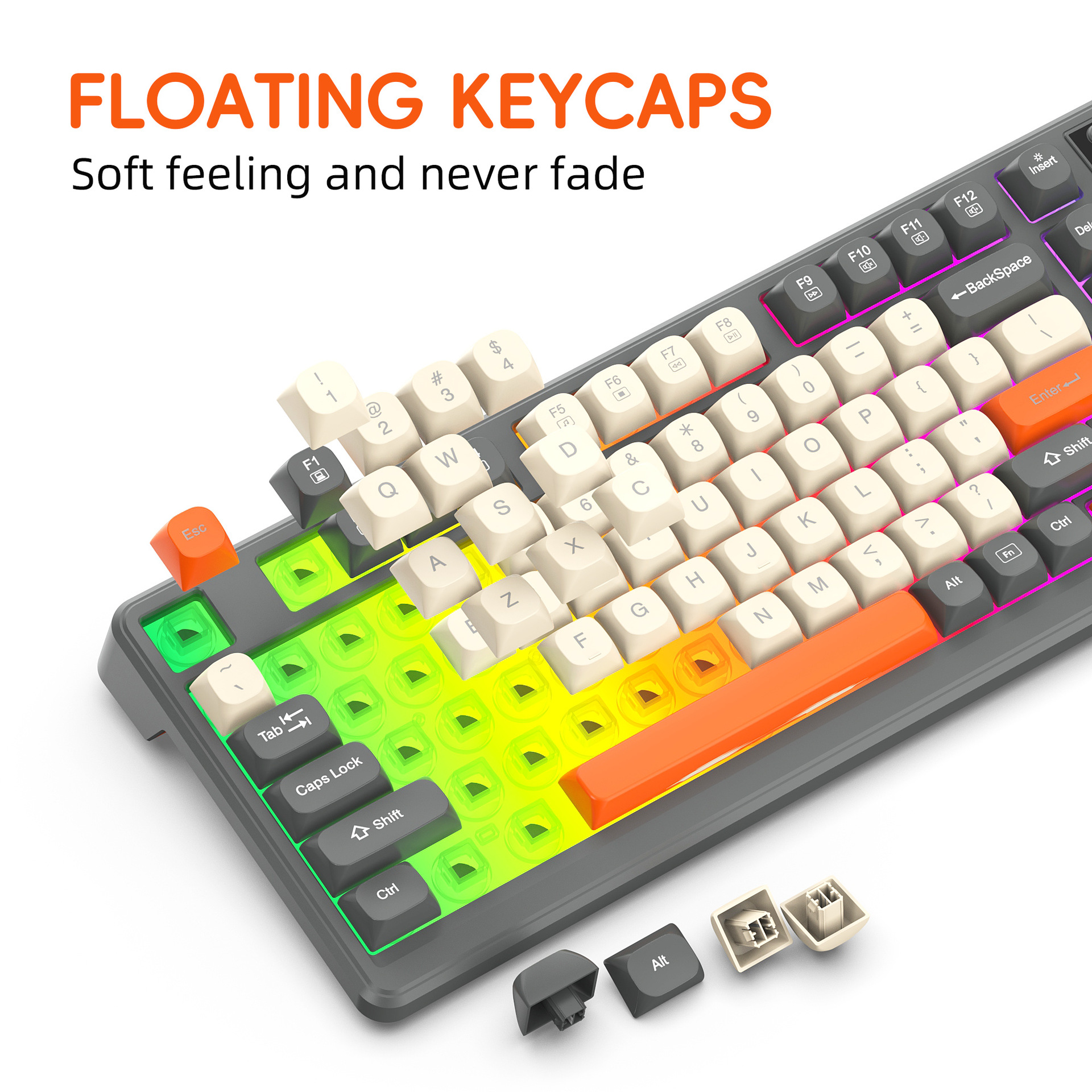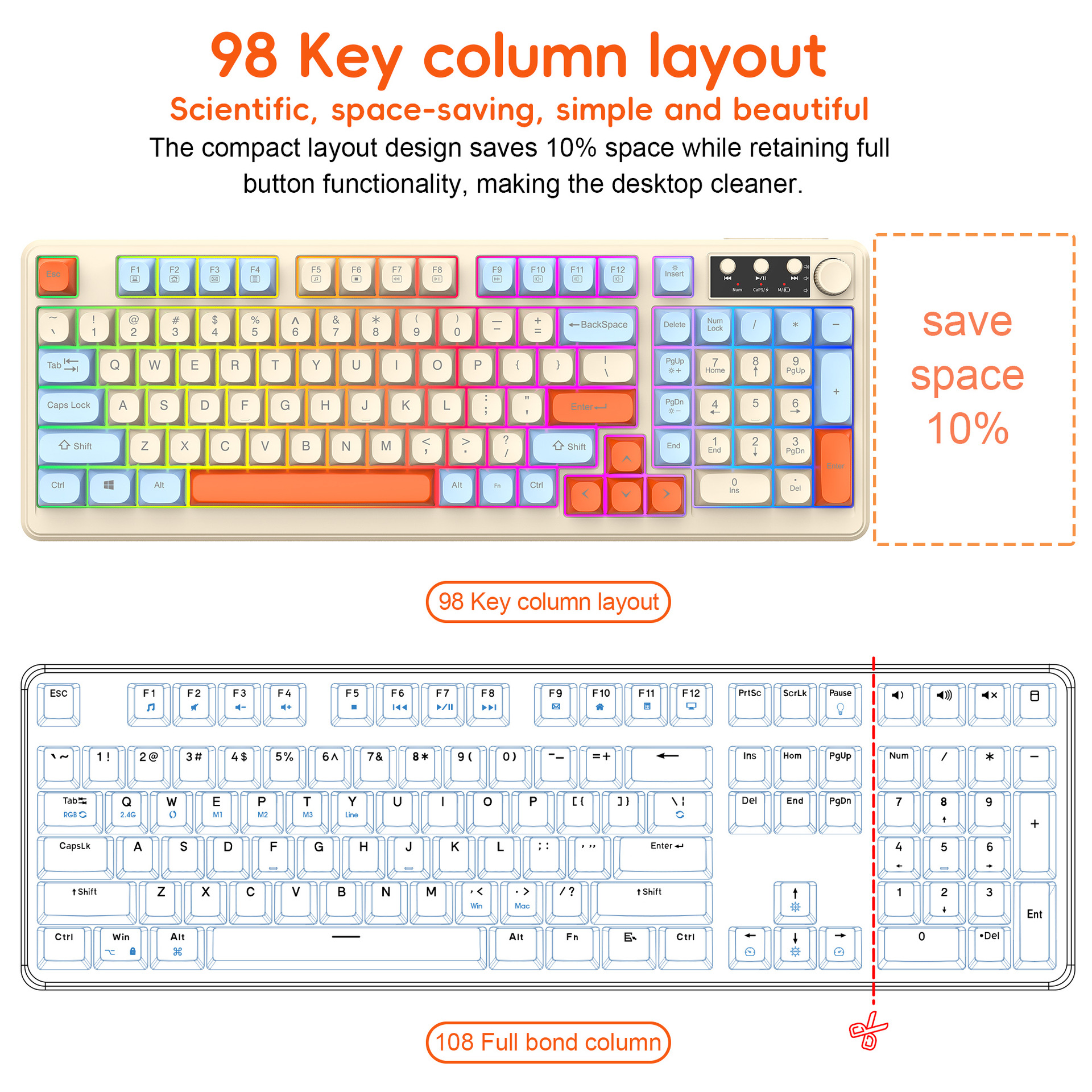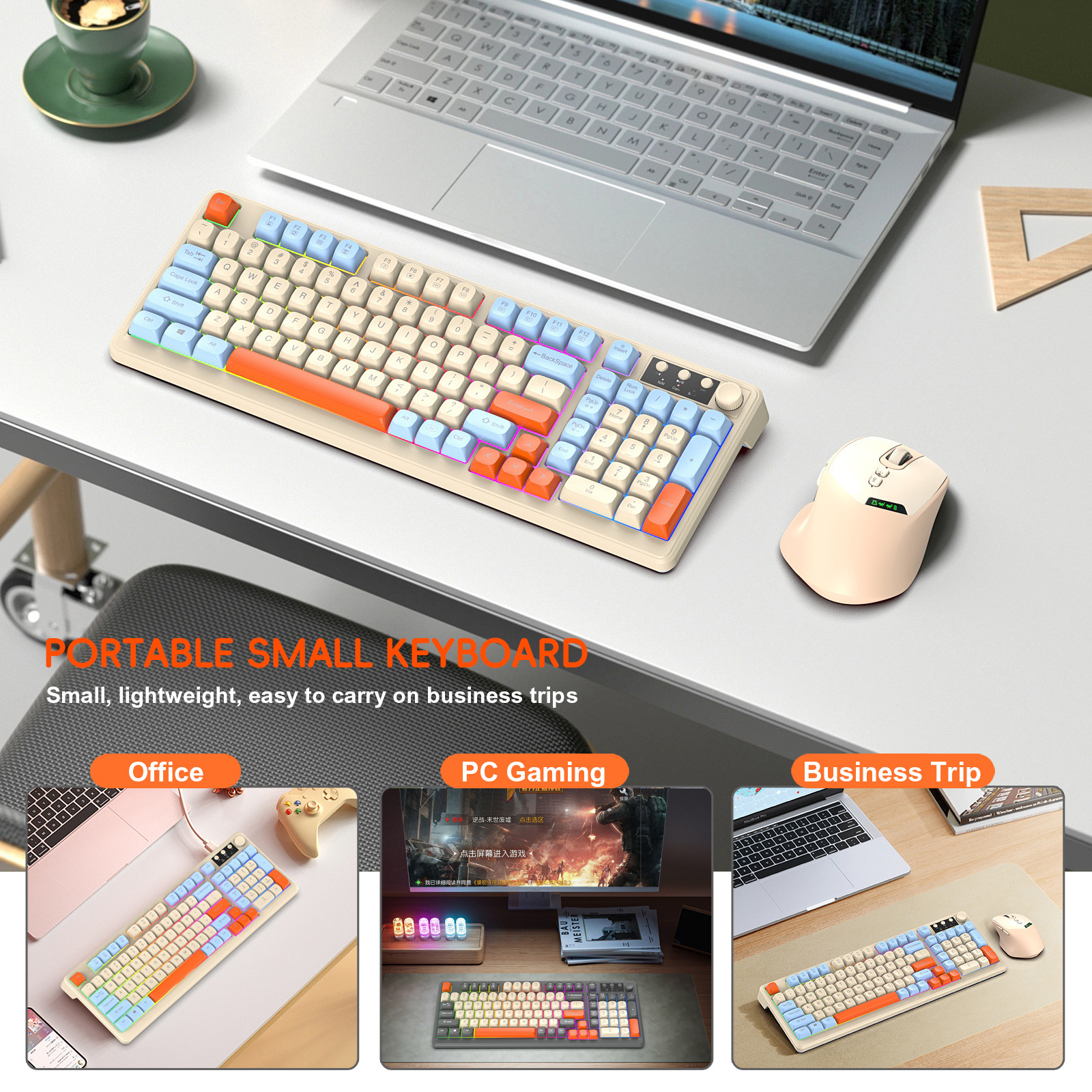 RGB 빛 높은 색상 값 3 모드 유선 무선 블루투스 키보드 게임 사무실 필름 음소거 키보드 기계적 느낌
