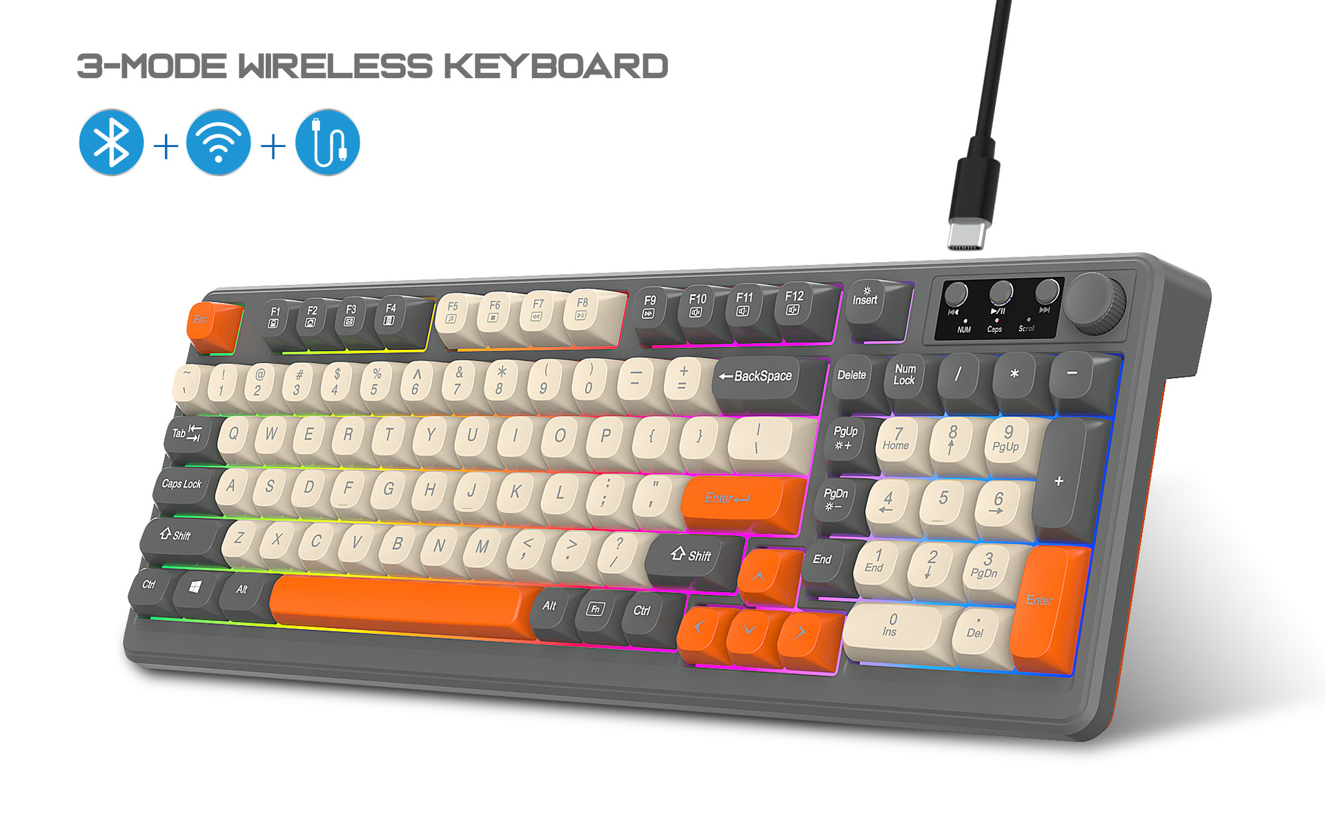 • 회색(유선 + 2.4G 무선 + Bluetooth) 3모드 키보드
