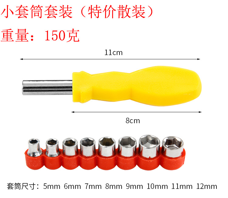 • 손잡이 + 소형 소켓 5~12 + 드라이버 비트 9개
