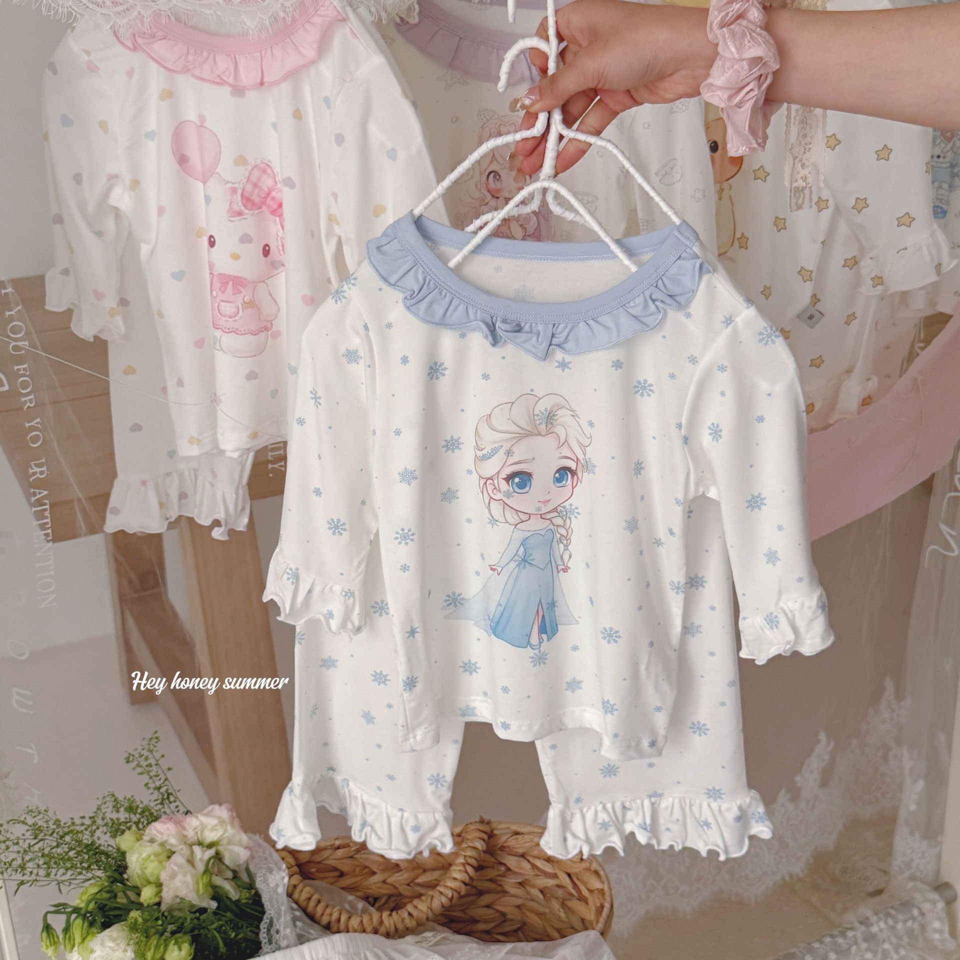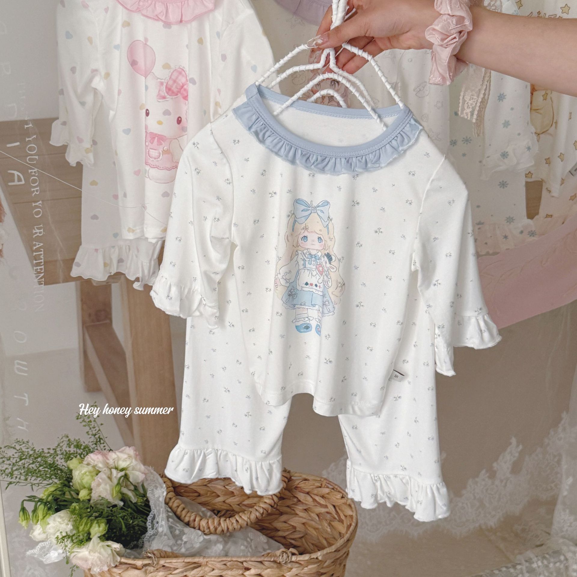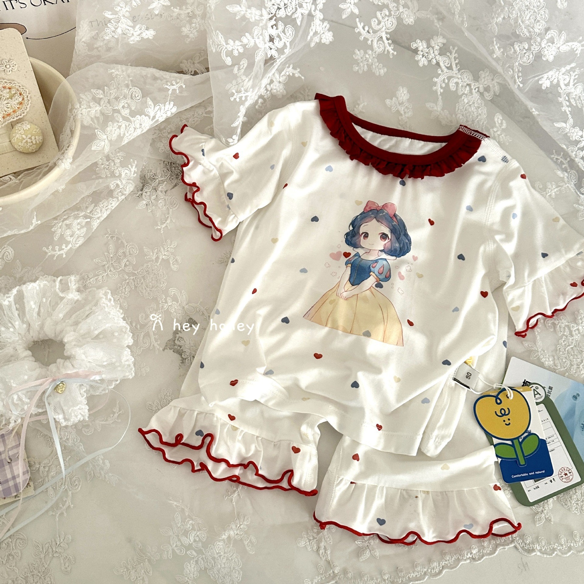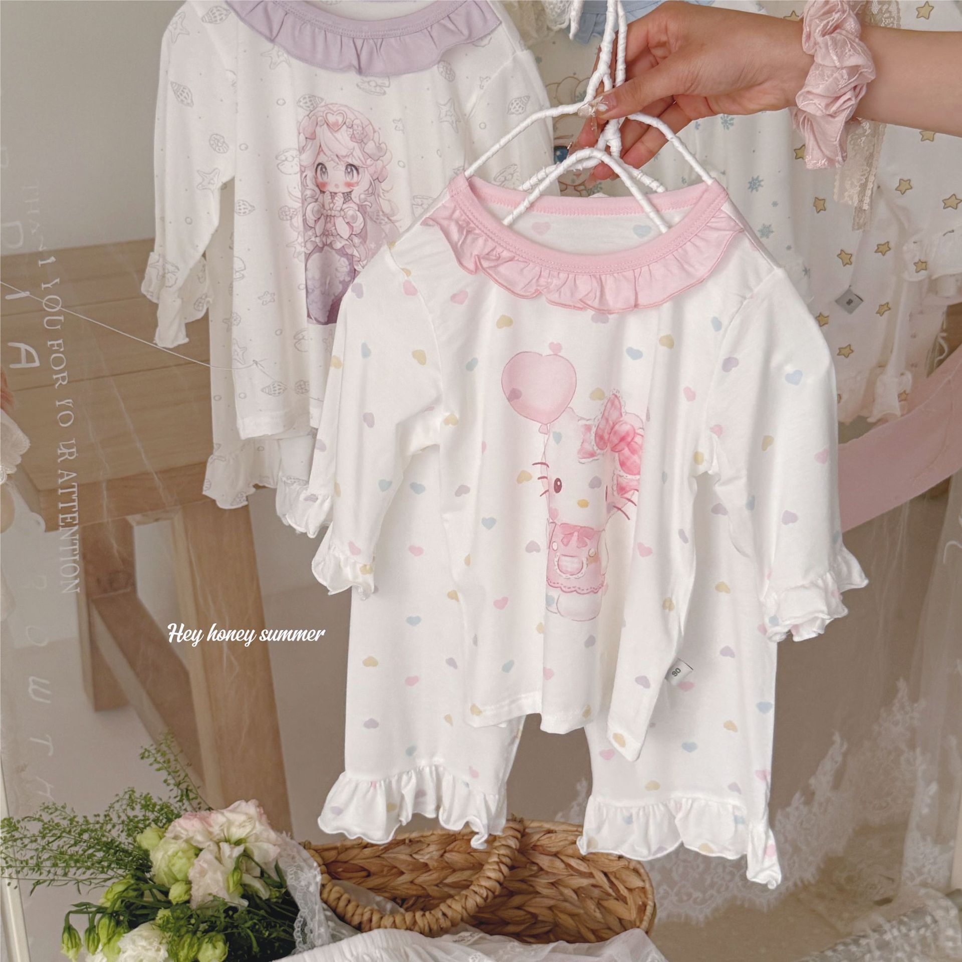 다이아오자오룬헤이허니 여름용 26 아동 여아 반팔 홈웨어 세트 잠옷 잠옷바지 얇고 매우 부드러운
