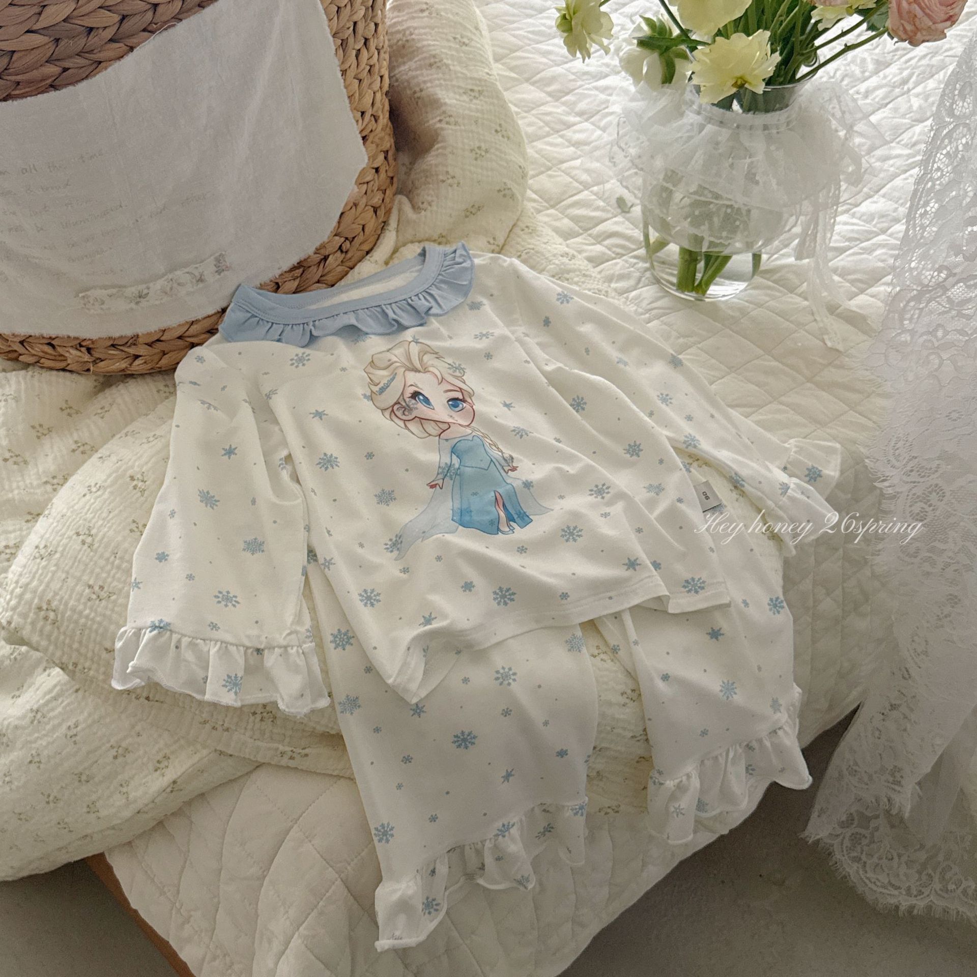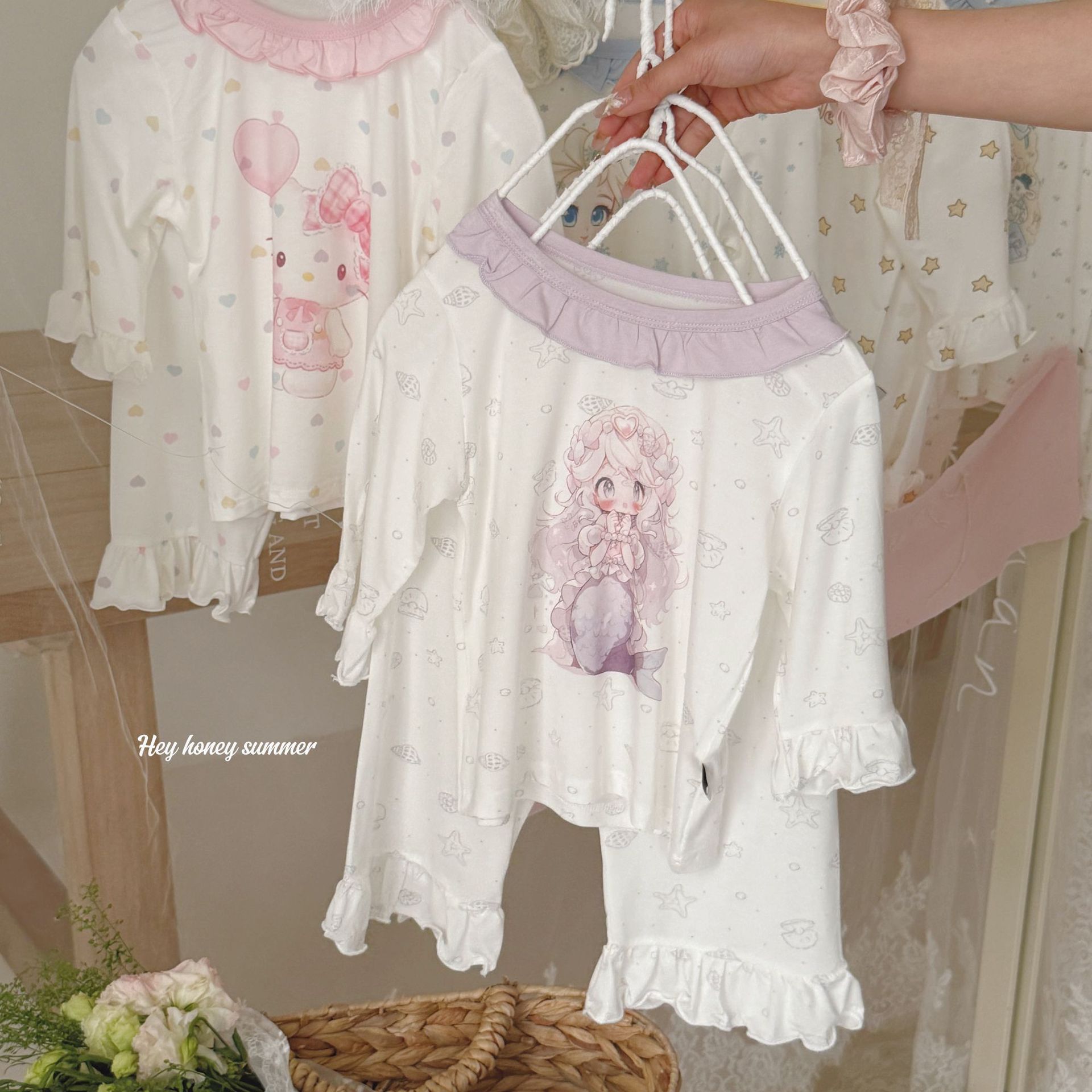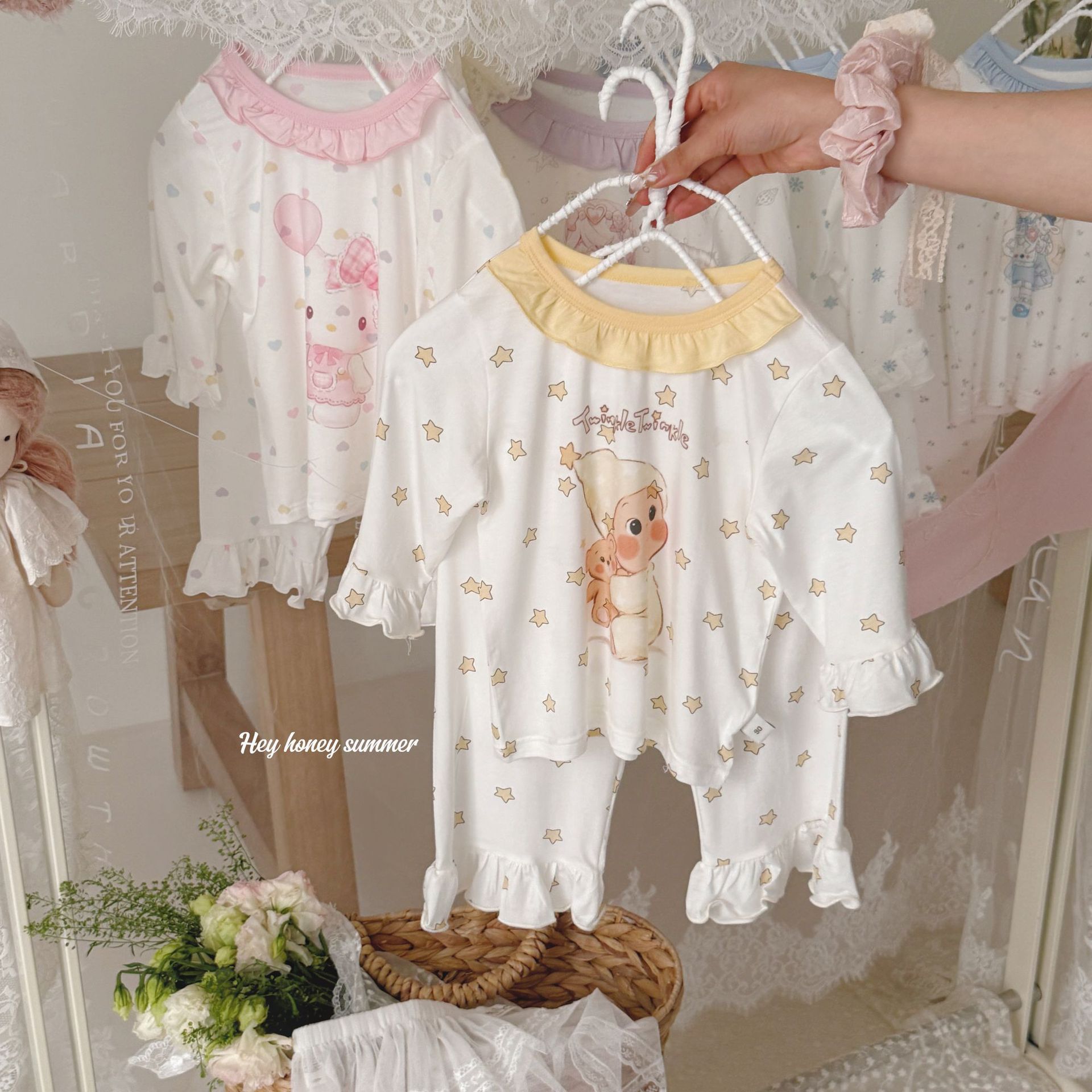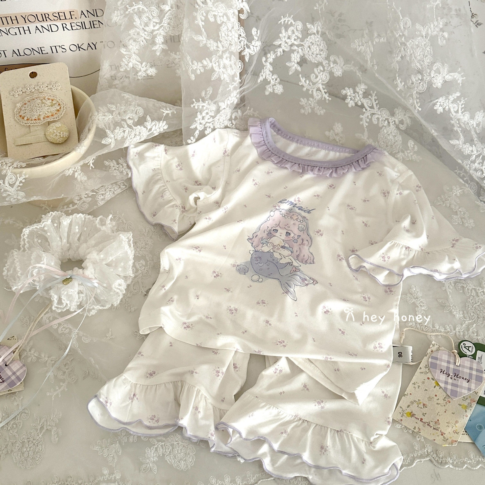 다이아오자오룬헤이허니 여름용 26 아동 여아 반팔 홈웨어 세트 잠옷 잠옷바지 얇고 매우 부드러운