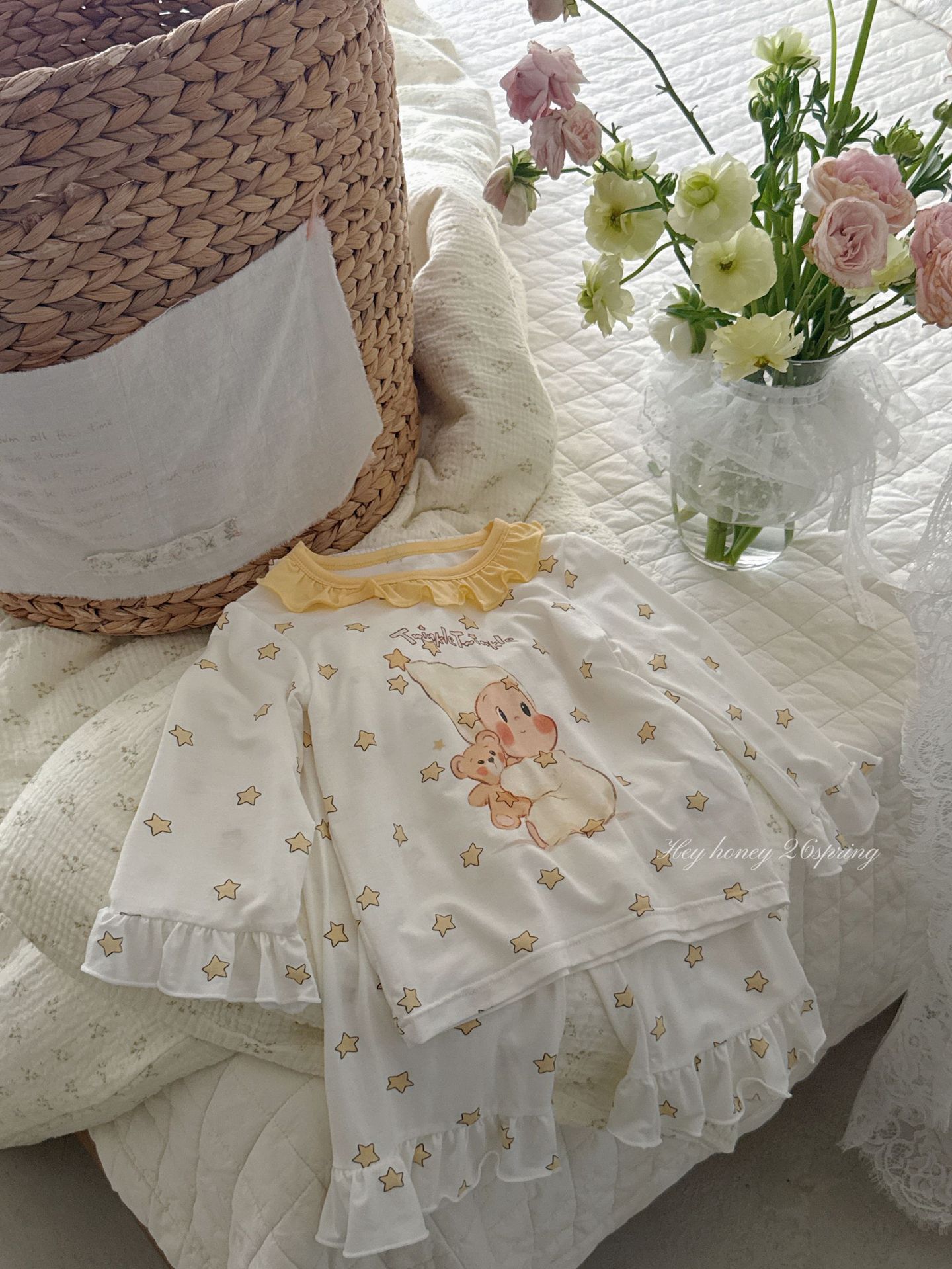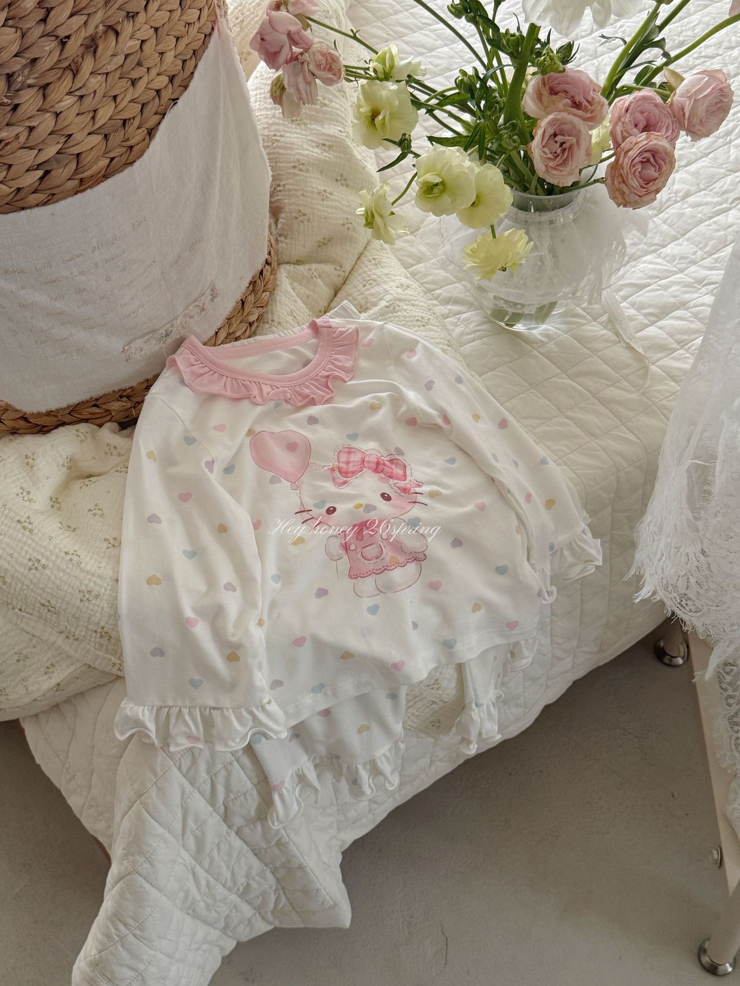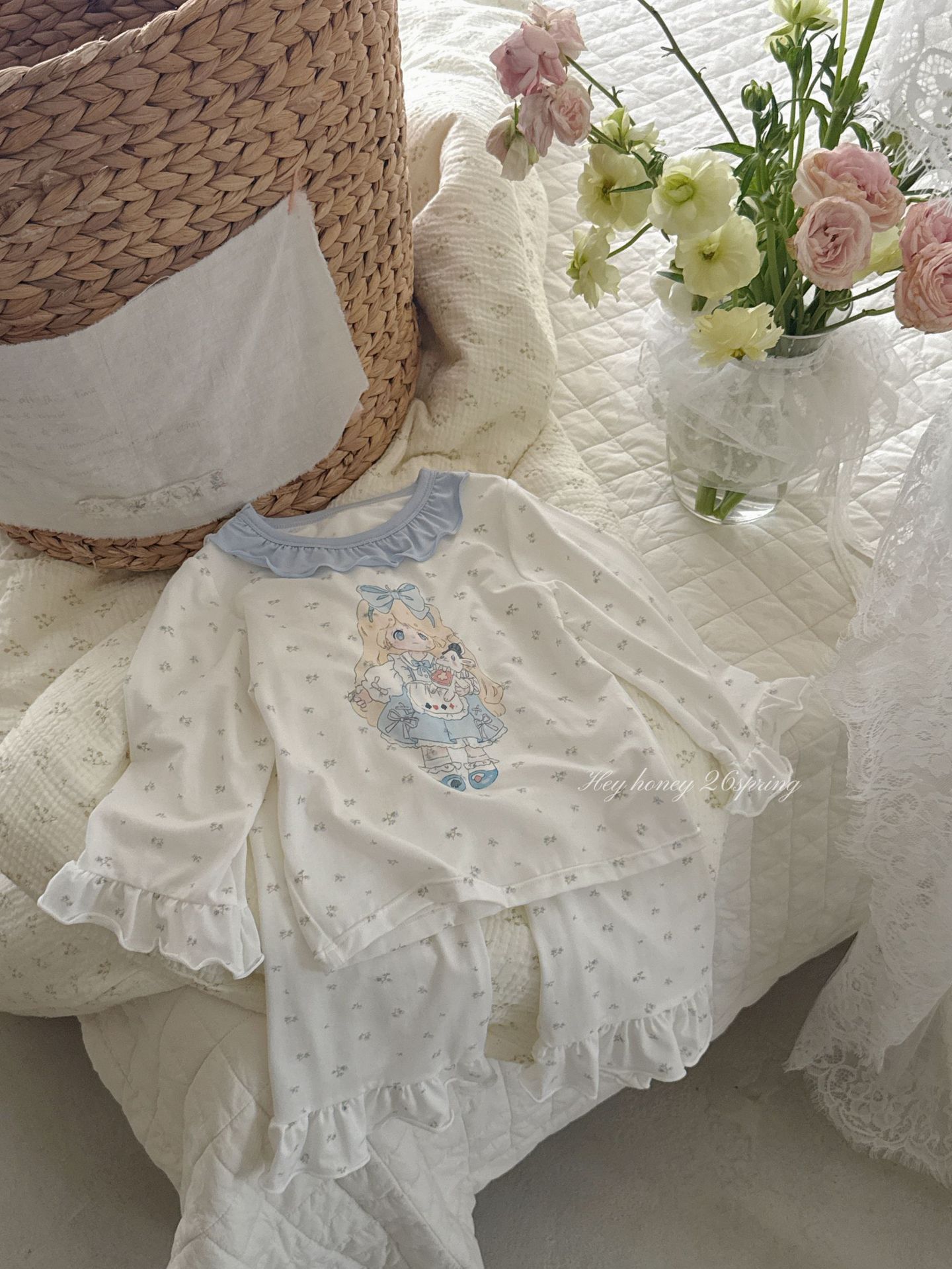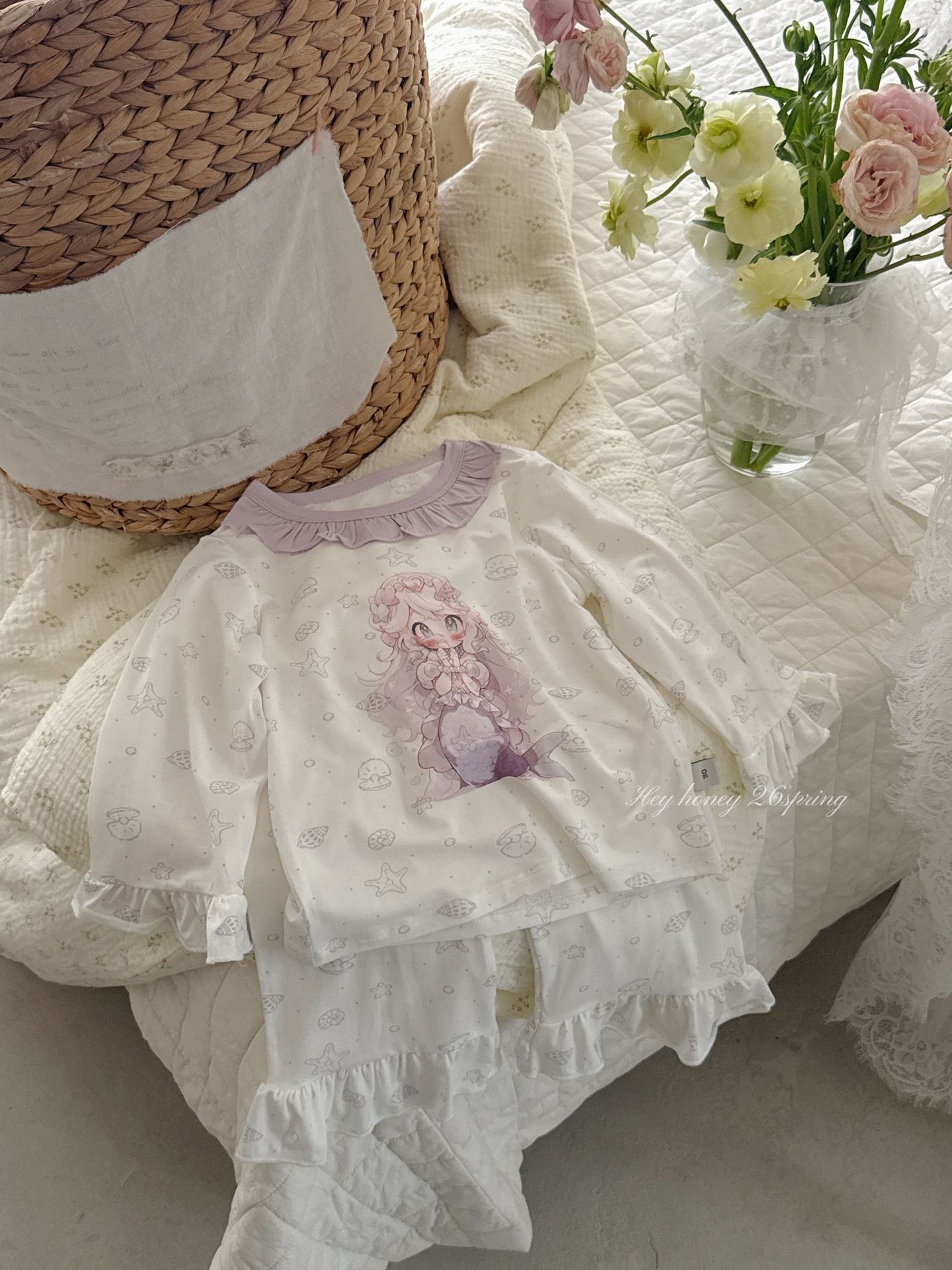 다이아오자오룬헤이허니 여름용 26 아동 여아 반팔 홈웨어 세트 잠옷 잠옷바지 얇고 매우 부드러운