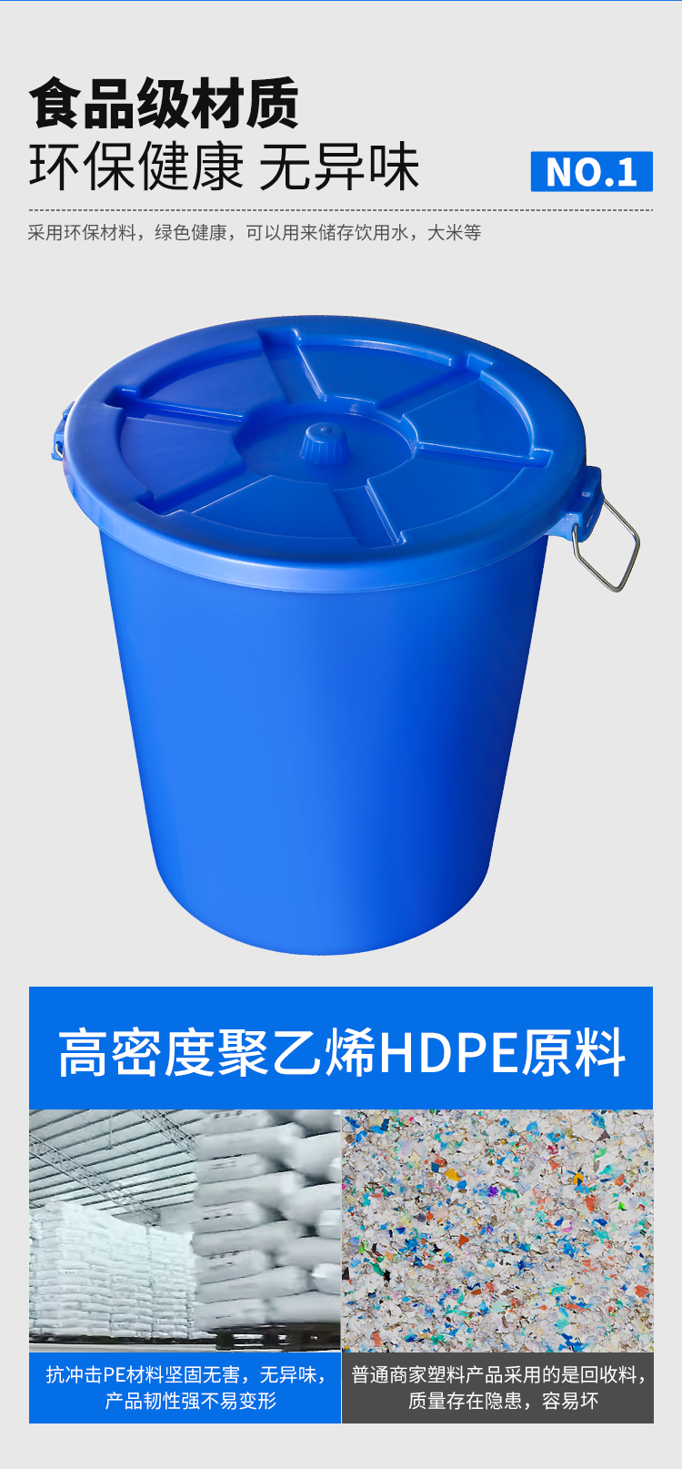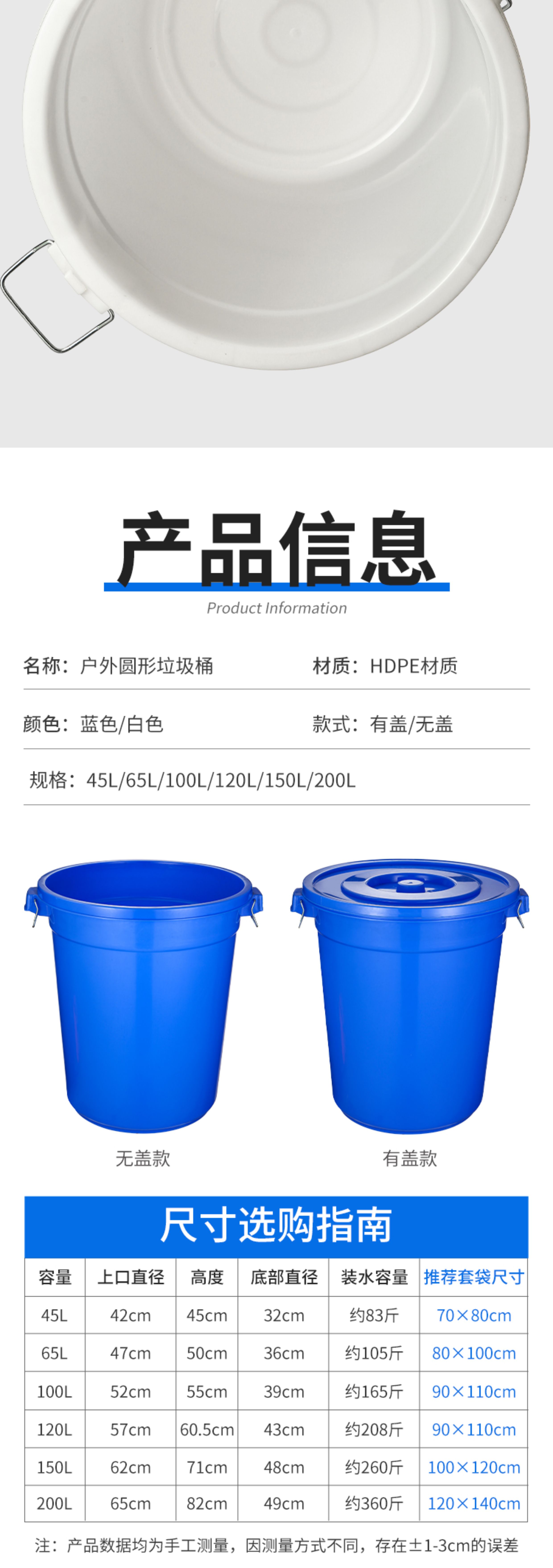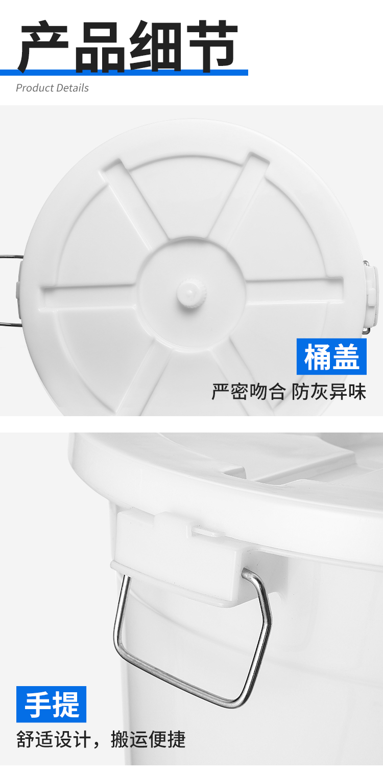 뚜껑이 있는 매우 두꺼운 원형 쓰레기통 대형 대용량 공장 야외 쓰레기통 상업용 케이터링 주방 플라스틱 쓰레기통