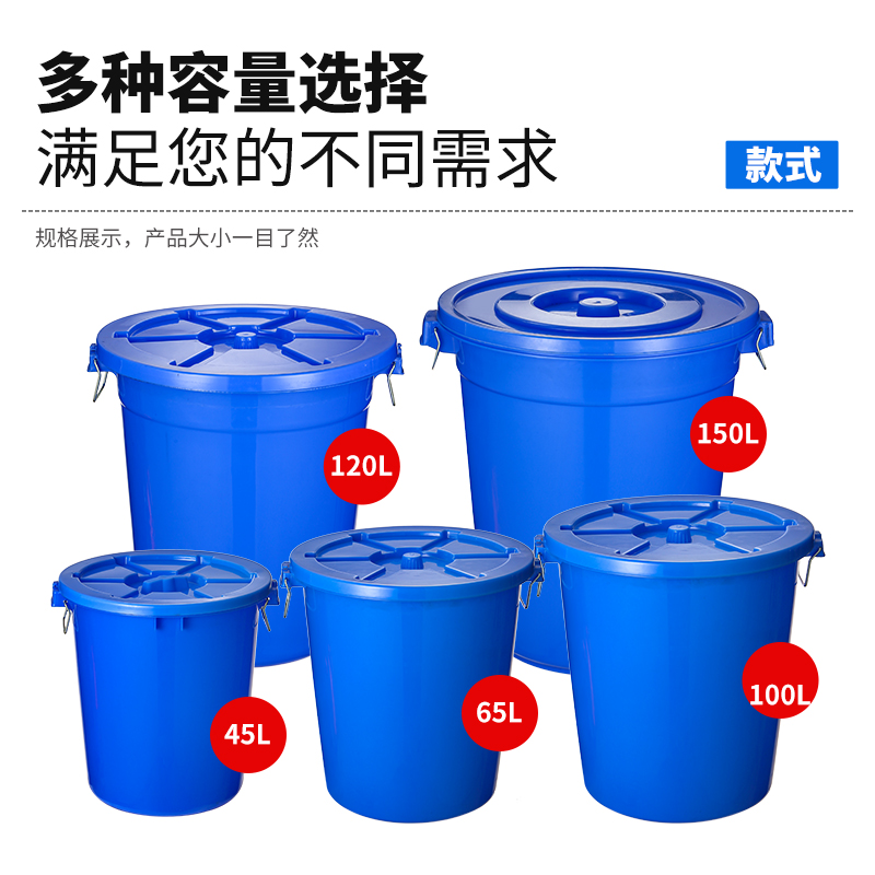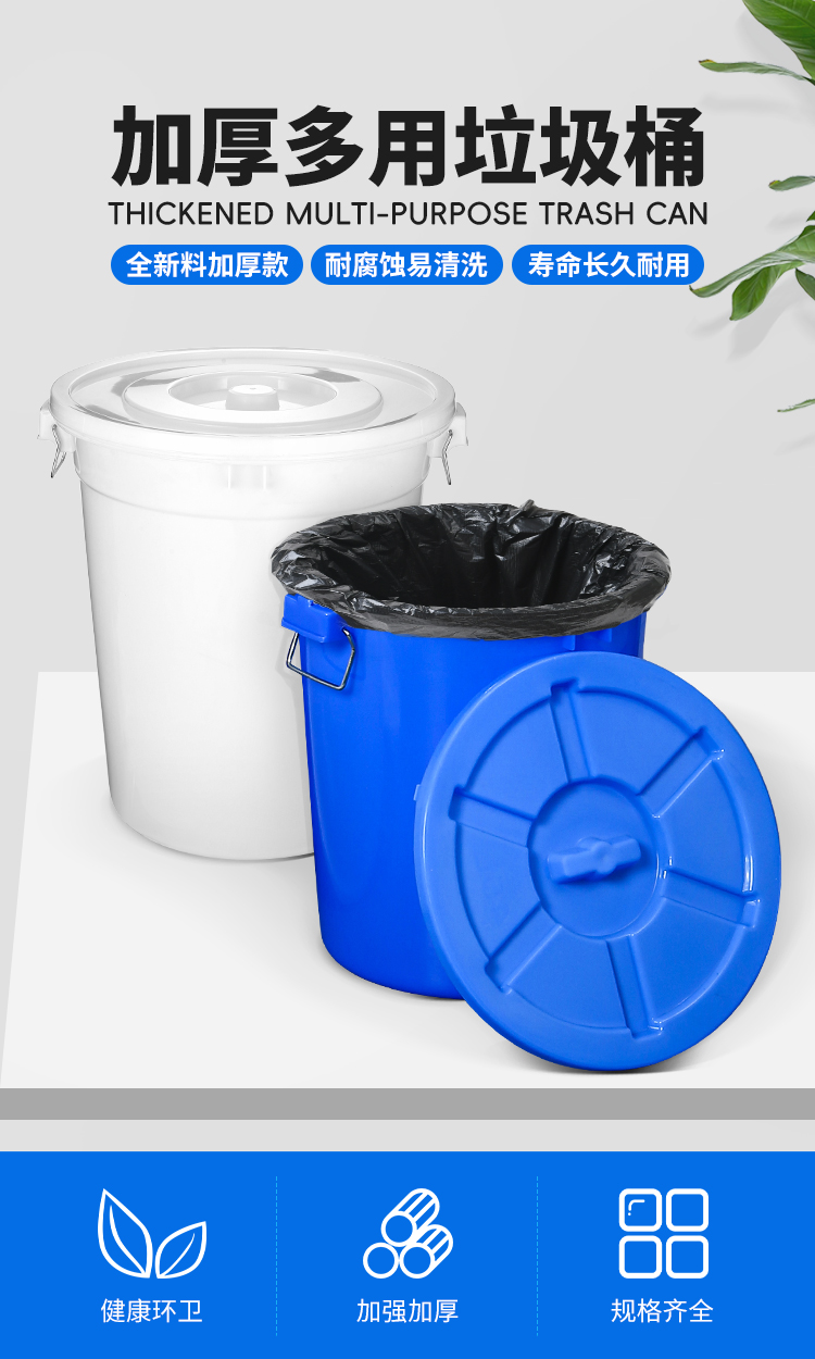 뚜껑이 있는 매우 두꺼운 원형 쓰레기통 대형 대용량 공장 야외 쓰레기통 상업용 케이터링 주방 플라스틱 쓰레기통스토어 가기