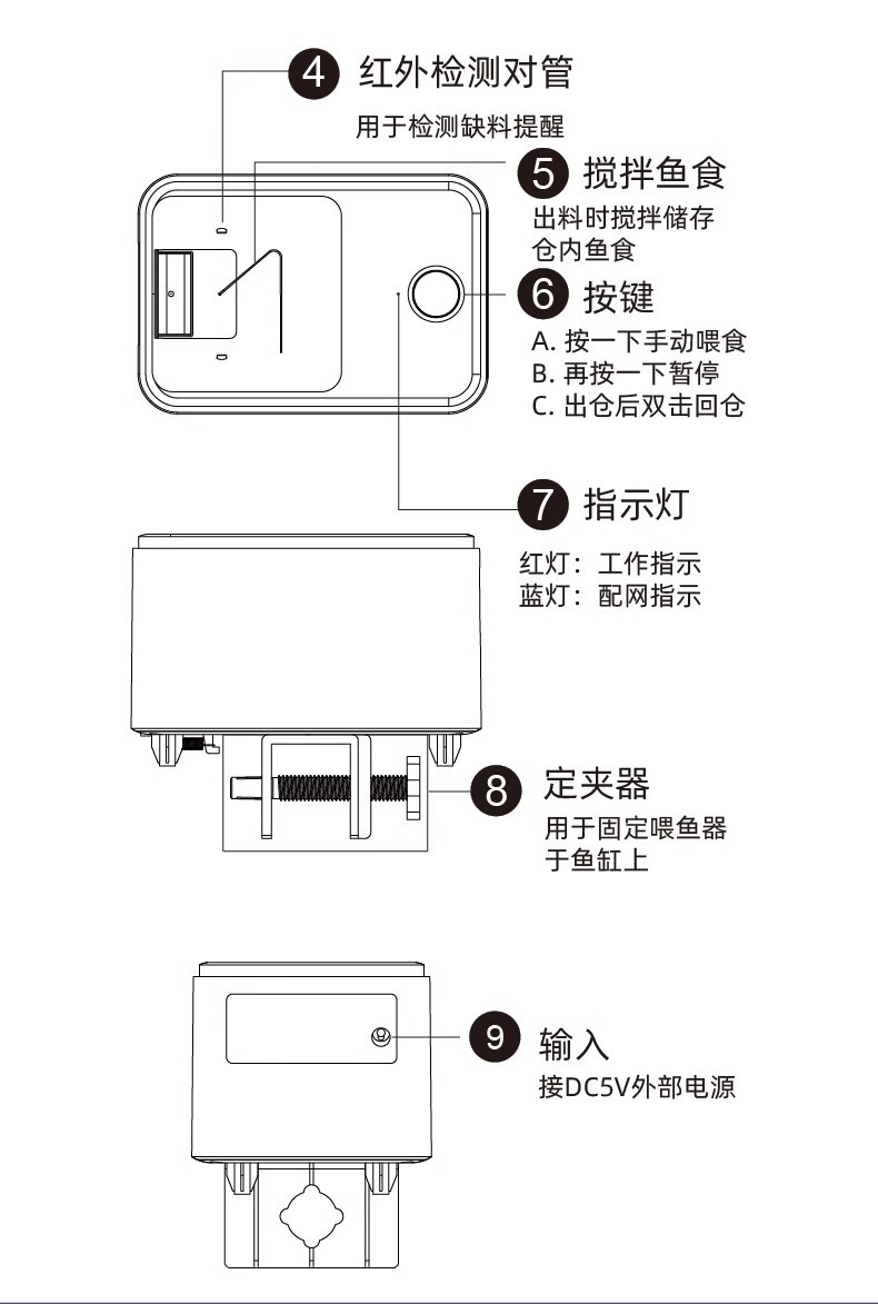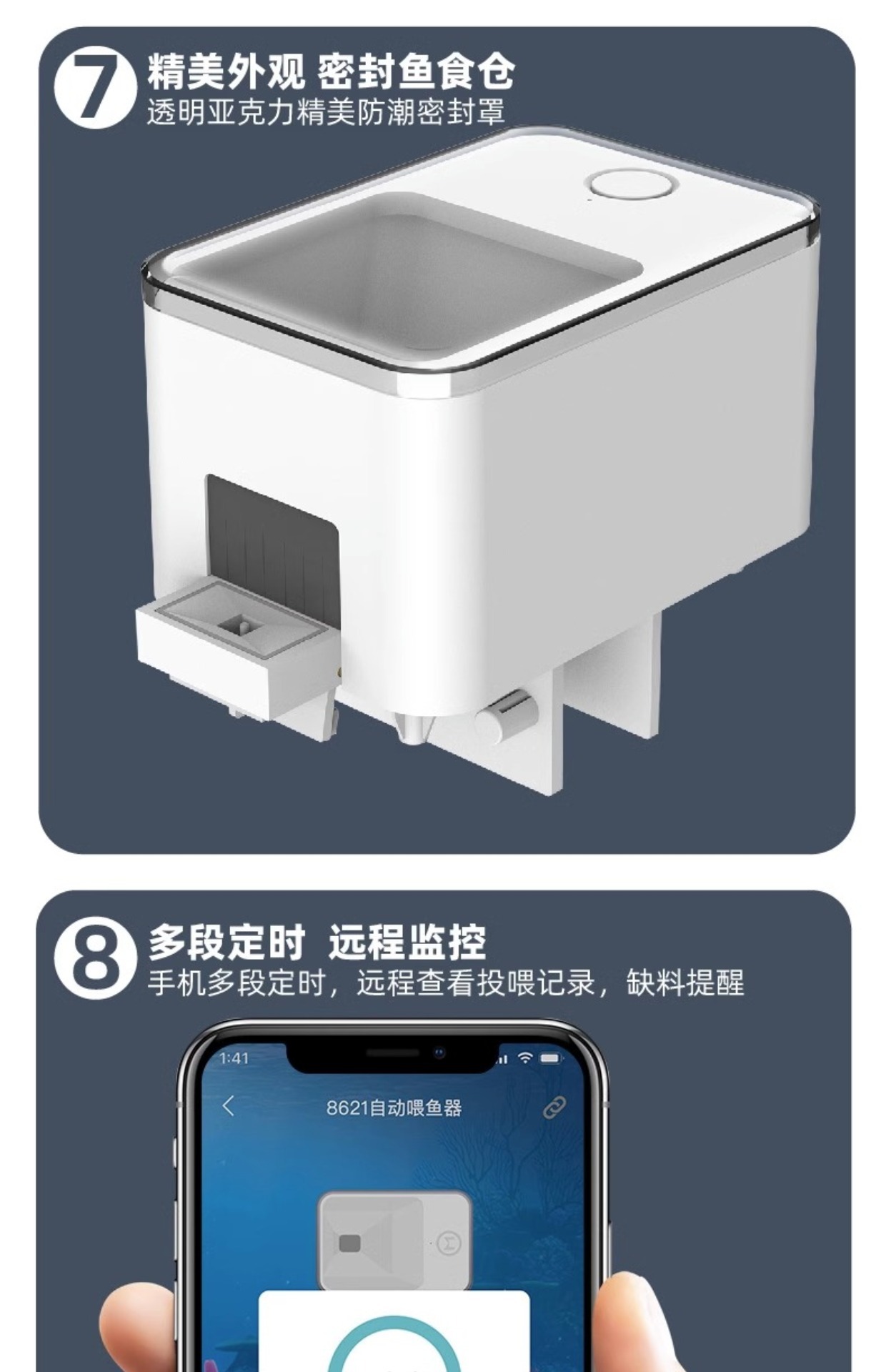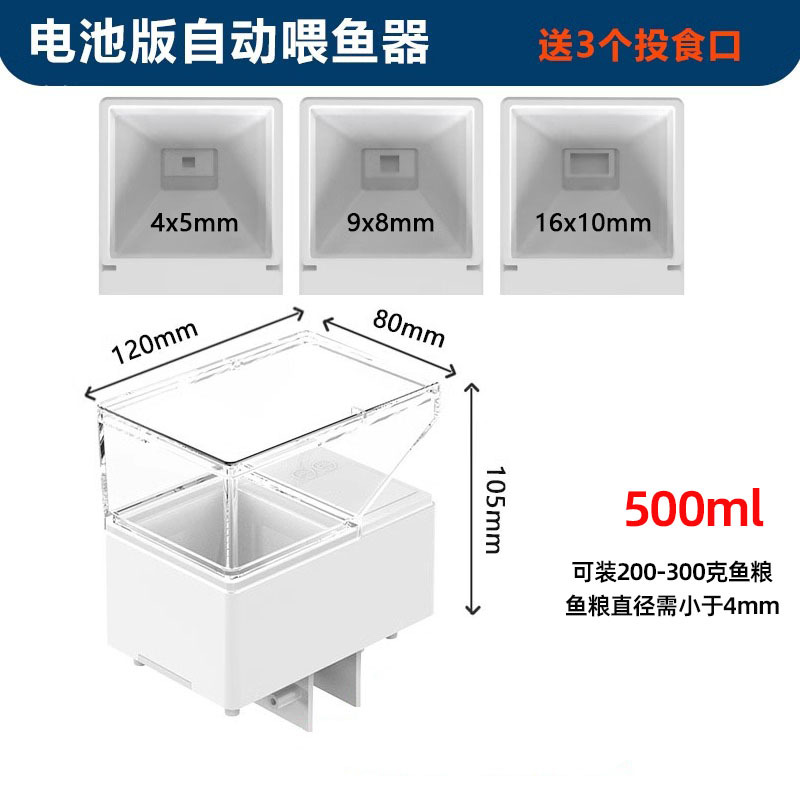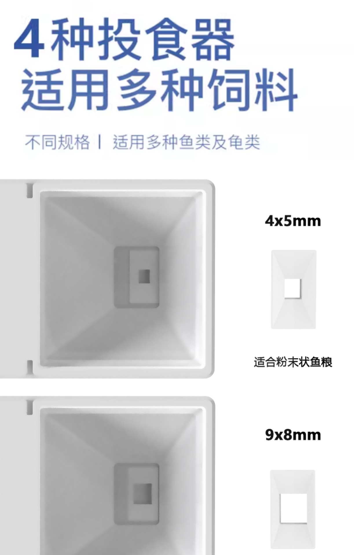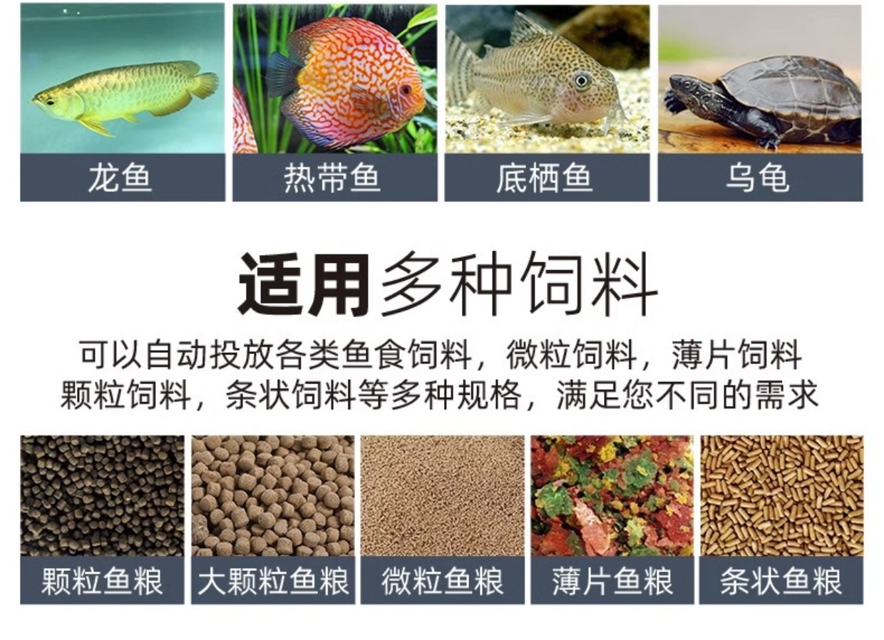 • [500ml] 비 WiFi 배터리 모델, 원격 제어 불가, 3개 포트 제공, 4mm 이내의 어류 사료 공급 가능