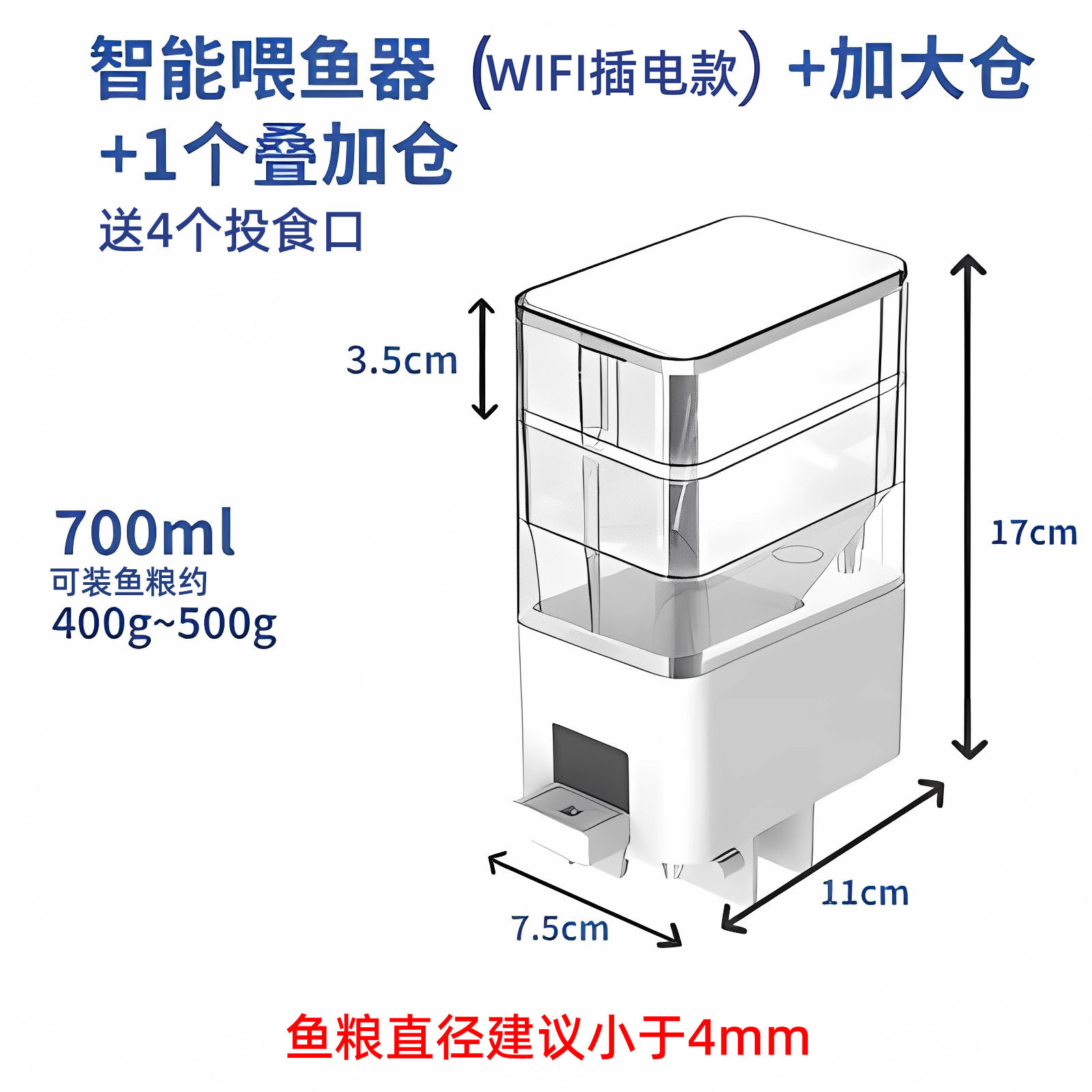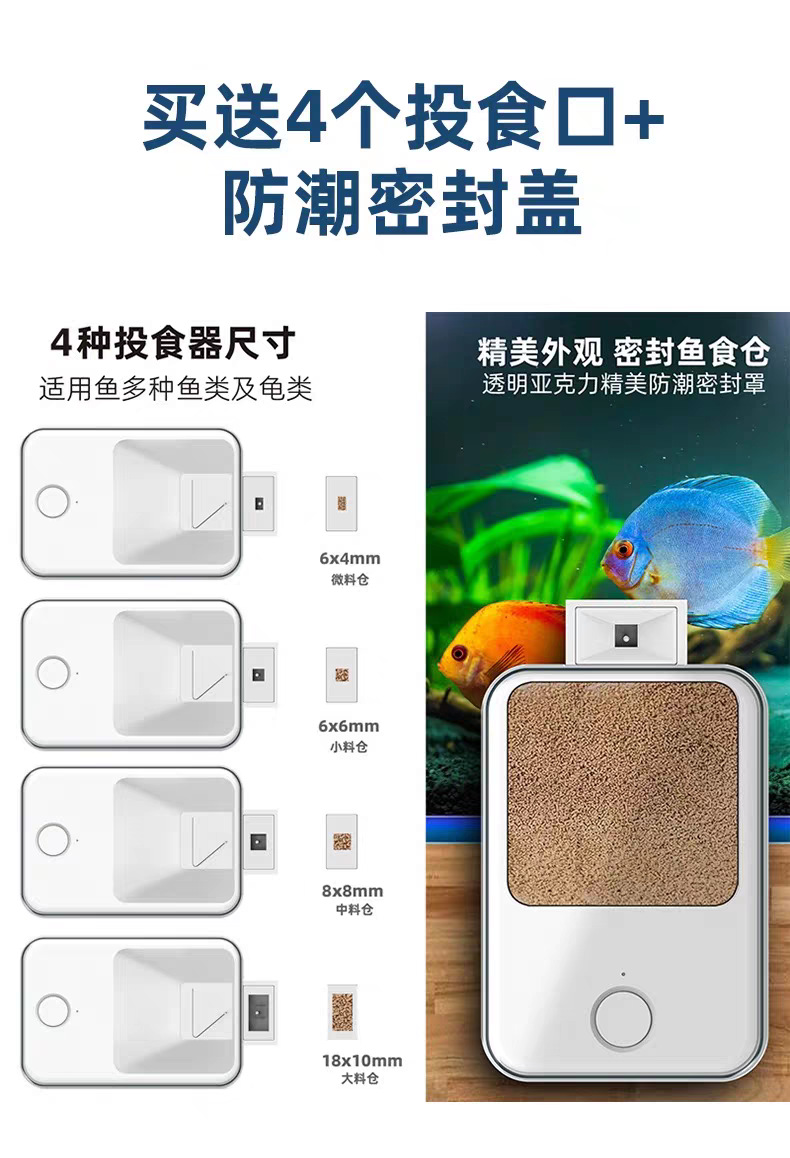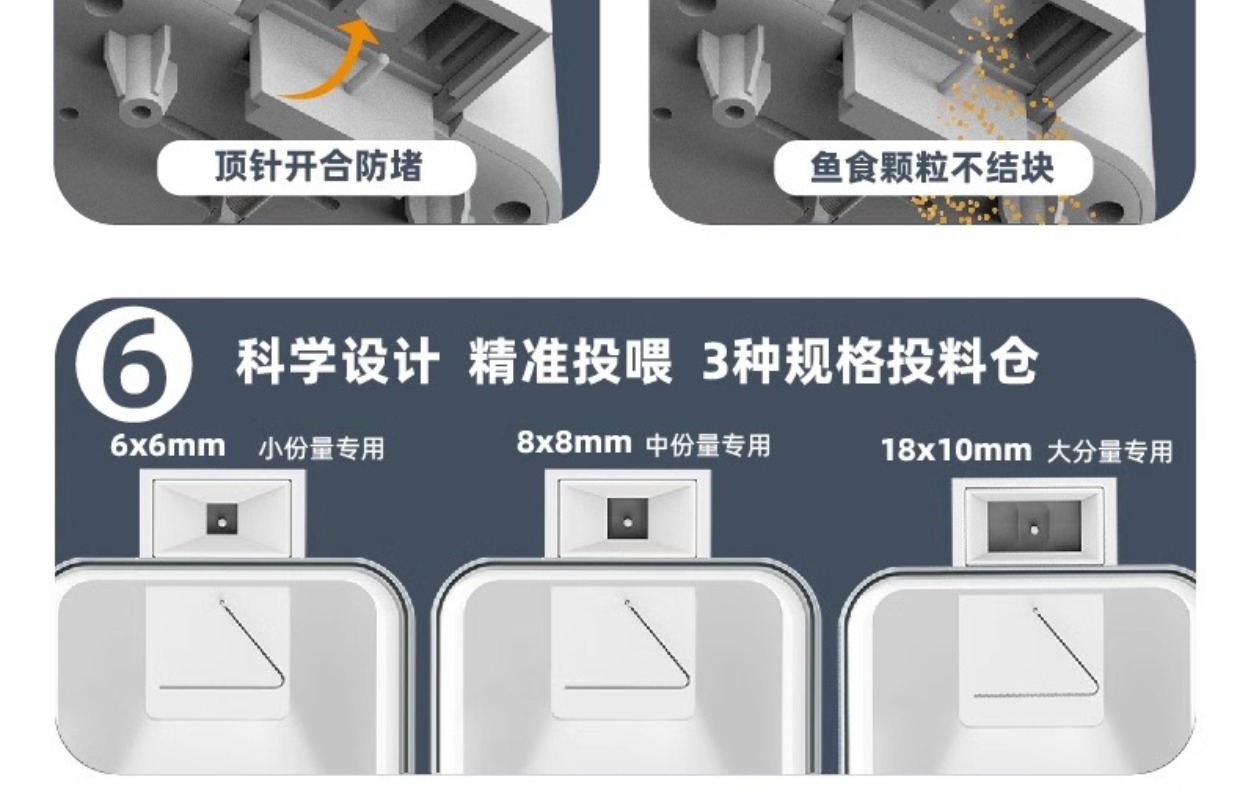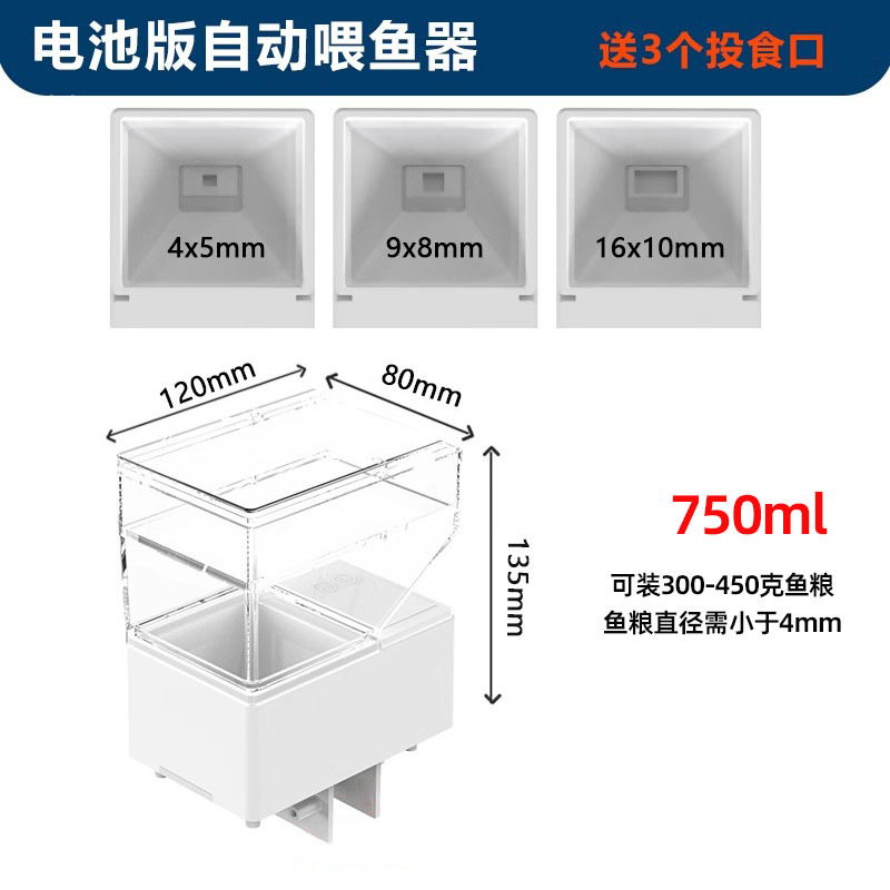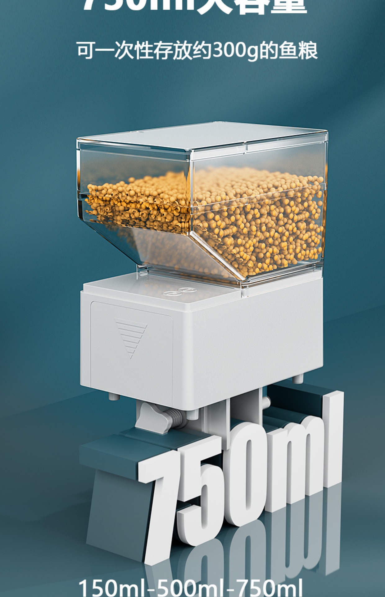 • [750ml] 비 WiFi 배터리 모델, 원격 제어 불가, 3개 포트 제공, 4mm 이내의 생선 먹이 공급 가능