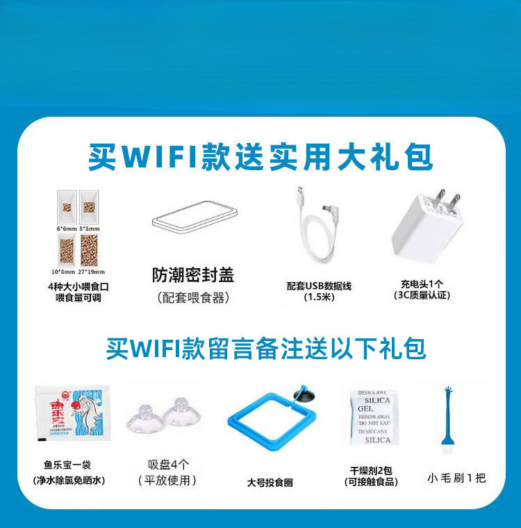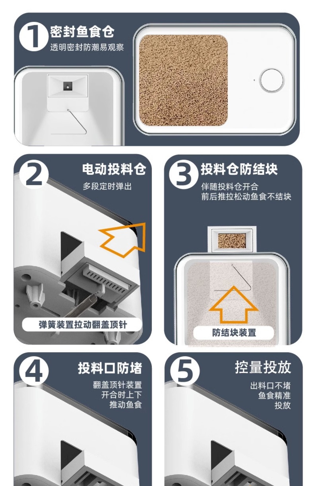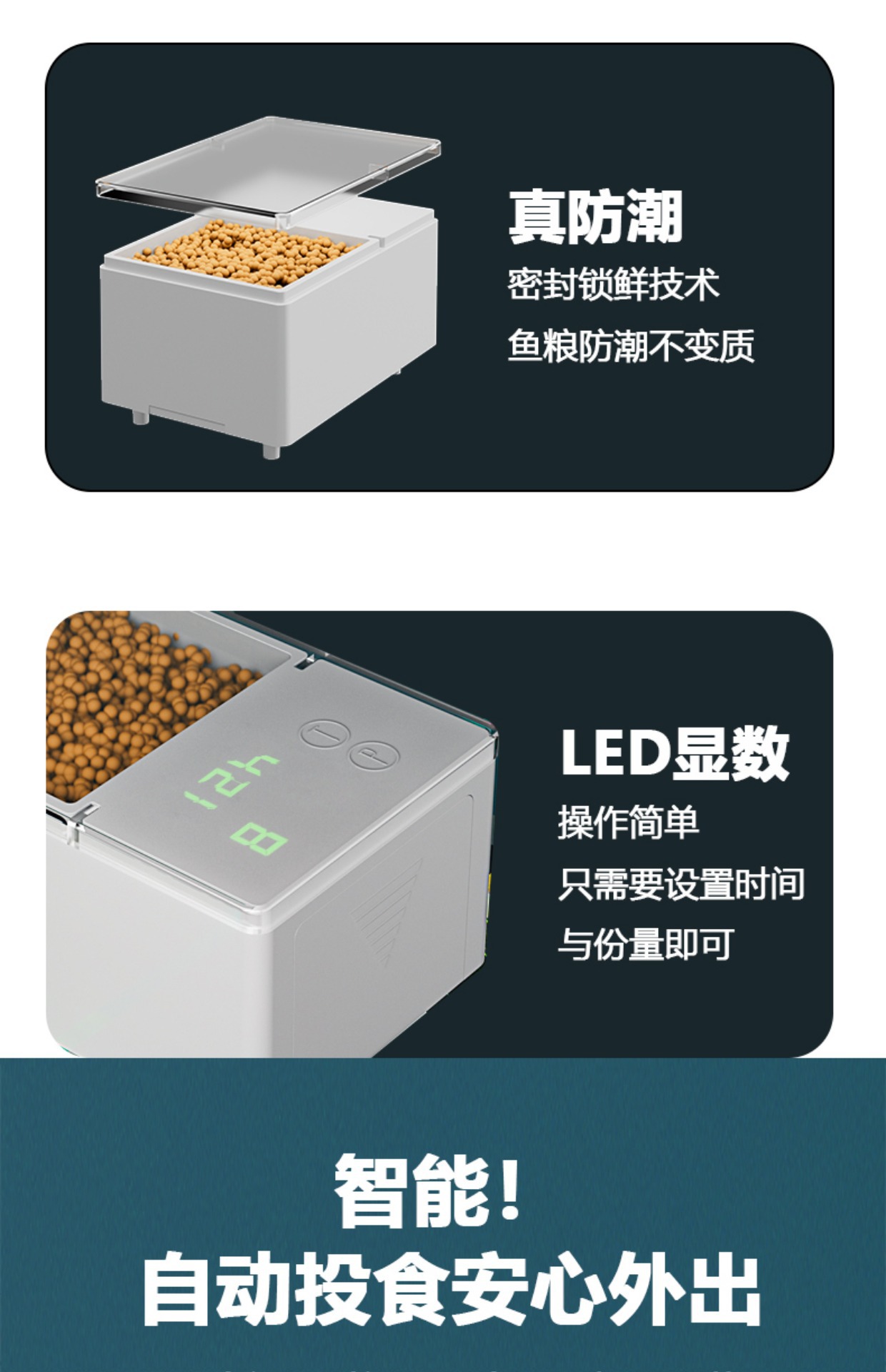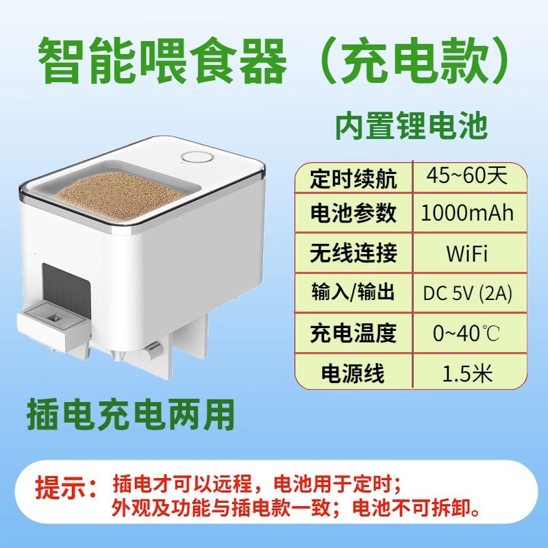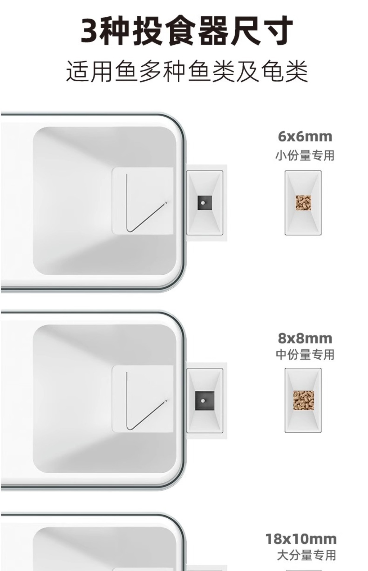 • [750ml] 비 WiFi 배터리 모델, 원격 제어 불가, 3개 포트 제공, 4mm 이내의 생선 먹이 공급 가능