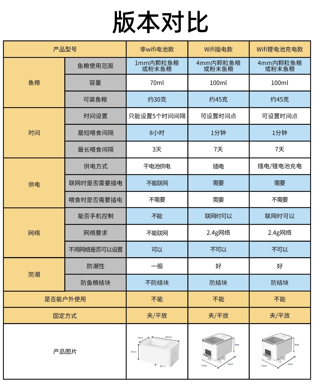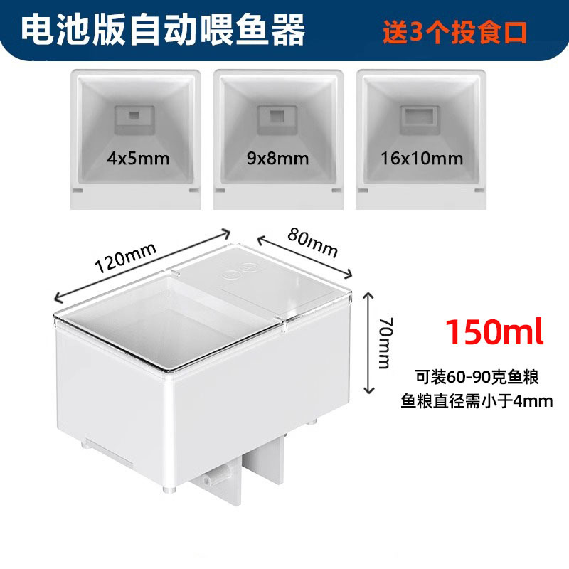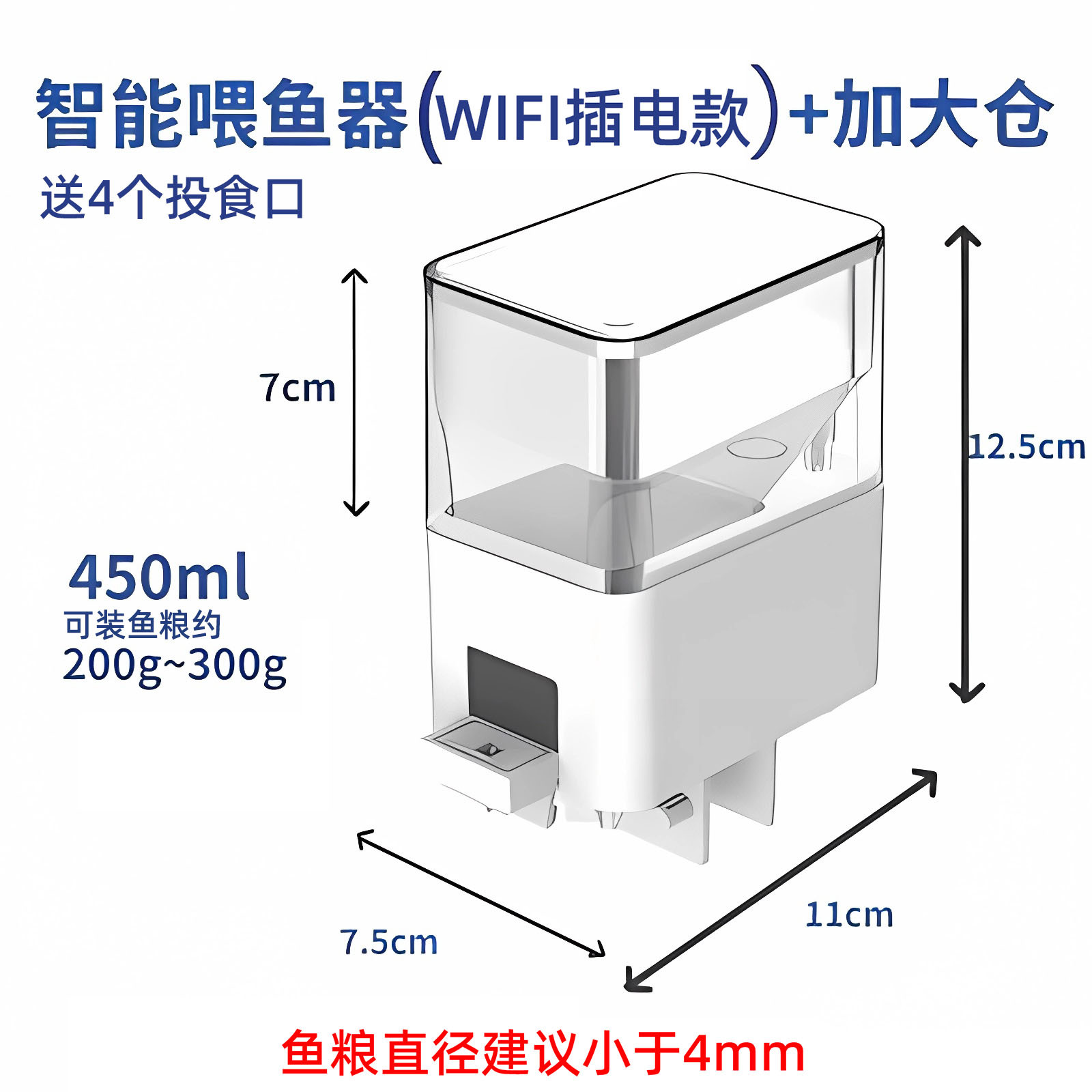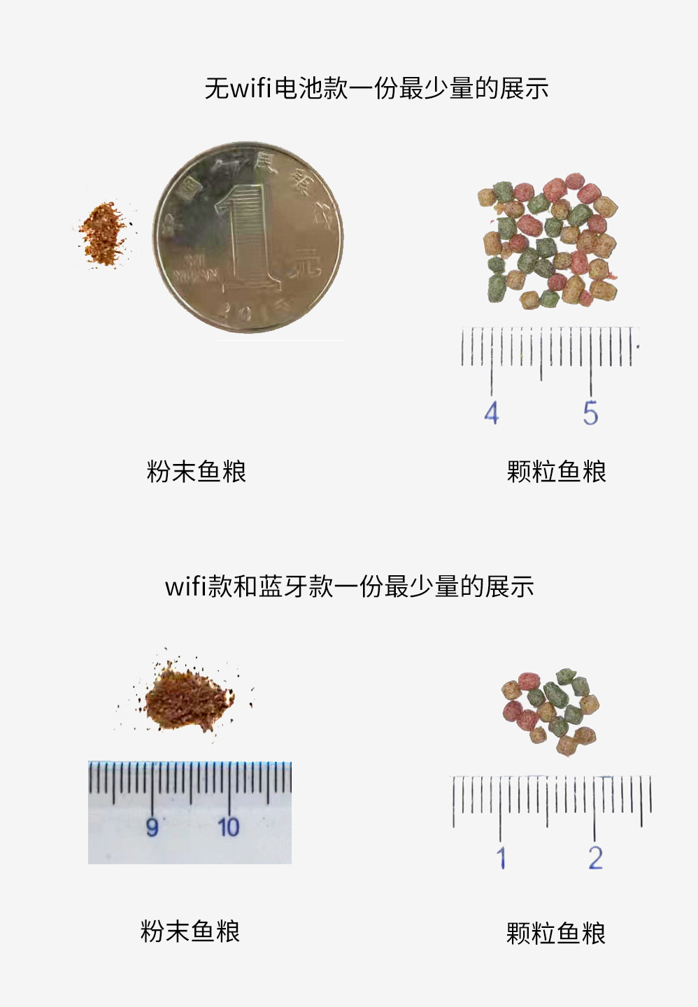 • [150ml] 비 WiFi 배터리 모델, 원격 제어 불가, 3개 포트 제공, 4mm 이내의 어류 사료 공급 가능