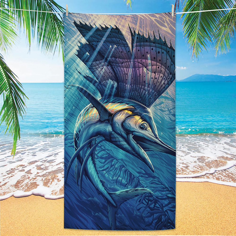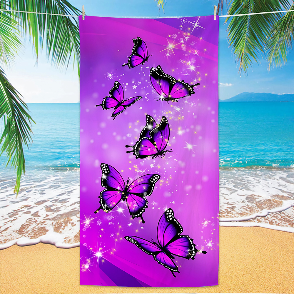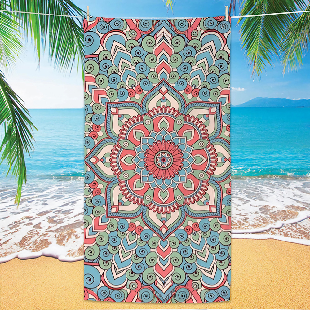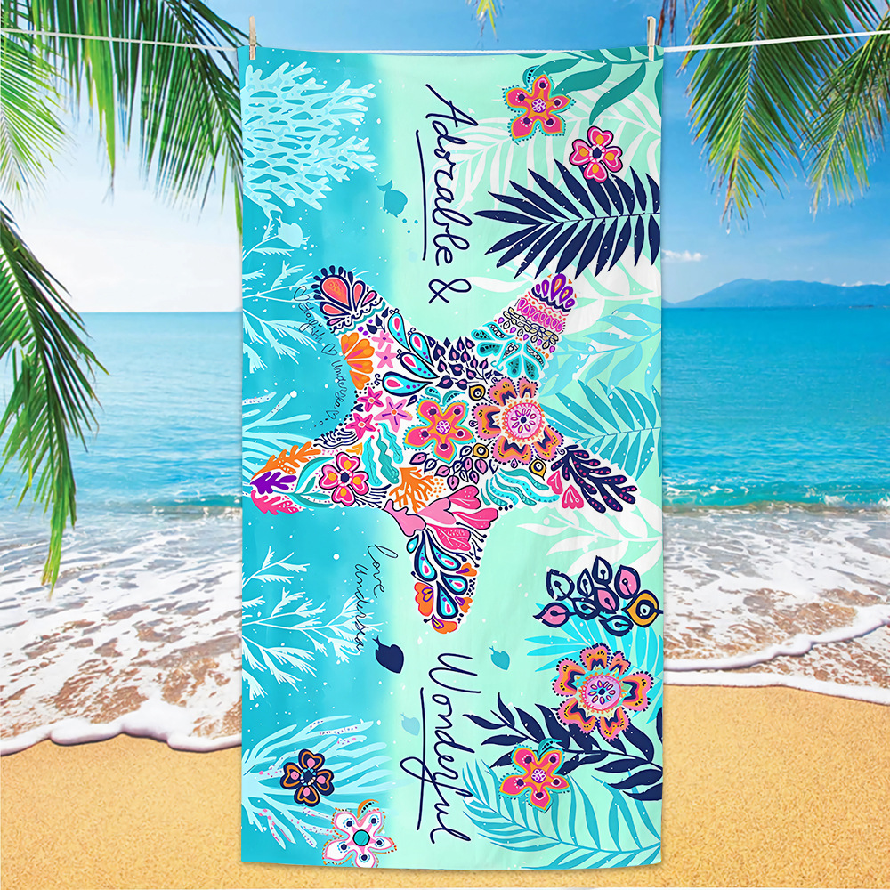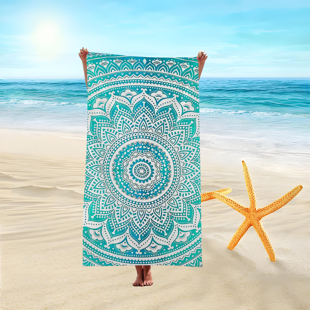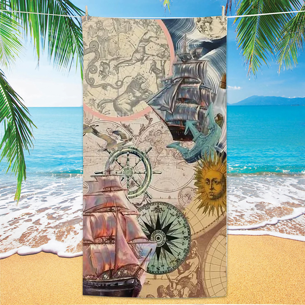 유럽과 미국의 국경 디지털 인쇄 비치 타월 빠른 건조 마이크로 파이버 비치 목욕 타월 양면 양털 맞춤형 비치 타월