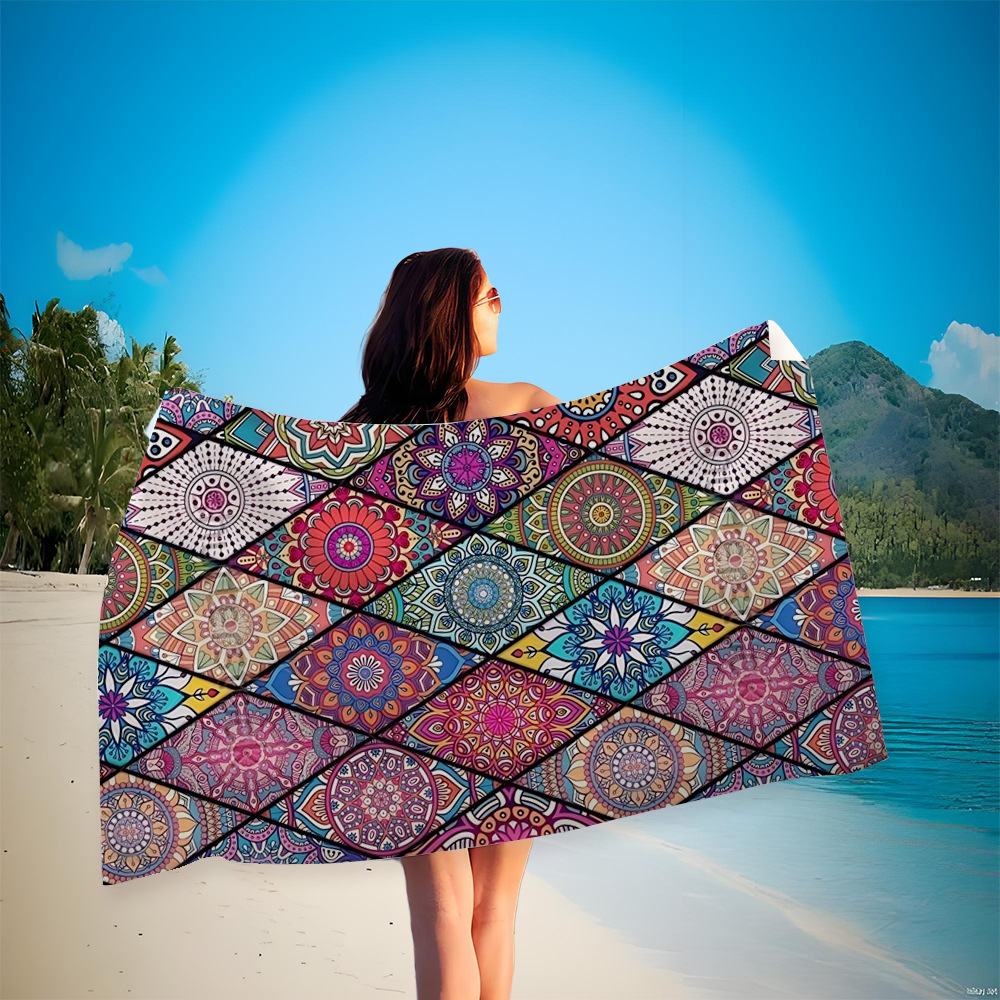 유럽과 미국의 국경 디지털 인쇄 비치 타월 빠른 건조 마이크로 파이버 비치 목욕 타월 양면 양털 맞춤형 비치 타월스토어 가기