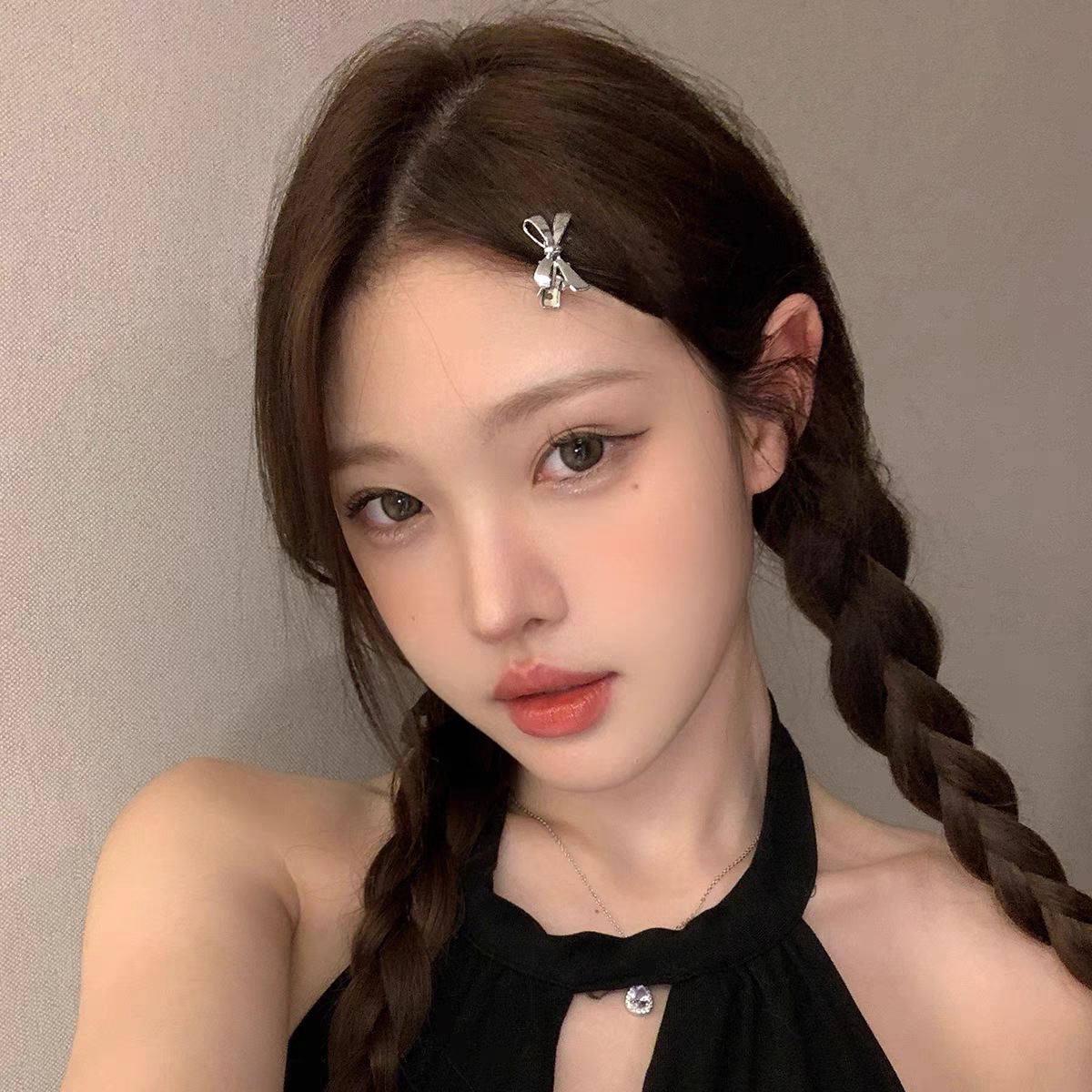 달콤한 쿨 스타일 금속 실버 활 머리핀 여성의 2025 새로운 스타일 뱅이 클립 사이드 고급 소형 클립 헤어 액세서리스토어 가기