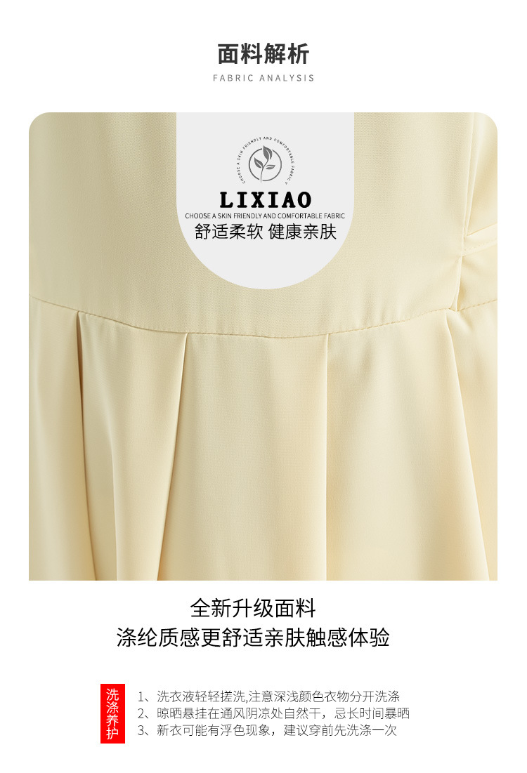 涤纶混纺面料,垂感好,没有内衬,穿着透气不闷热