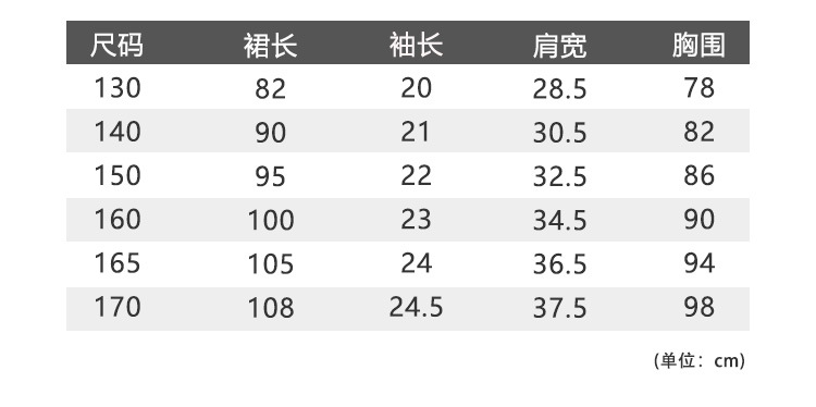 码数:130.140.150.160.165.170码 (标准码,偏胖一点也按身高来拍即可达到模特上身效果)
