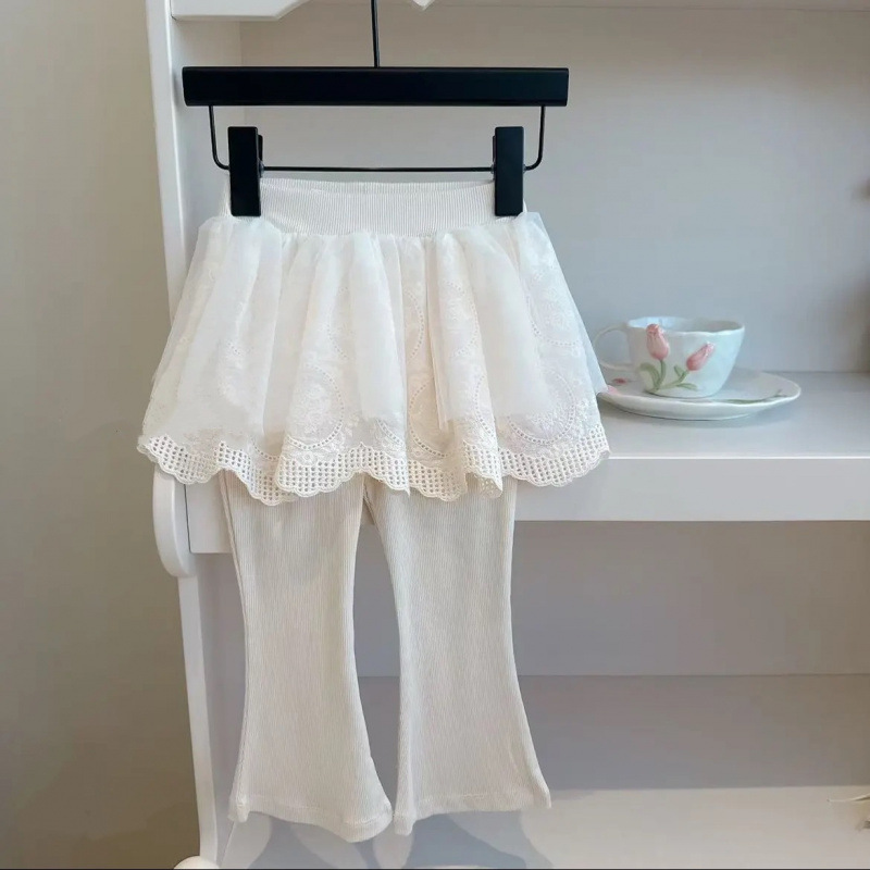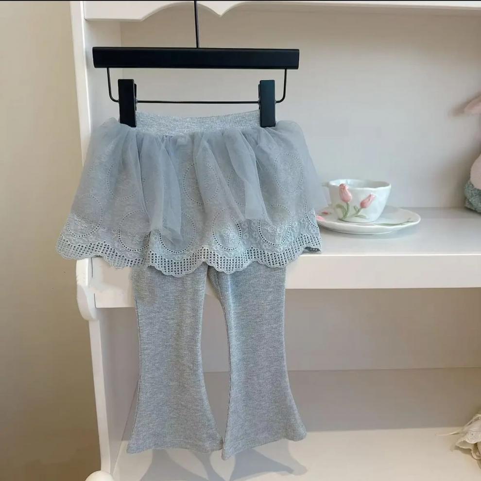 소녀 바지 봄과 가을 서양식 패션 2025 새로운 도착 메쉬 베이비 컬로트 가짜 2 피스 외주 레깅스 트렌디
