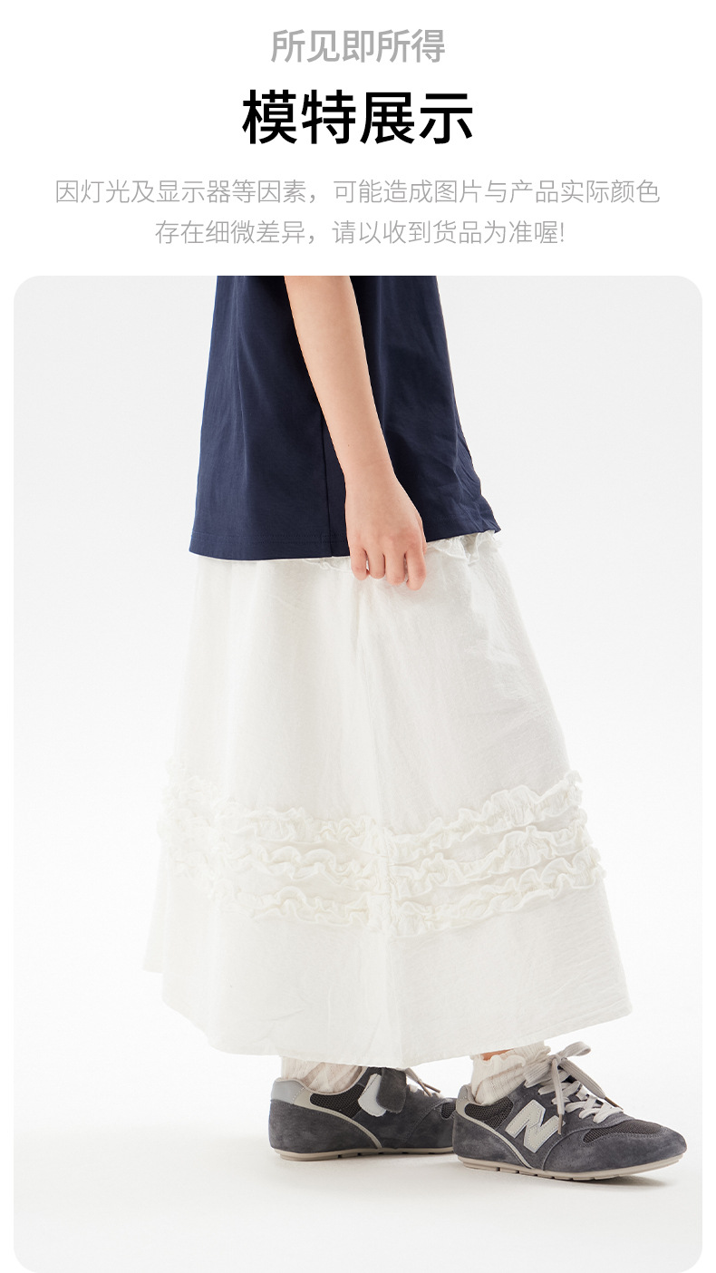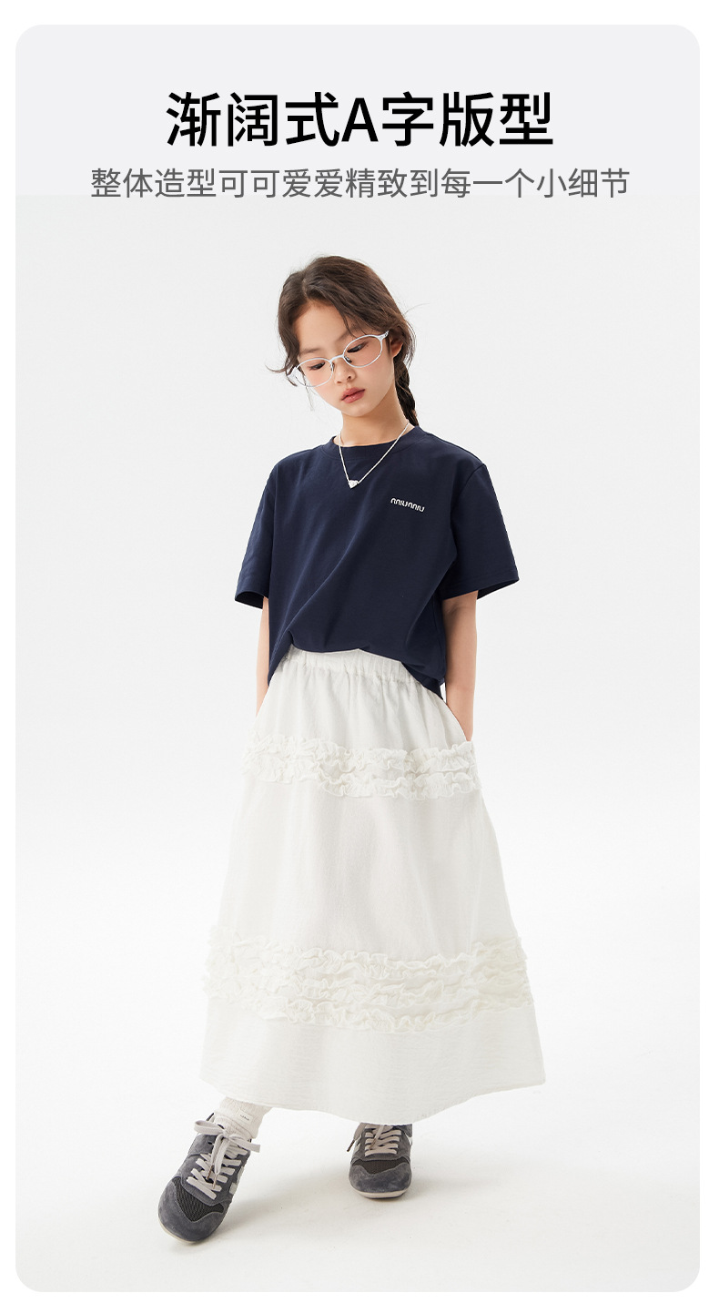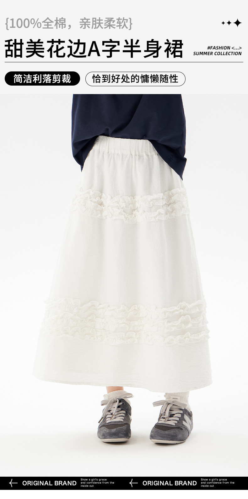 여아 레이스 코튼 스커트 2026 여름 신상 아동용 한국 스타일 큰 밑단 스커트 중대형 아동용 루즈핏 스커트