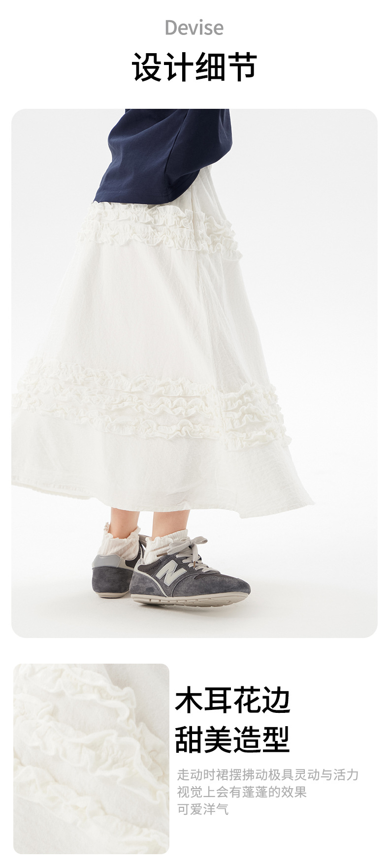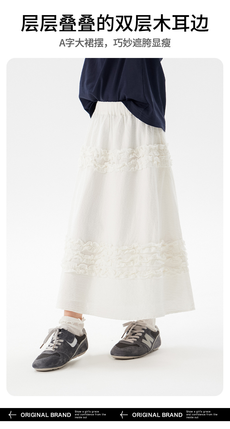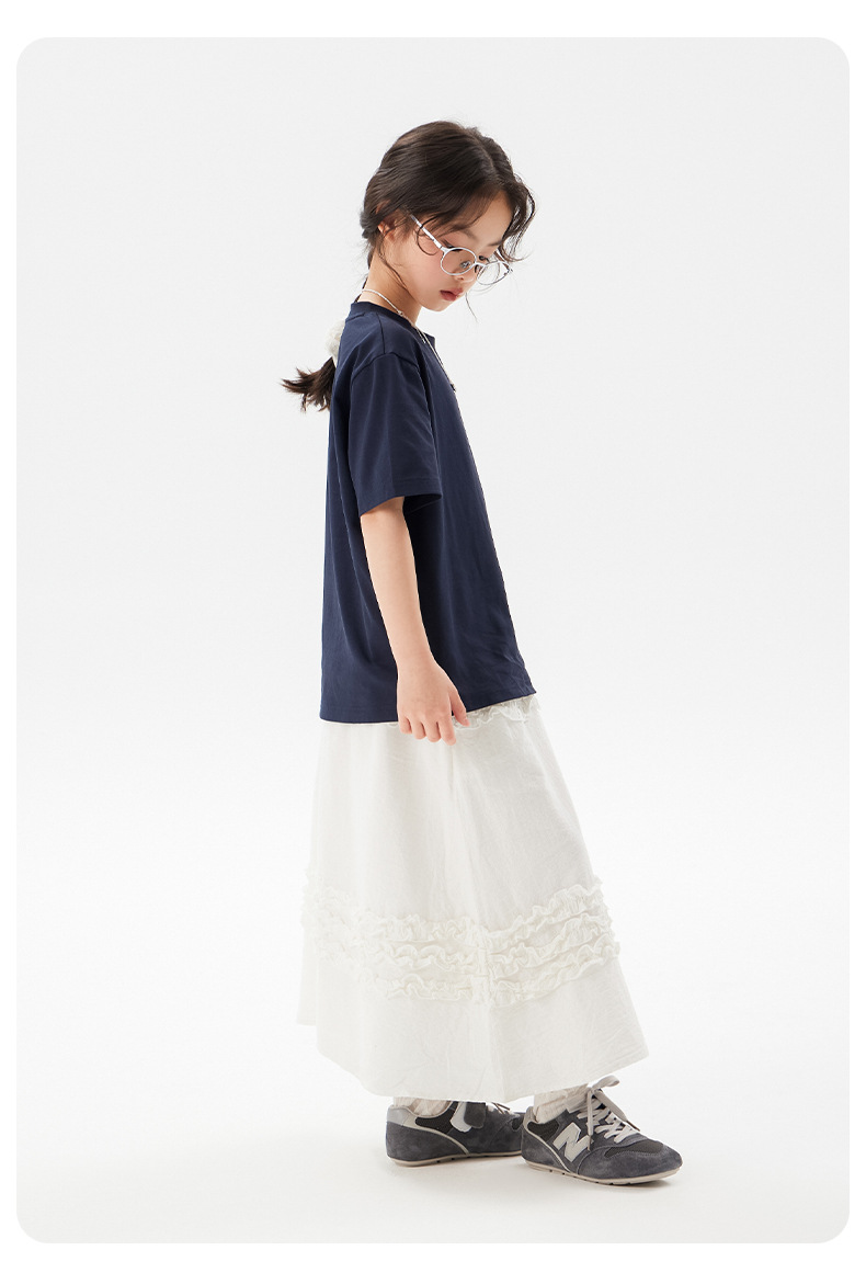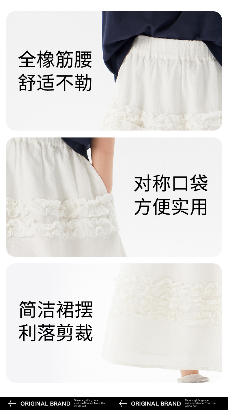 여아 레이스 코튼 스커트 2026 여름 신상 아동용 한국 스타일 큰 밑단 스커트 중대형 아동용 루즈핏 스커트