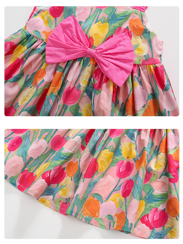 2025 새로운 스타일의 외국 스타일 귀여운 공주 슬립 스커트 소녀의 꽃 원피스 펜던트 스커트 여름 원피스 클래스 A 치마