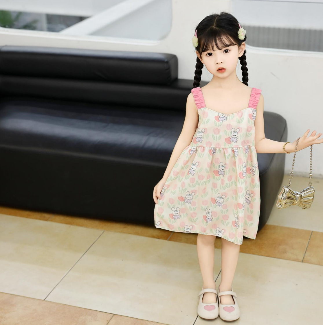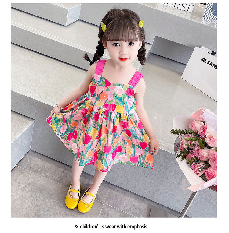 2025 새로운 스타일의 외국 스타일 귀여운 공주 슬립 스커트 소녀의 꽃 원피스 펜던트 스커트 여름 원피스 클래스 A 치마스토어 가기