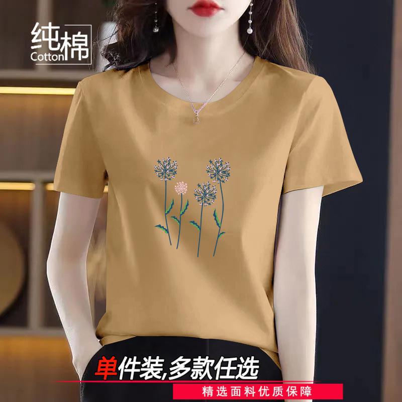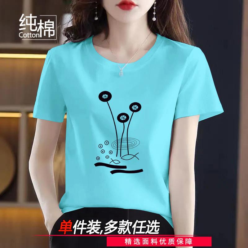 여름 새로운 인쇄 하이 퀄리티 코튼 짧은 소매 여성 T-어깨 라운드 넥 올 매치 하프 소매 느슨한 플러스 사이즈 세련된 패션스토어 가기