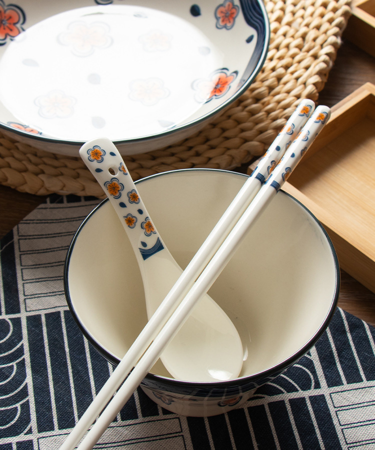 사계절 꽃 만화 세라믹 숟가락 젓가락 전자 레인지 귀여운 창조적 인 가정용 세라믹 숟가락 젓가락스토어 가기