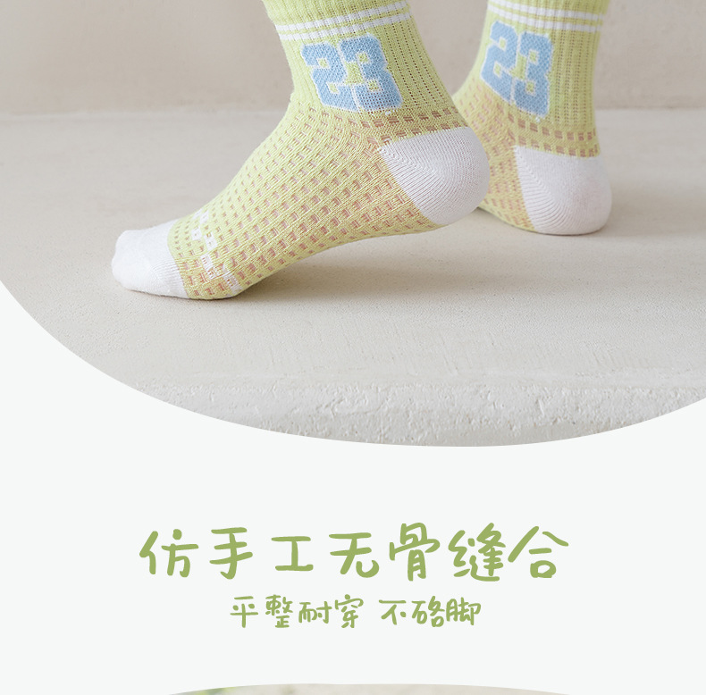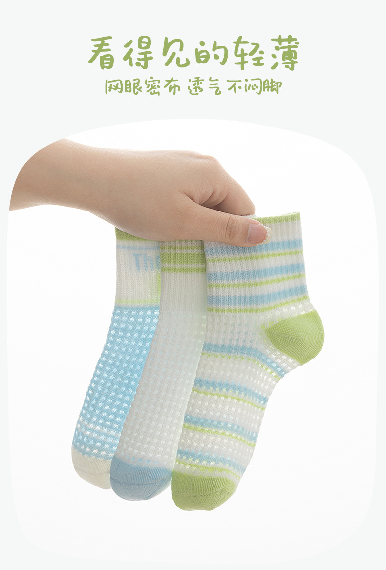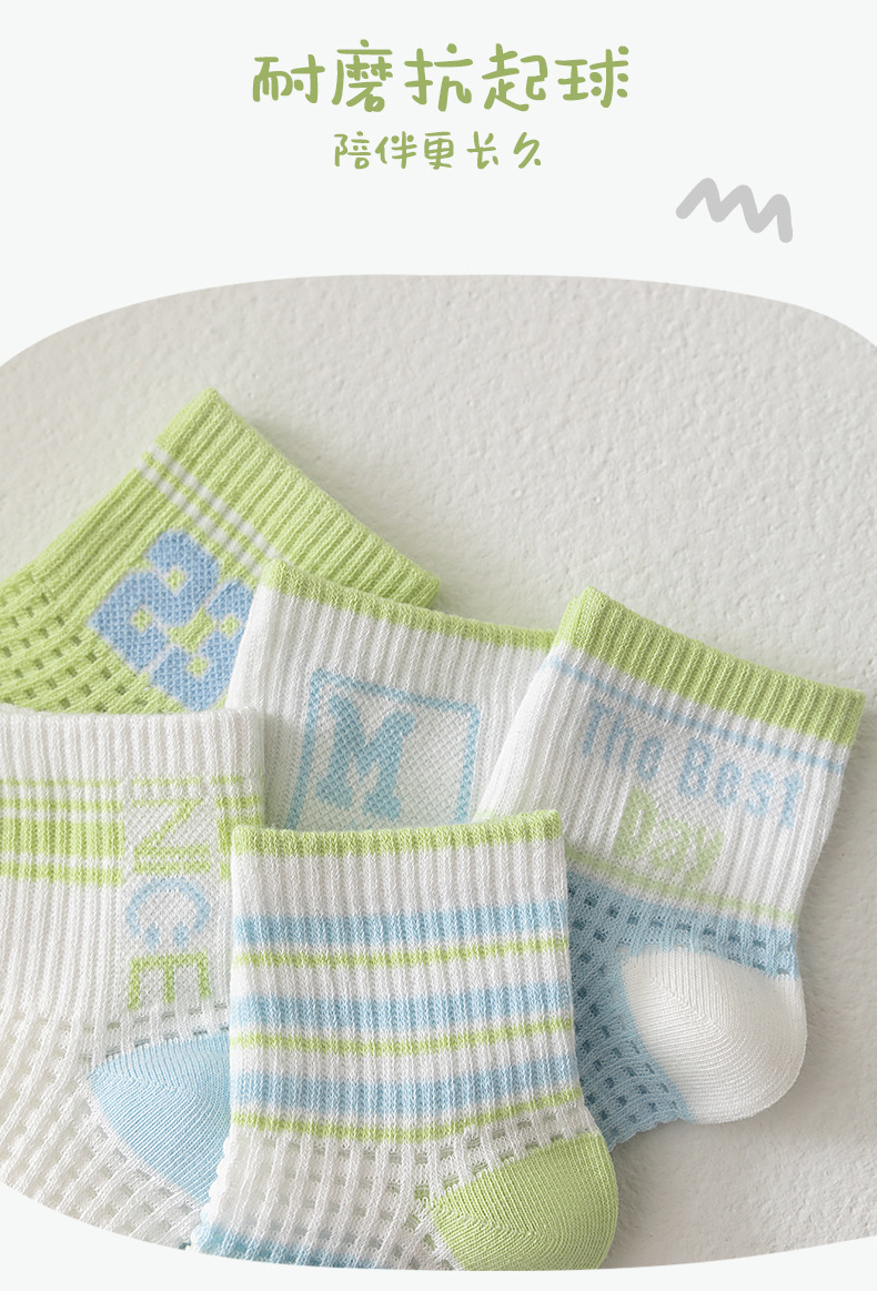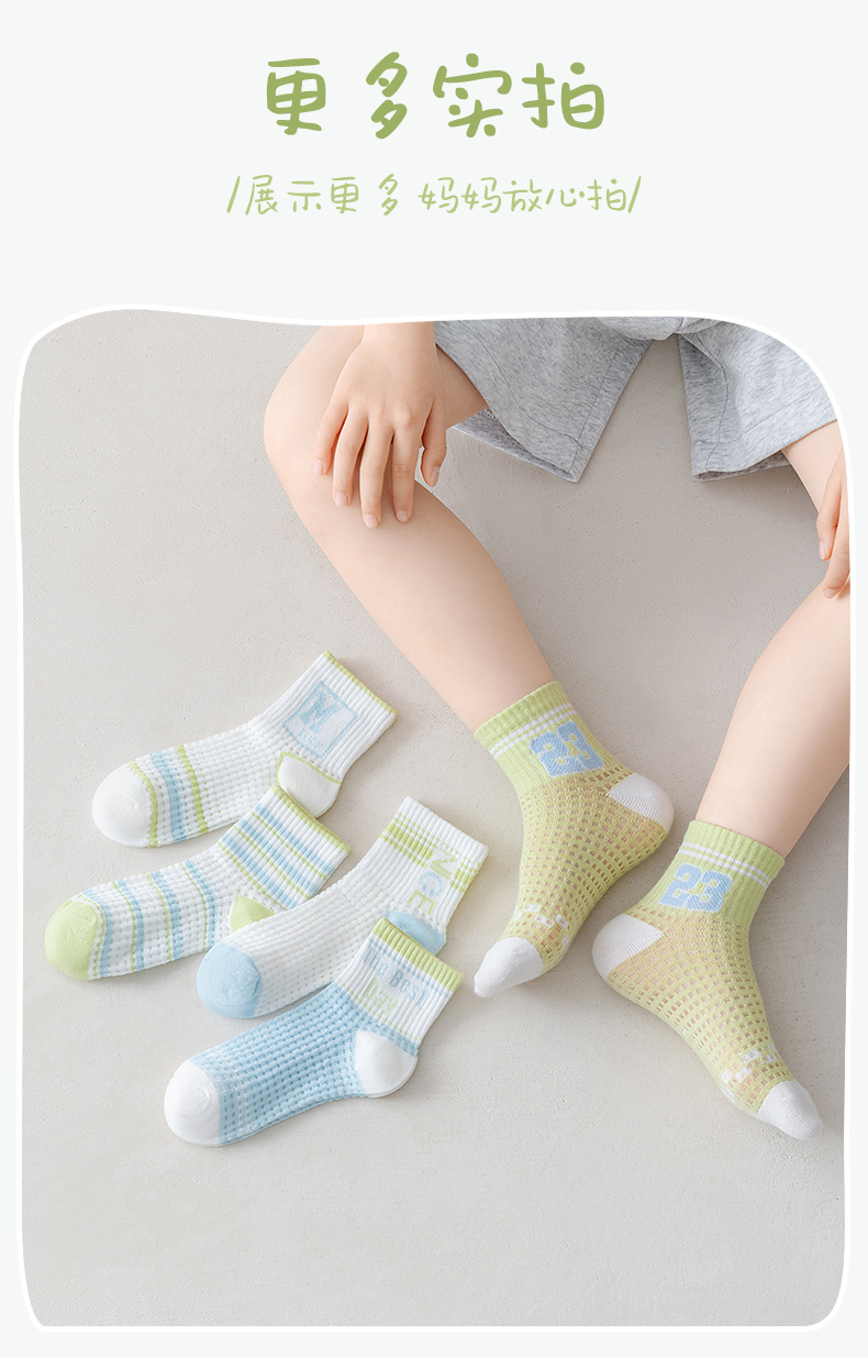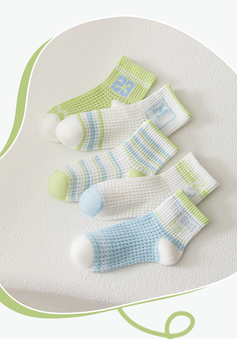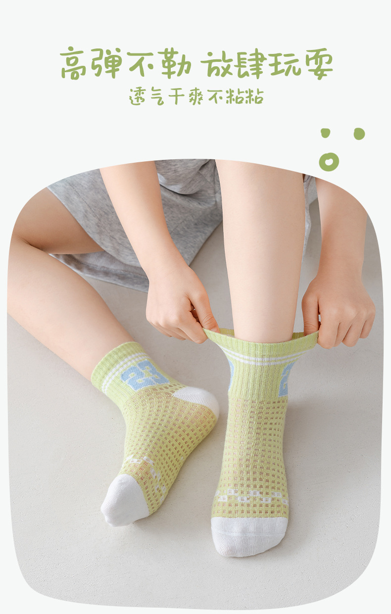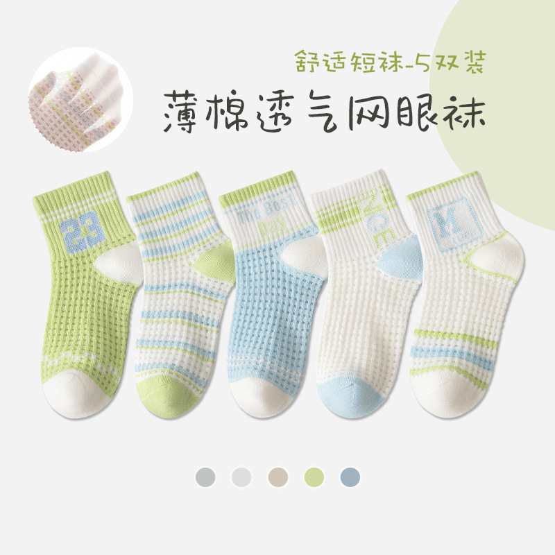 어린이 스포츠 양말 남자 여름 통기성 얇은 대형 메쉬 땀 짧은 양말 흡수 녹색 편지 여름 학생 양말