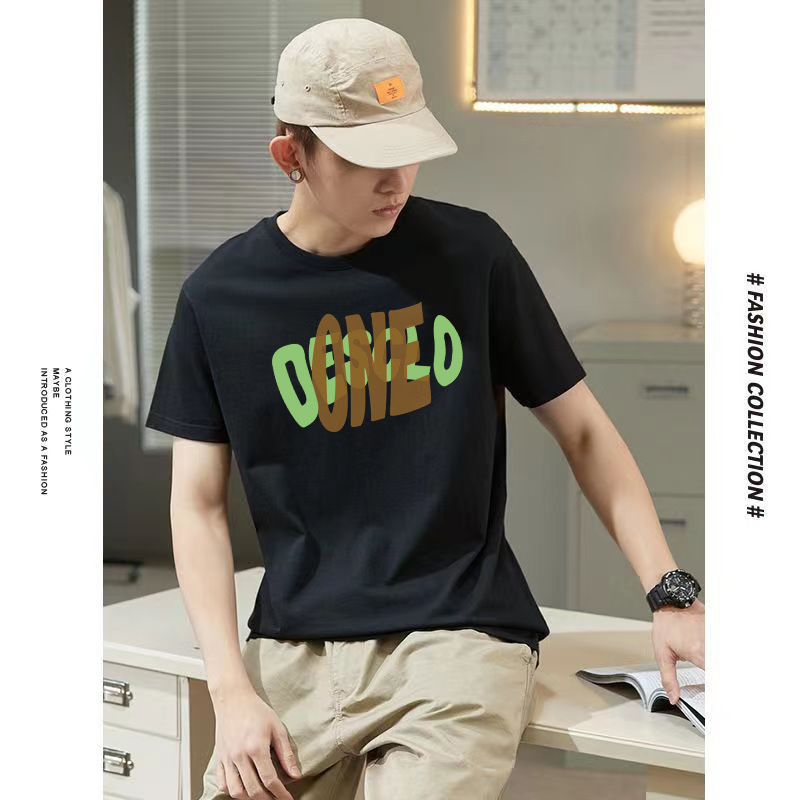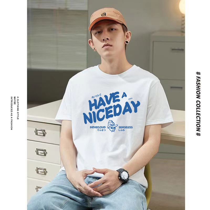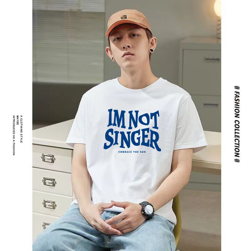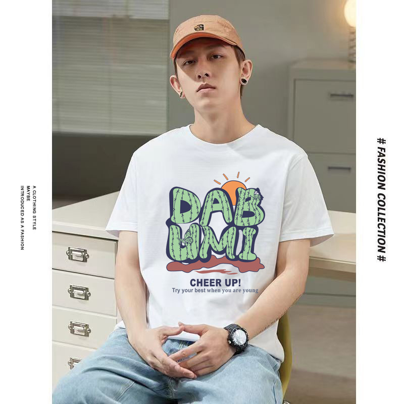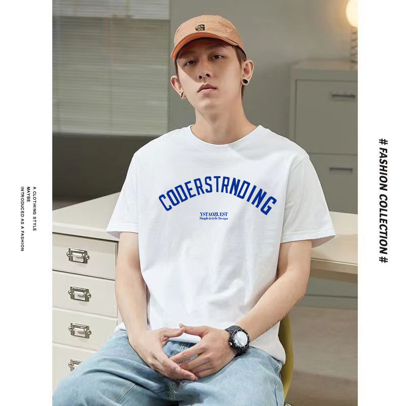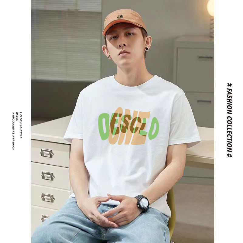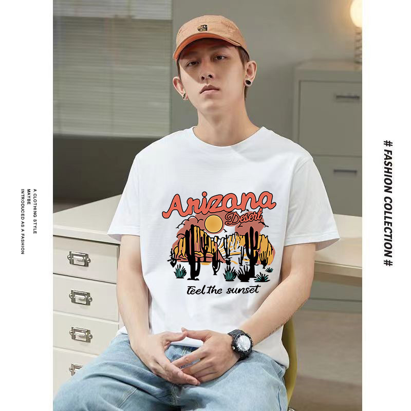 • 홍콩 스타일 아이스 실크 반팔 흰색 글자 선인장