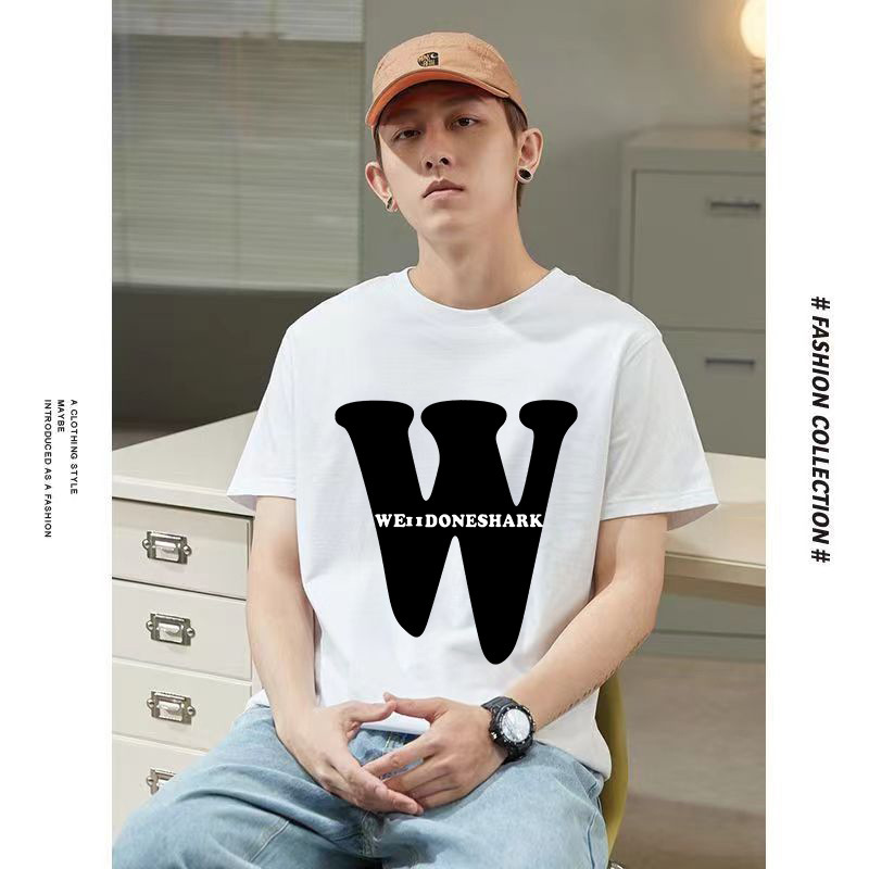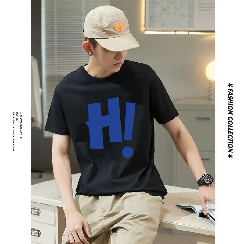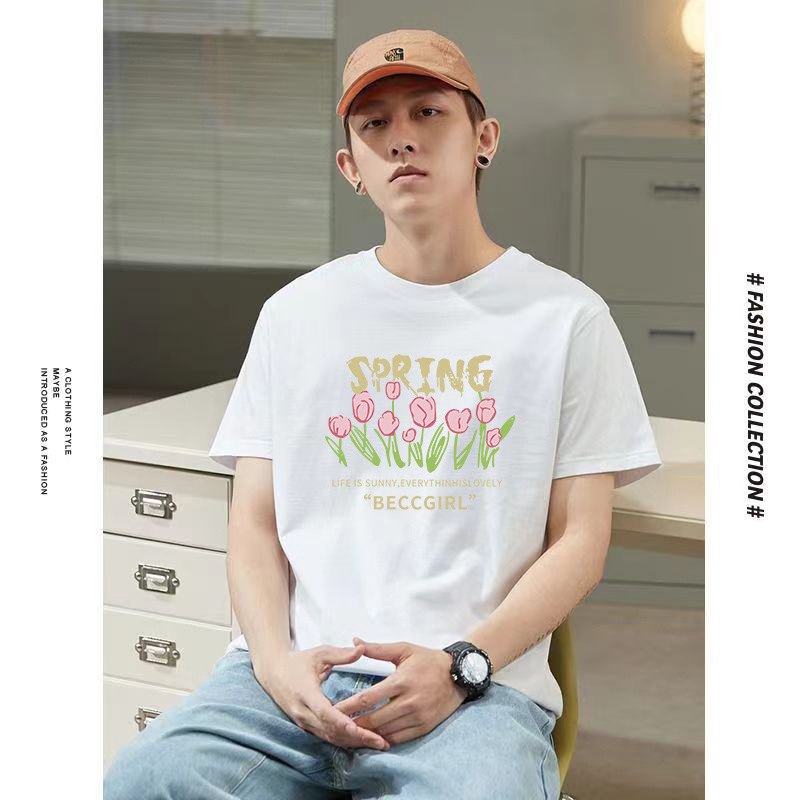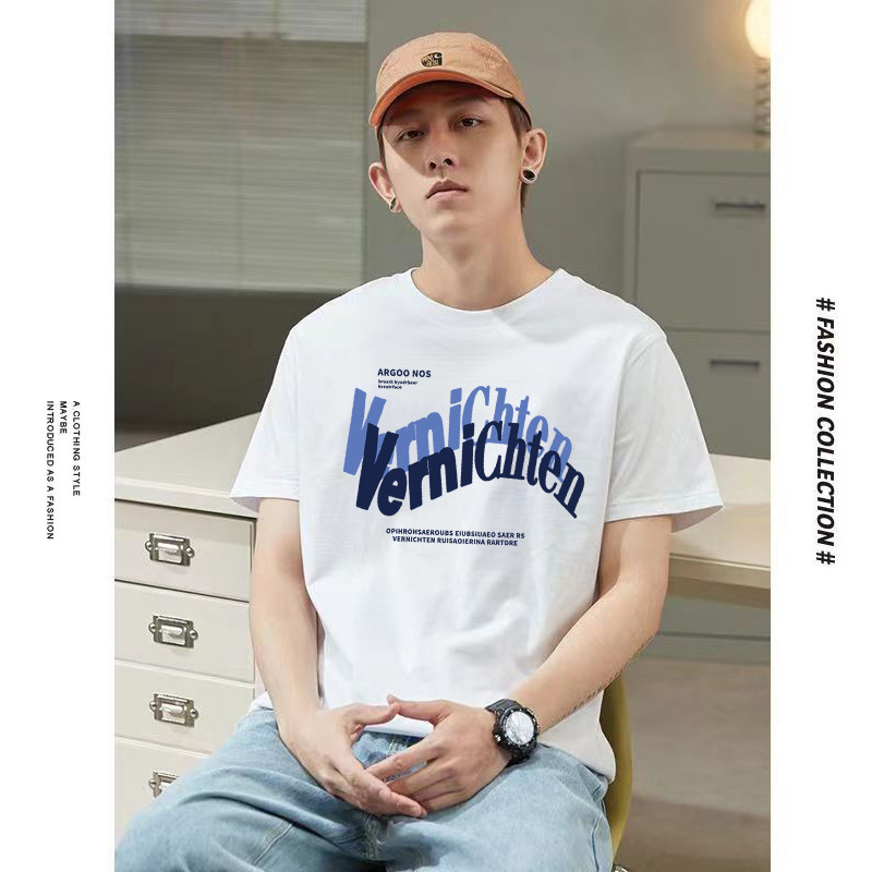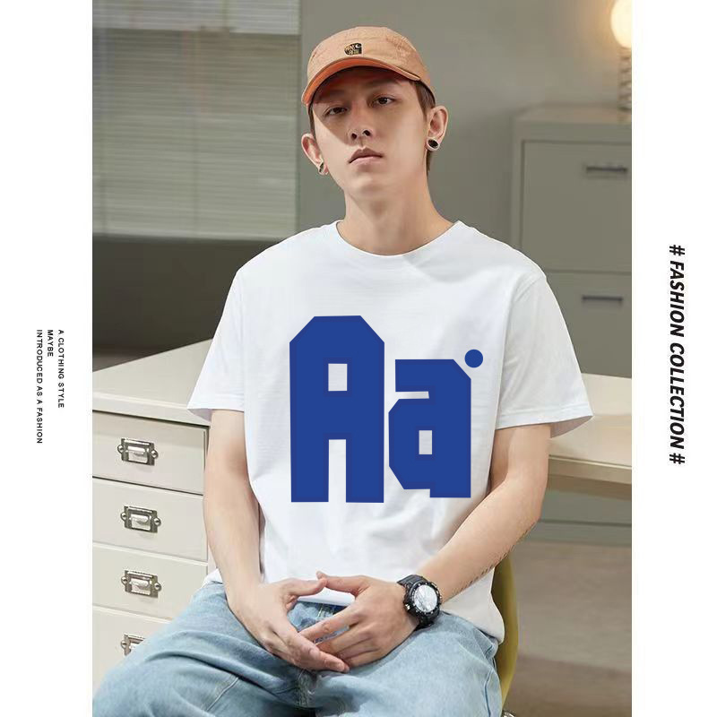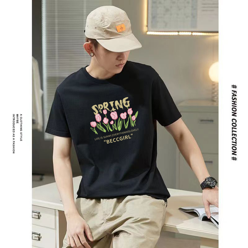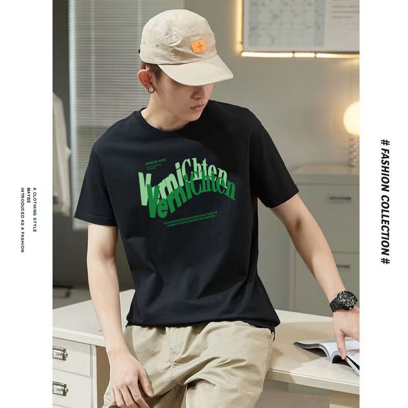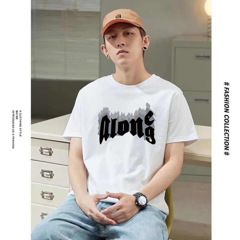 • 홍콩 스타일 아이스 실크 반팔 흰색 글자 선인장