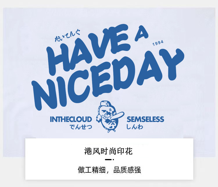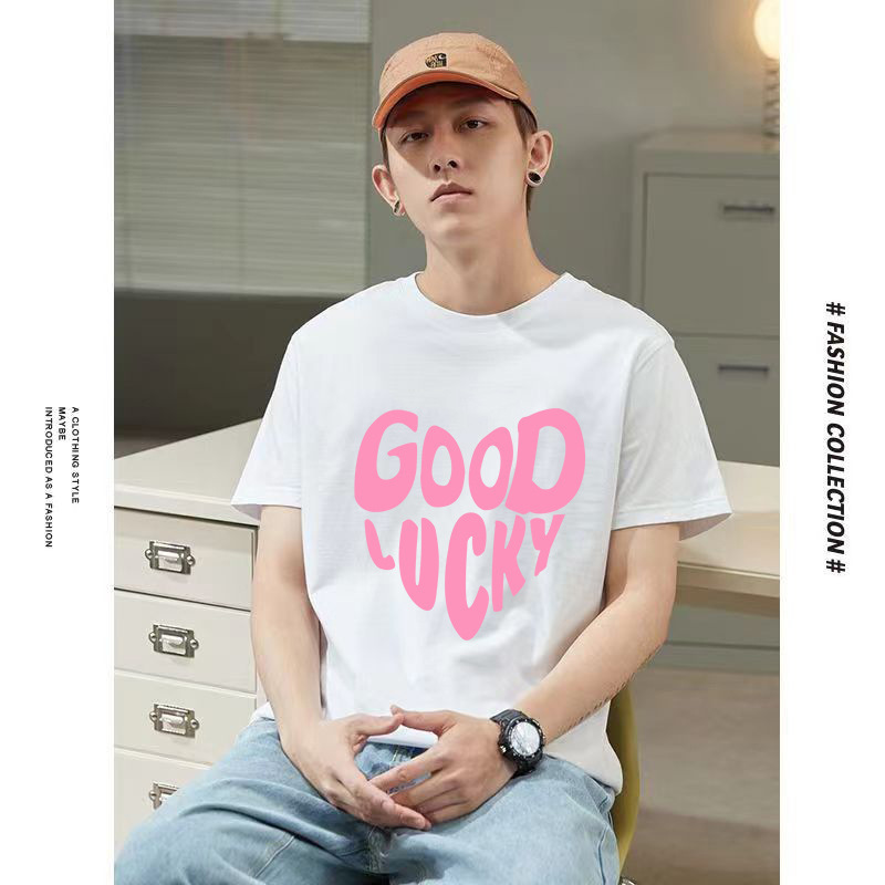 • 홍콩 스타일 아이스 실크 반팔 화이트 행운을 빌어요