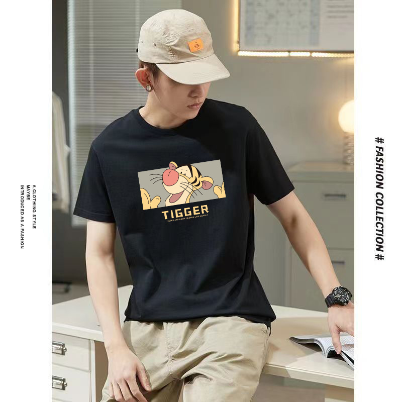 • 홍콩 스타일 아이스 실크 반팔 블랙 곰돌이 푸우