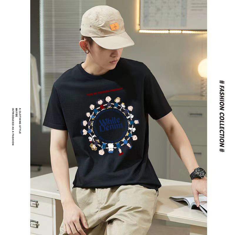 • 홍콩 스타일 아이스 실크 반팔 블랙 손을 잡고 스누피