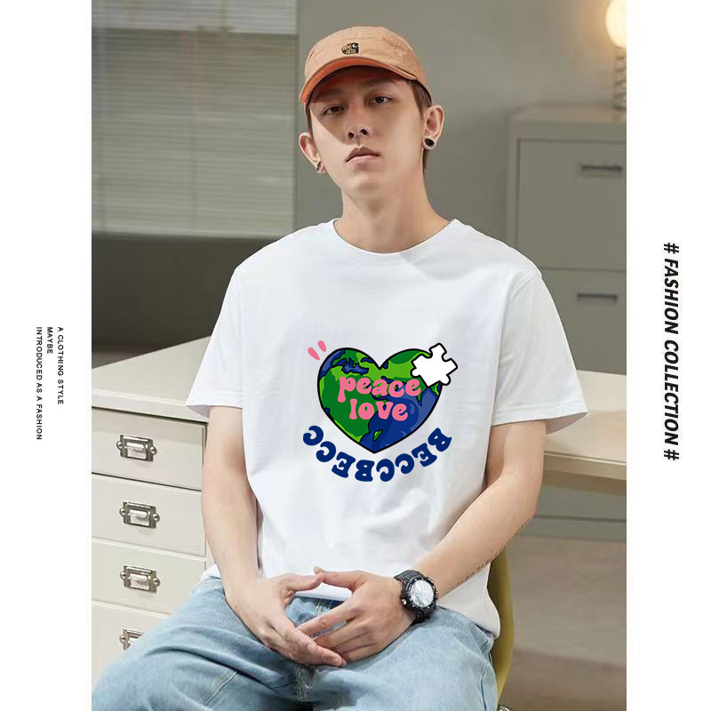 • 홍콩 스타일 아이스 실크 반팔 화이트 평화 사랑