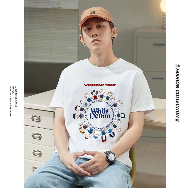 • 홍콩 스타일 아이스 실크 반팔 흰색 손을 잡고 스누피
