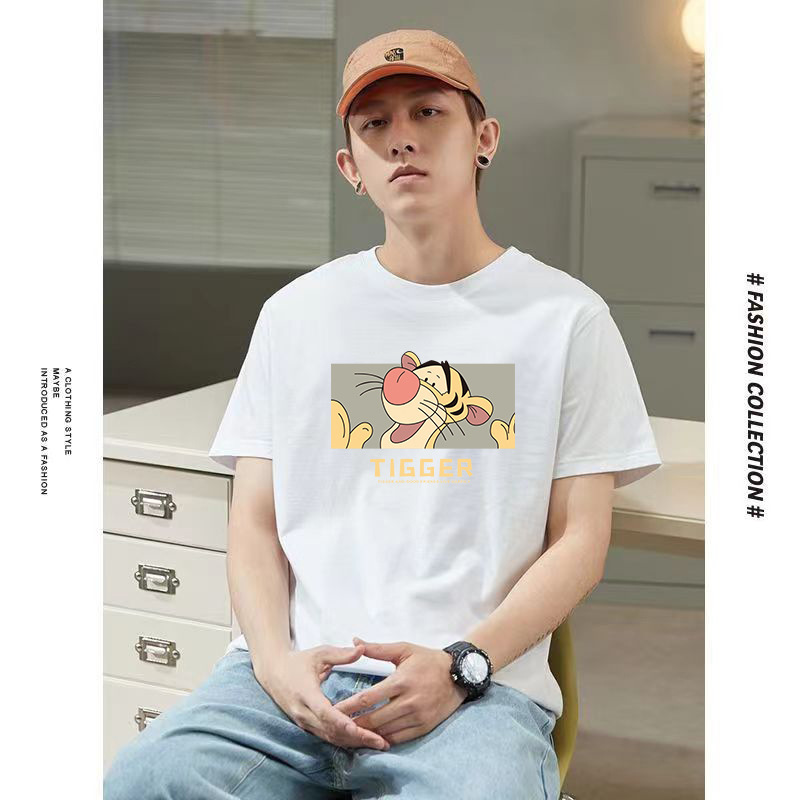 • 홍콩 스타일 얼음 실크 반팔 흰색 만화 호랑이