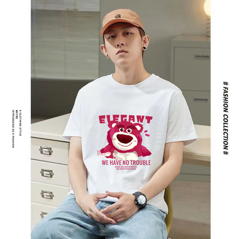 • 홍콩 스타일 아이스 실크 반팔 흰색 딸기 곰