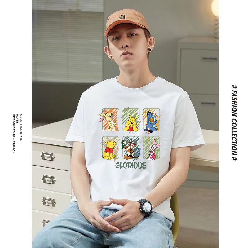 • 홍콩 스타일 아이스 실크 반팔 흰색 곰돌이 푸우