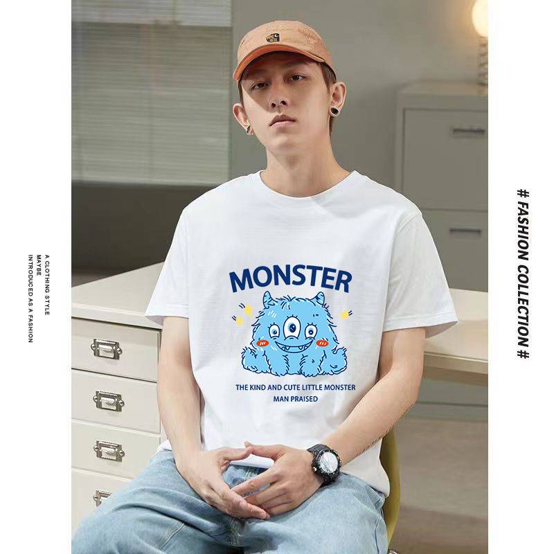 • 홍콩 스타일 아이스 실크 반팔 화이트 리틀 몬스터