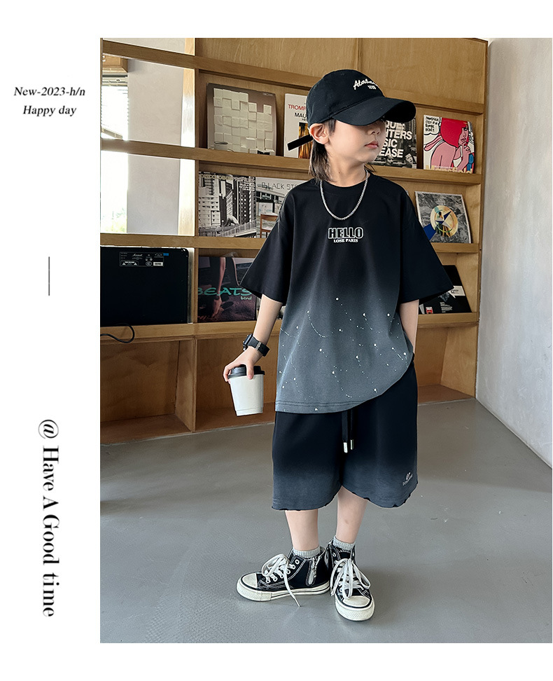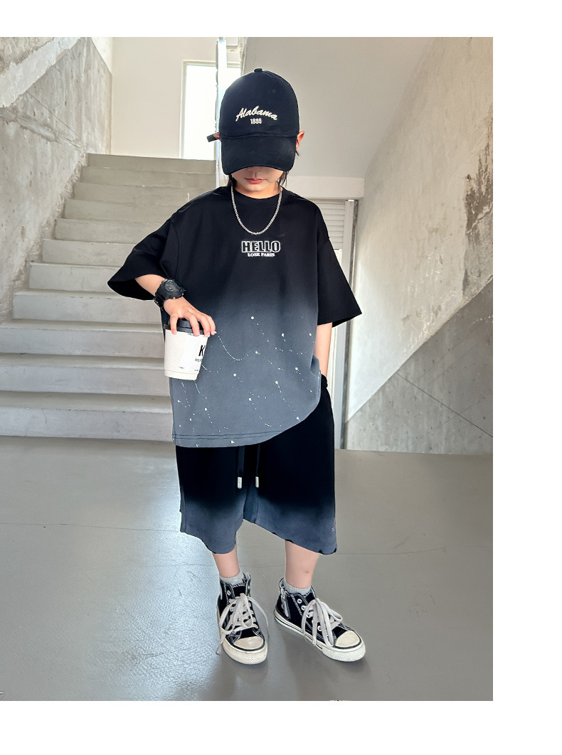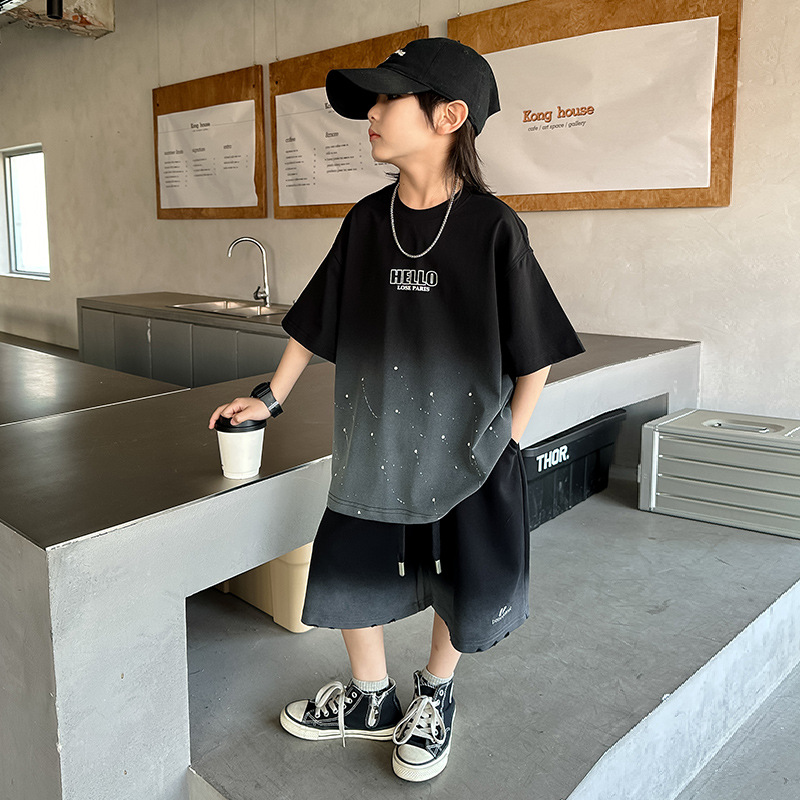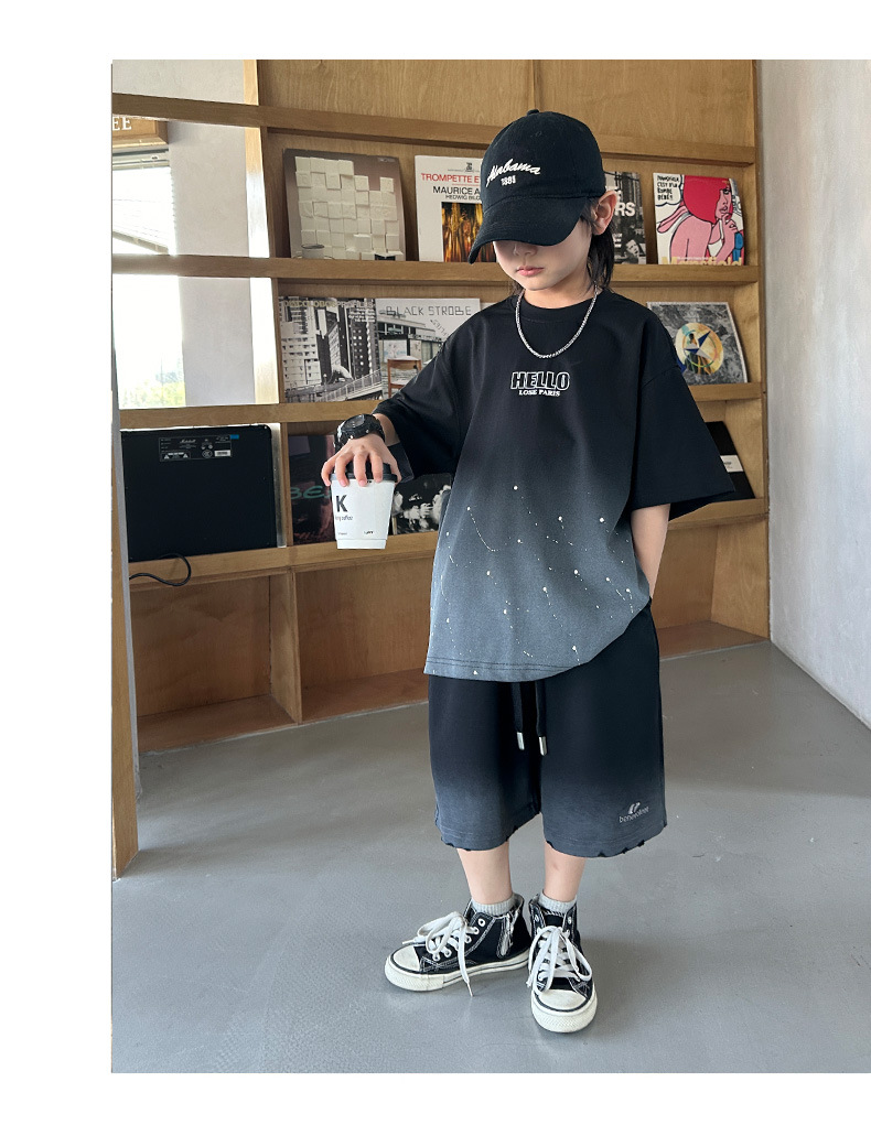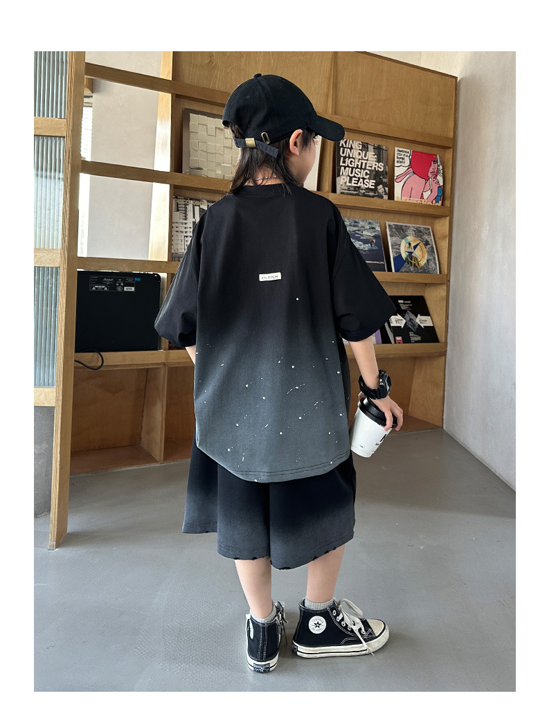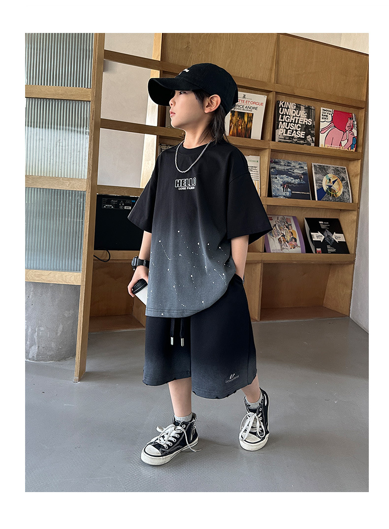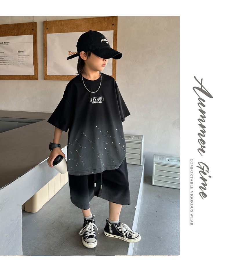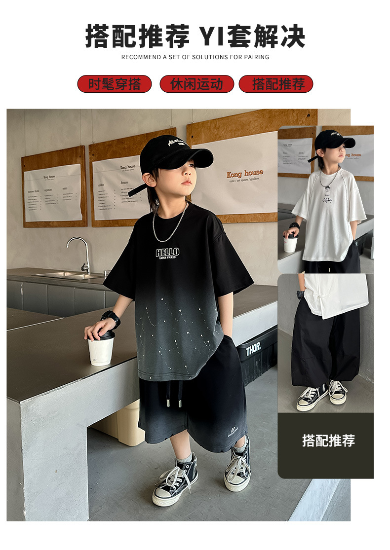 남학생 '2025 년 여름 스타 캐주얼 소년 반팔 반바지 티셔츠 루즈 스타 크루 넥 반소매 탑 트렌디스토어 가기