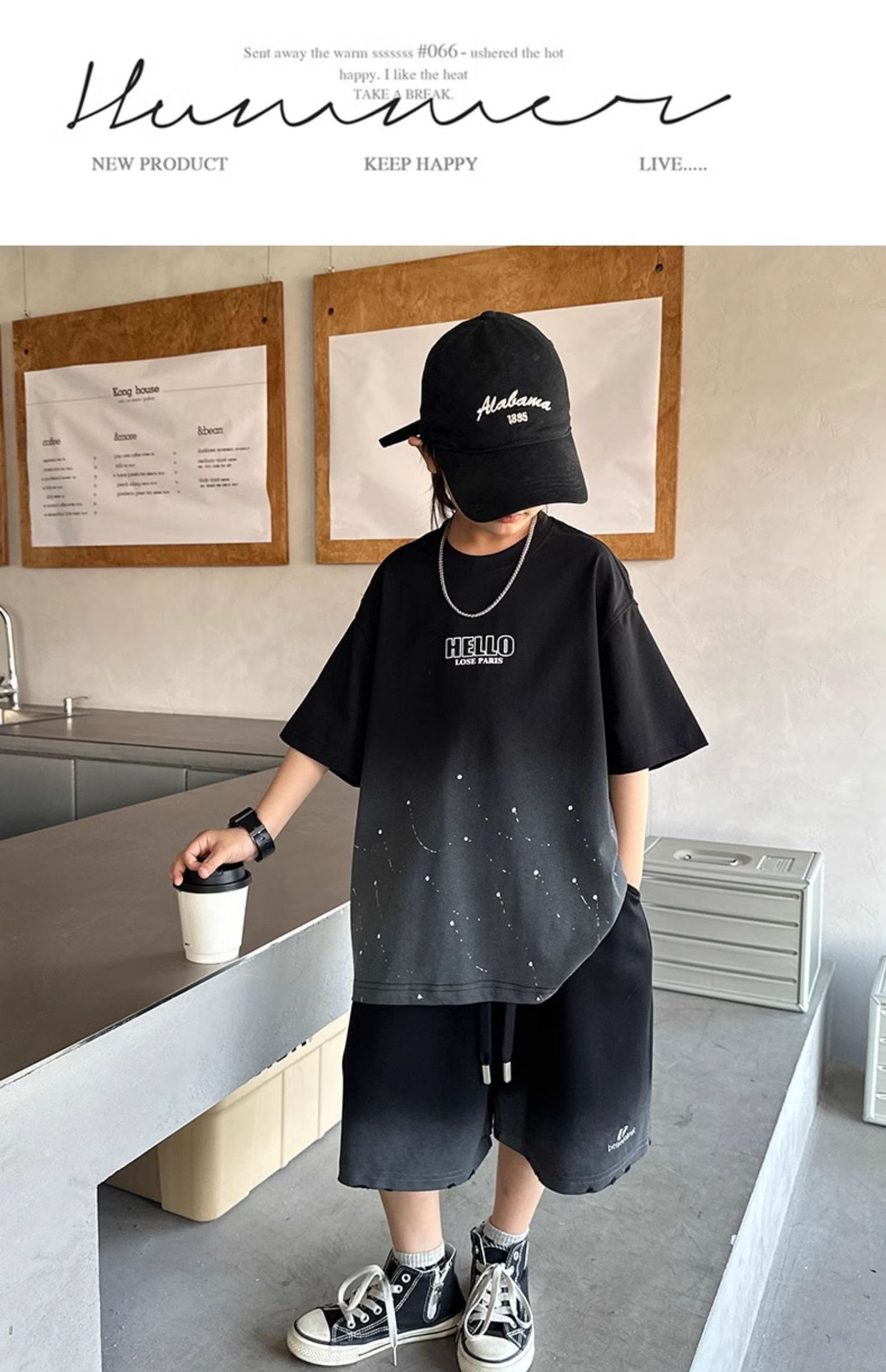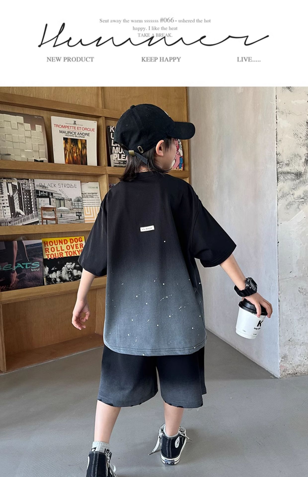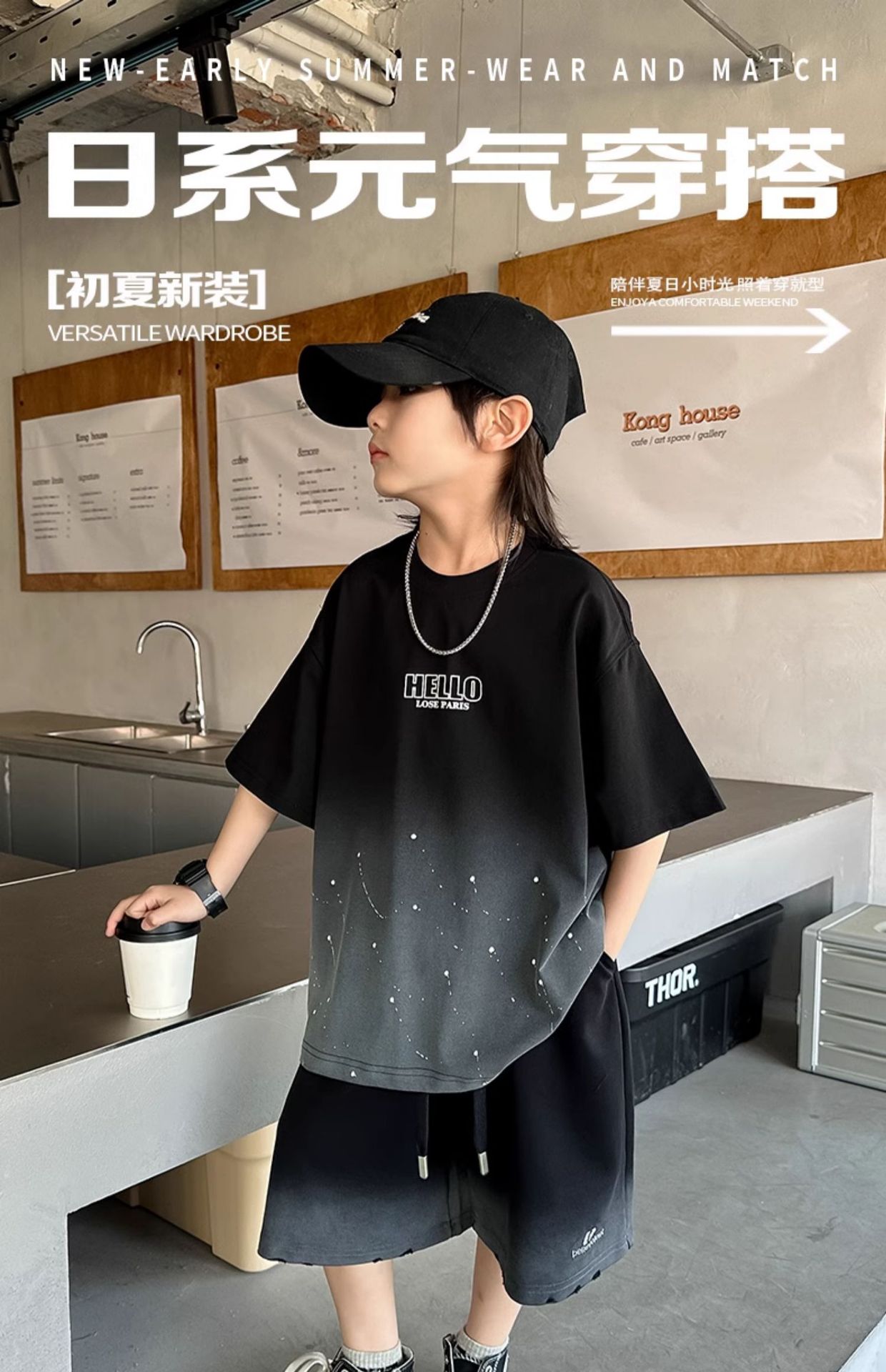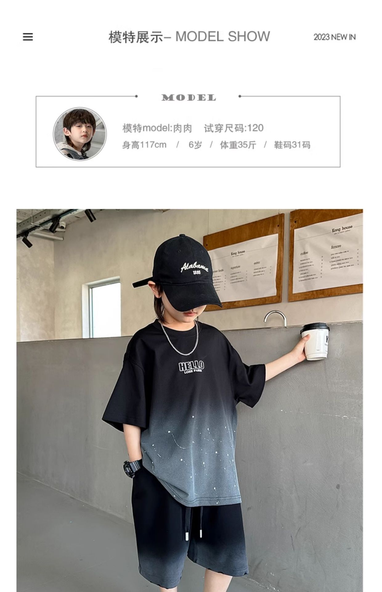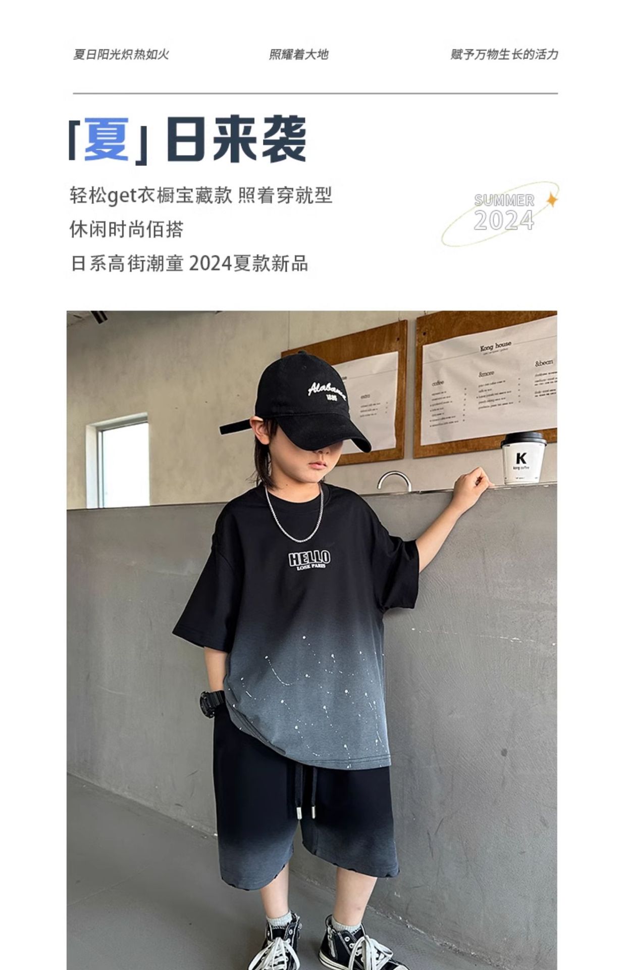 남학생 '2025 년 여름 스타 캐주얼 소년 반팔 반바지 티셔츠 루즈 스타 크루 넥 반소매 탑 트렌디스토어 가기