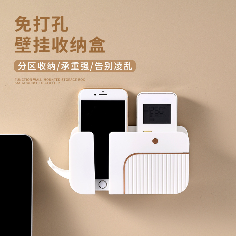 펀치없는 벽 랙 원격 제어 저장 상자 벽걸이 거실 휴대 전화 TV 침대 옆 보관