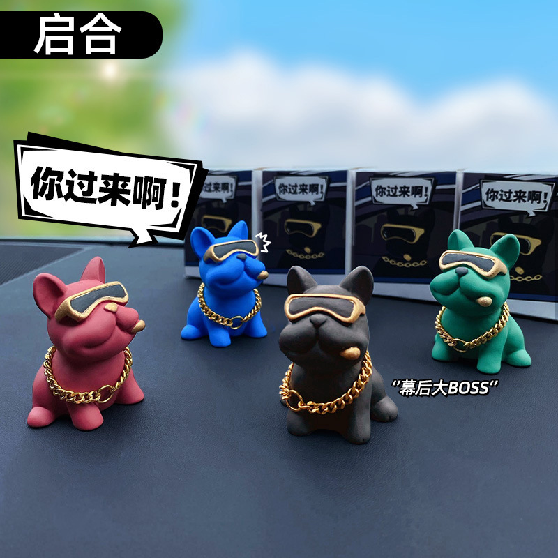 새로운 만화 불독 장식품 원래 멋진 자동차 장식품 장식 귀여운 불독 장식품 인형 장식품스토어 가기