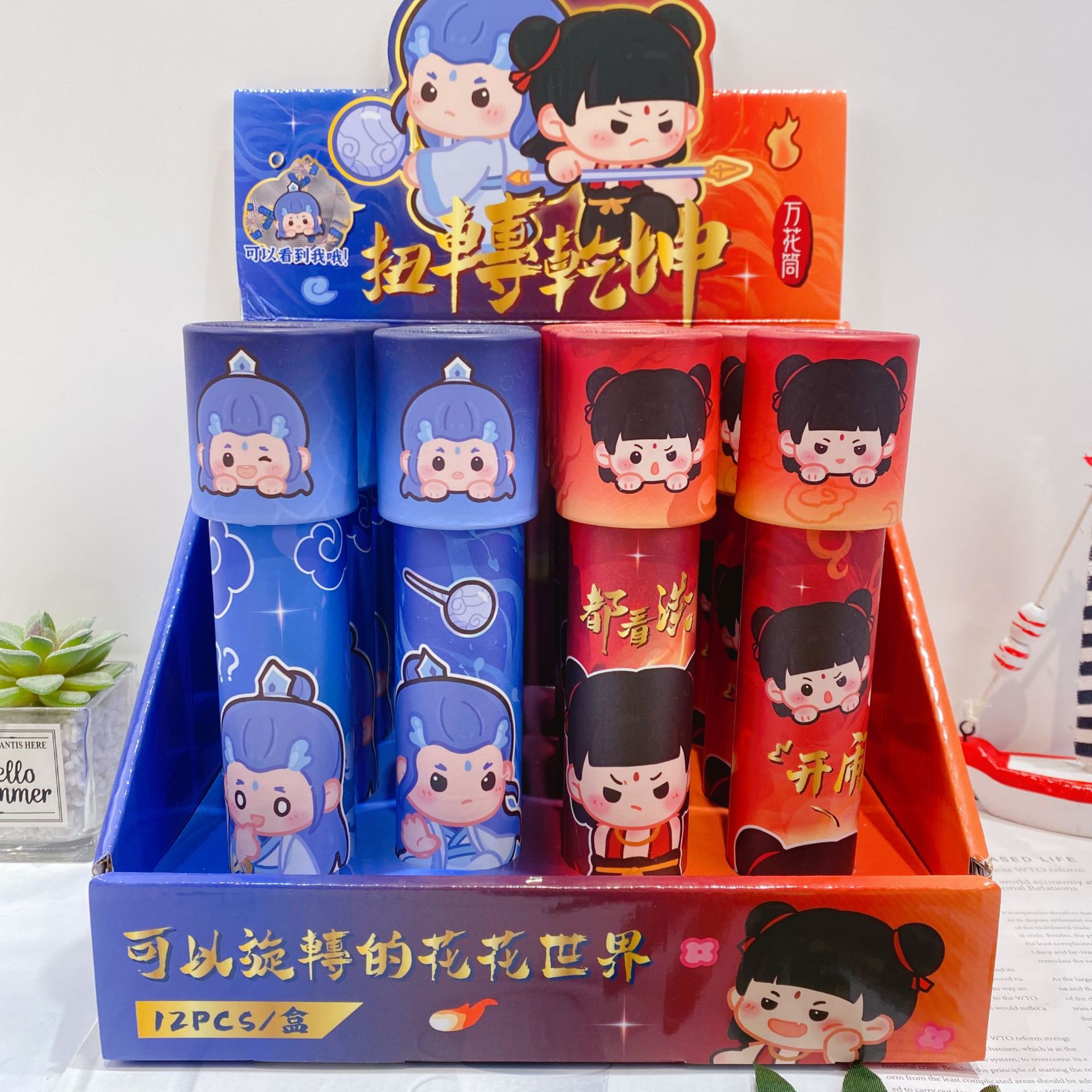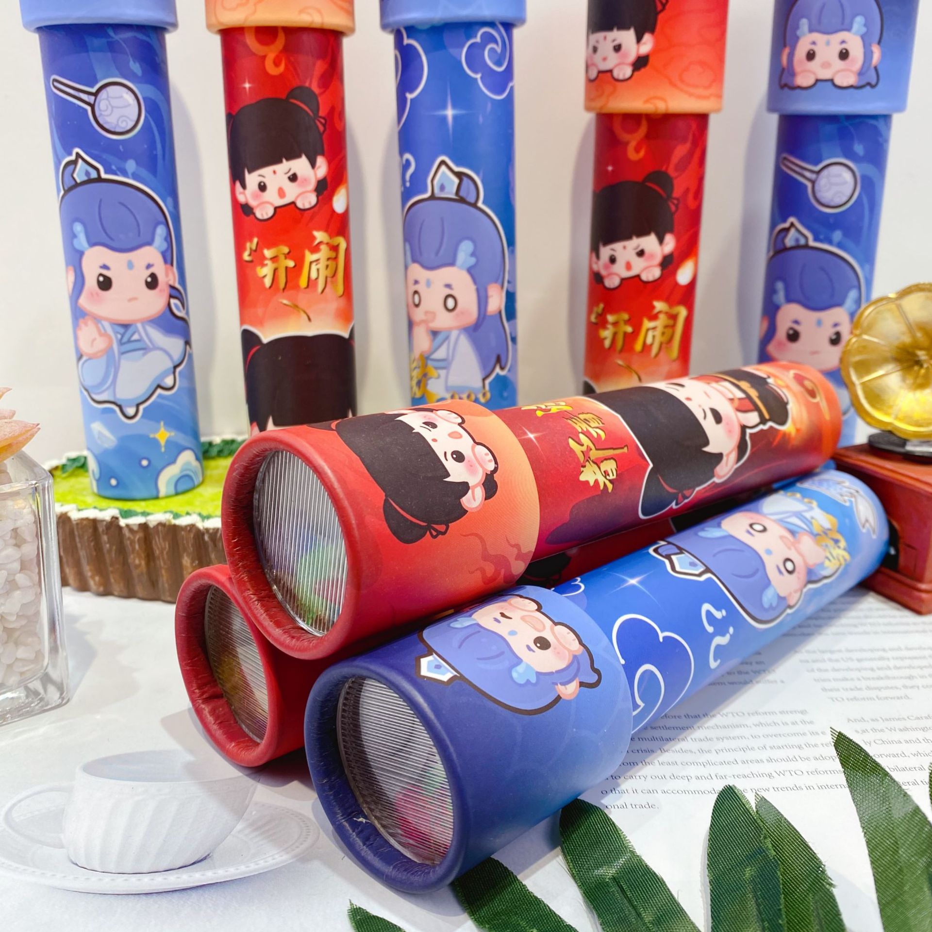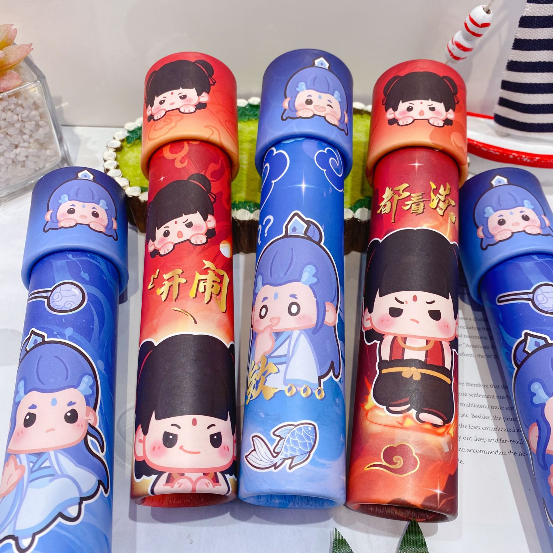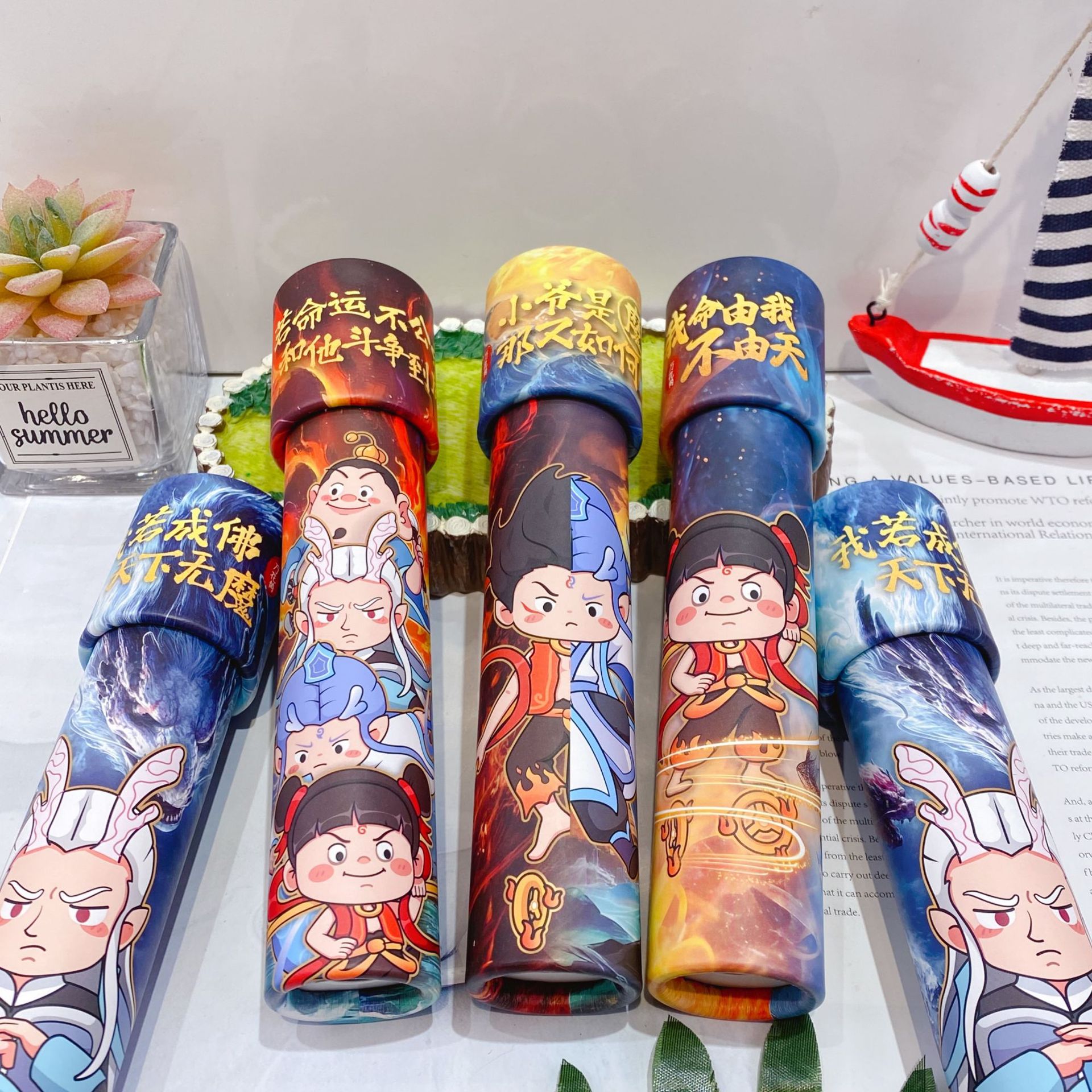 새로운 Nezha Naohai 회전 만화경 귀여운 만화 어린이 감압 장난감 큰 품종 내시경