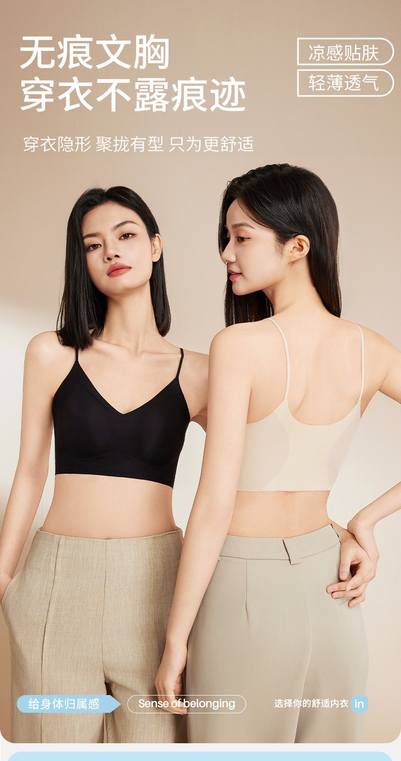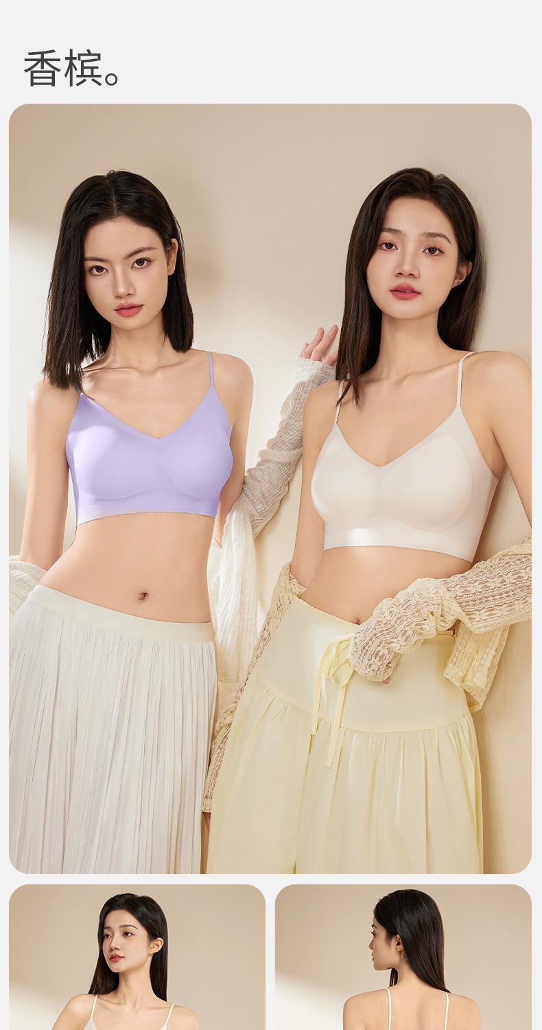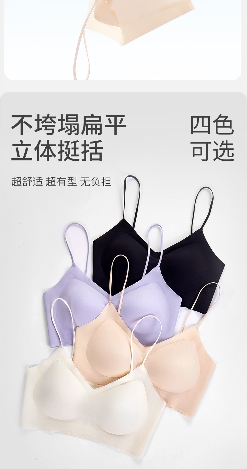 여름 초박형 얇은 어깨 끈 비 마킹 속옷 여성의 작은 가슴 푸시 업 비 림리스 유방 등 통기성 브래지어