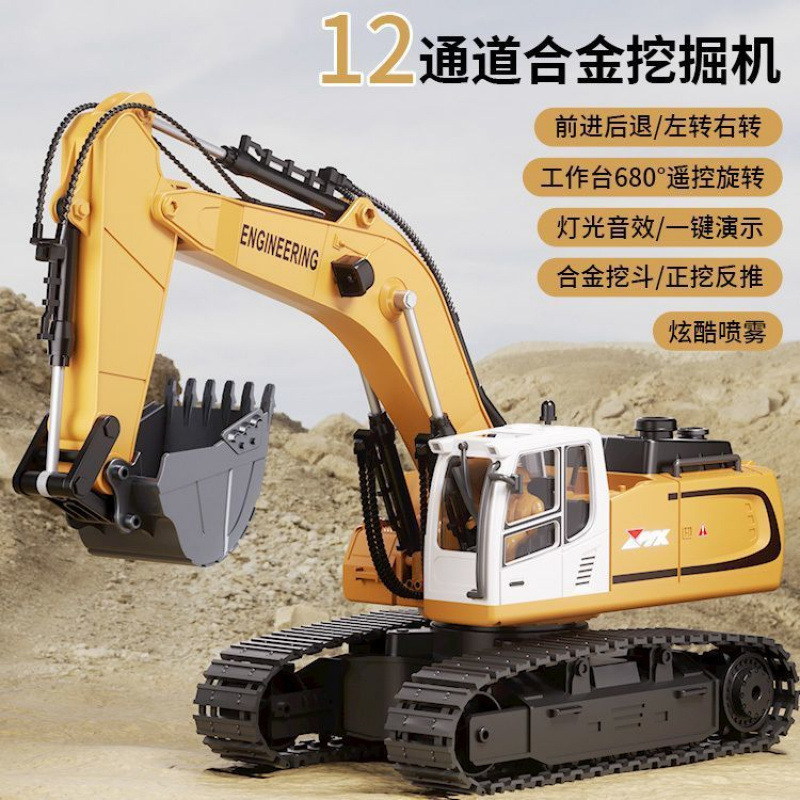 어린이 대형 원격 제어 굴삭기 합금 충전식 전기 장난감 엔지니어링 자동차 파는 자동차 야외 소년 장난감